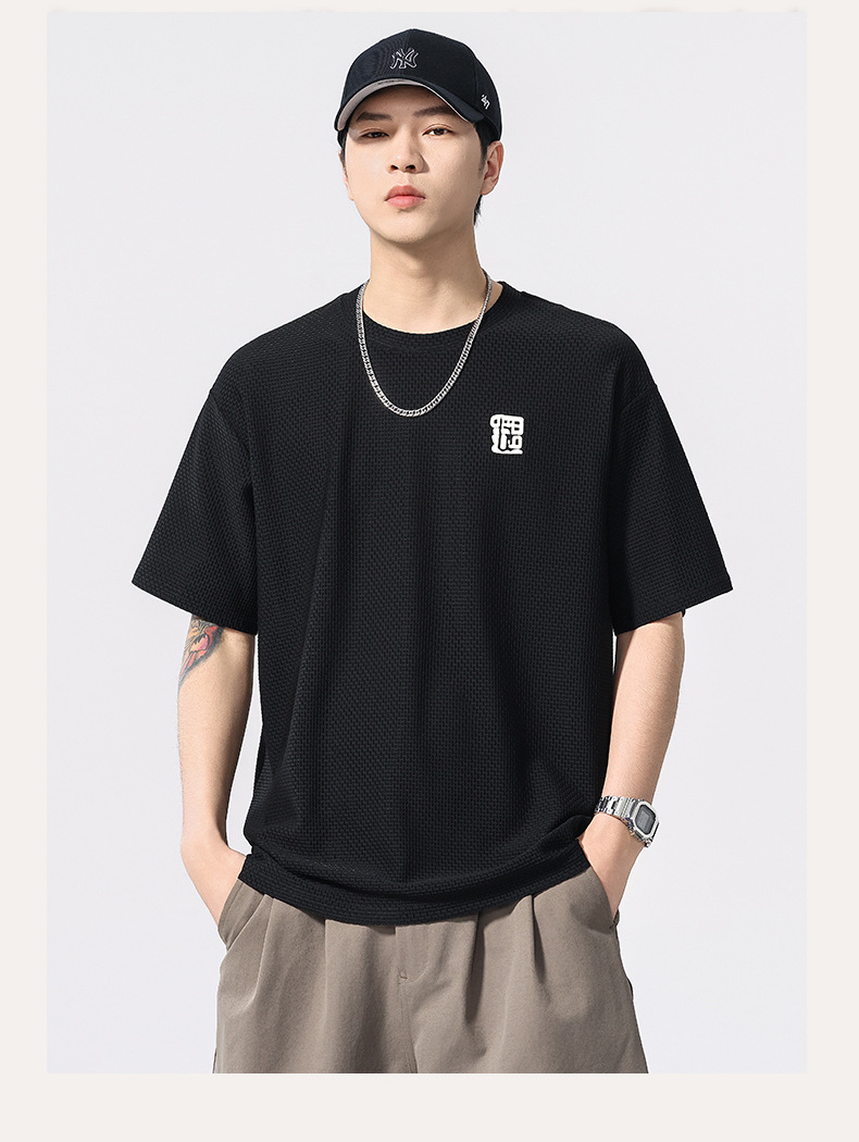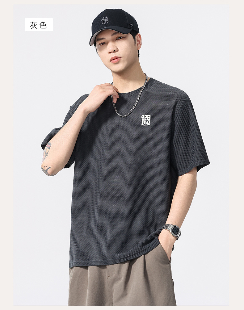弹力冰丝凉感短袖t恤男士夏季2025新款美式休闲刺绣上衣半袖男款