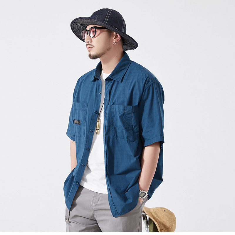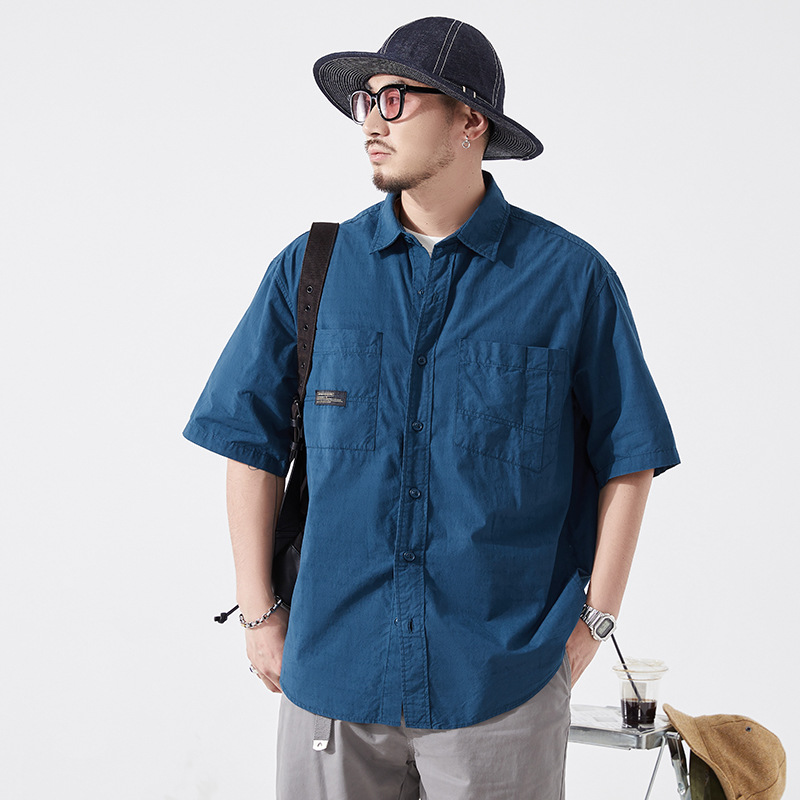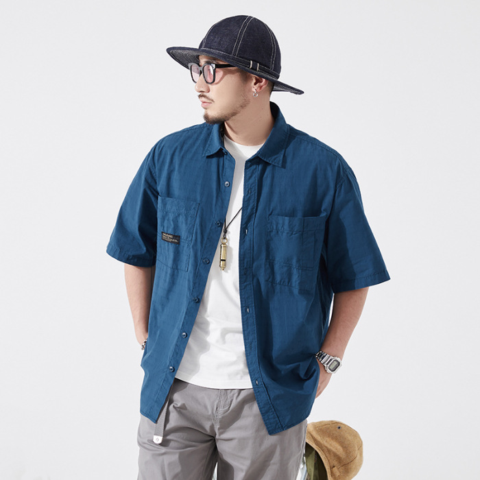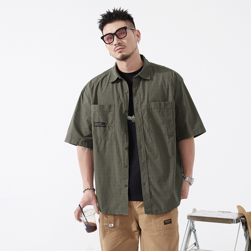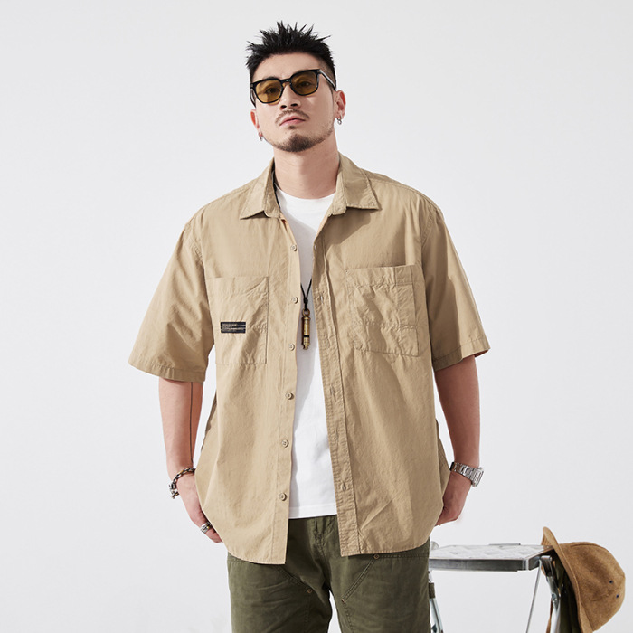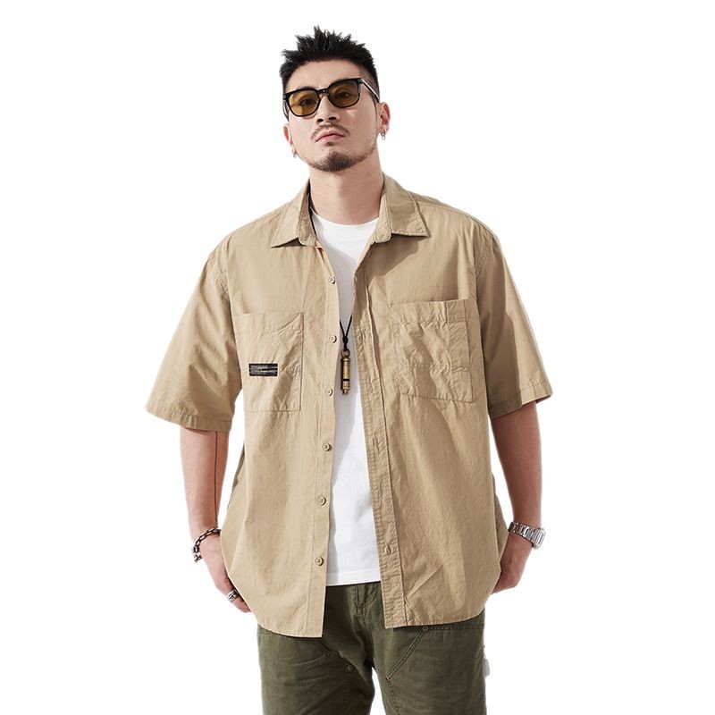 短袖衬衫男士2025年夏季潮牌纯棉半袖寸衫复古工装休闲衬衣男