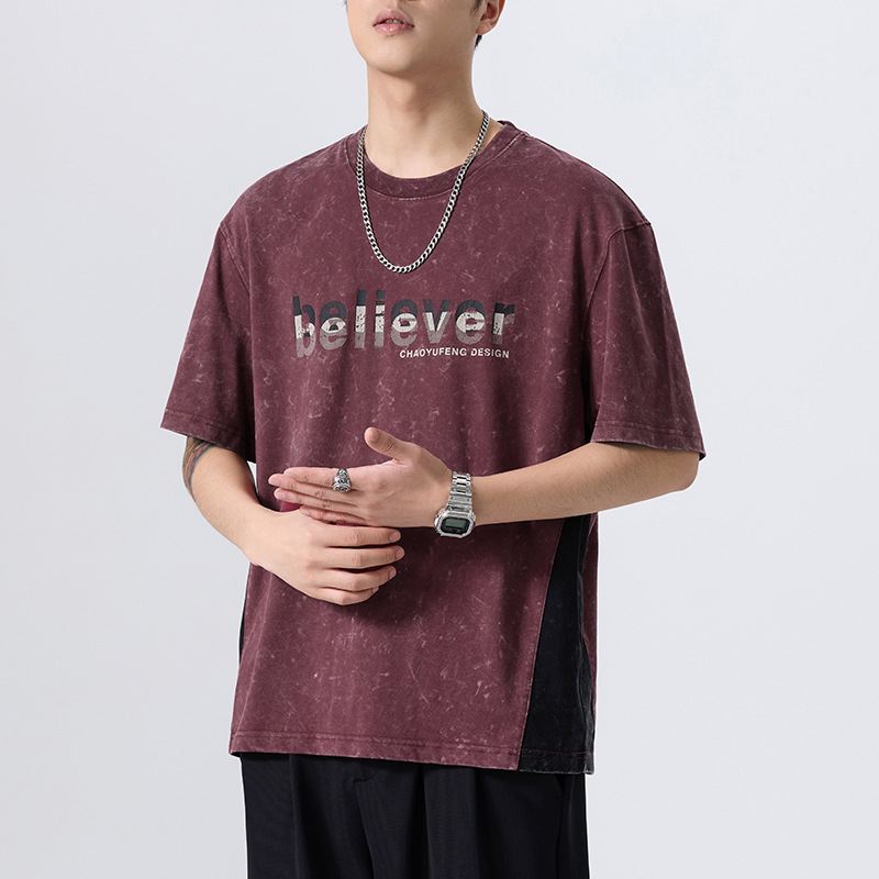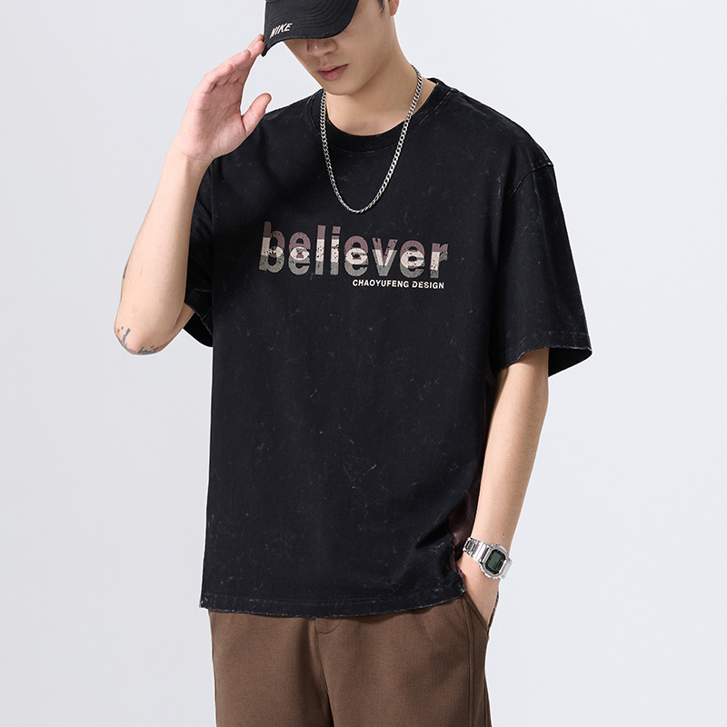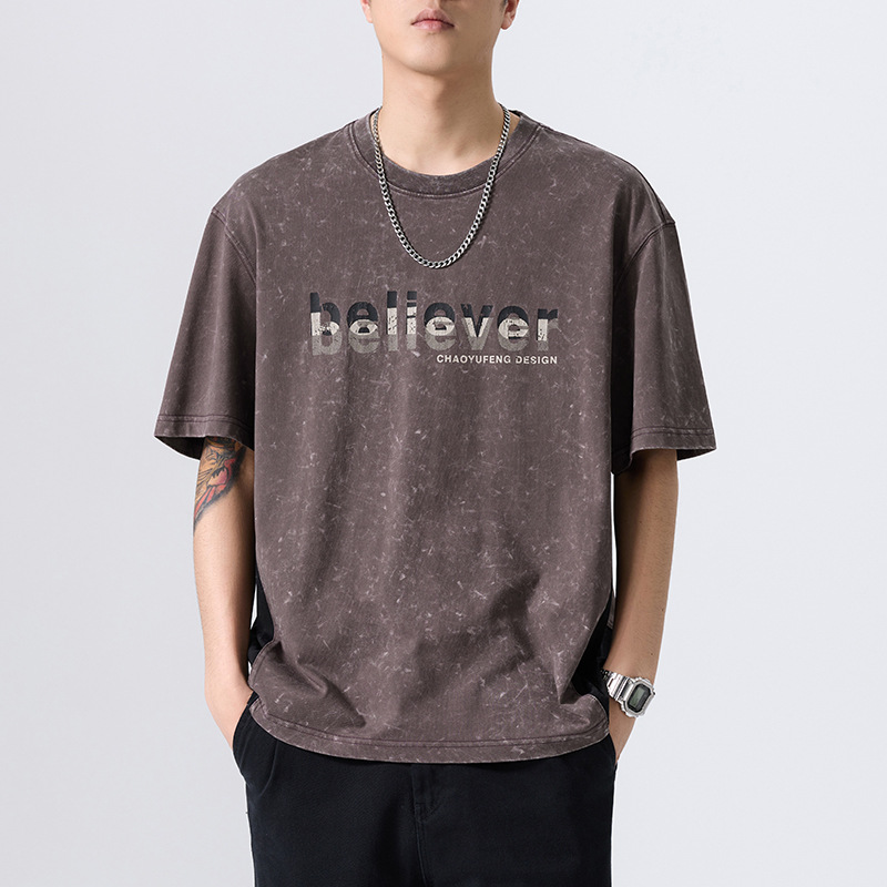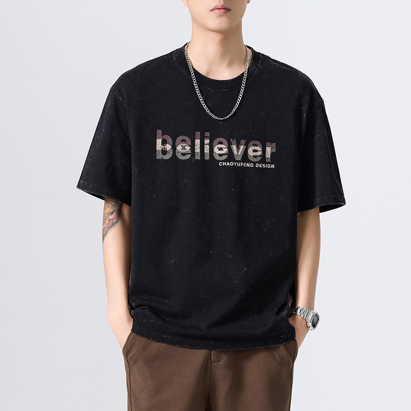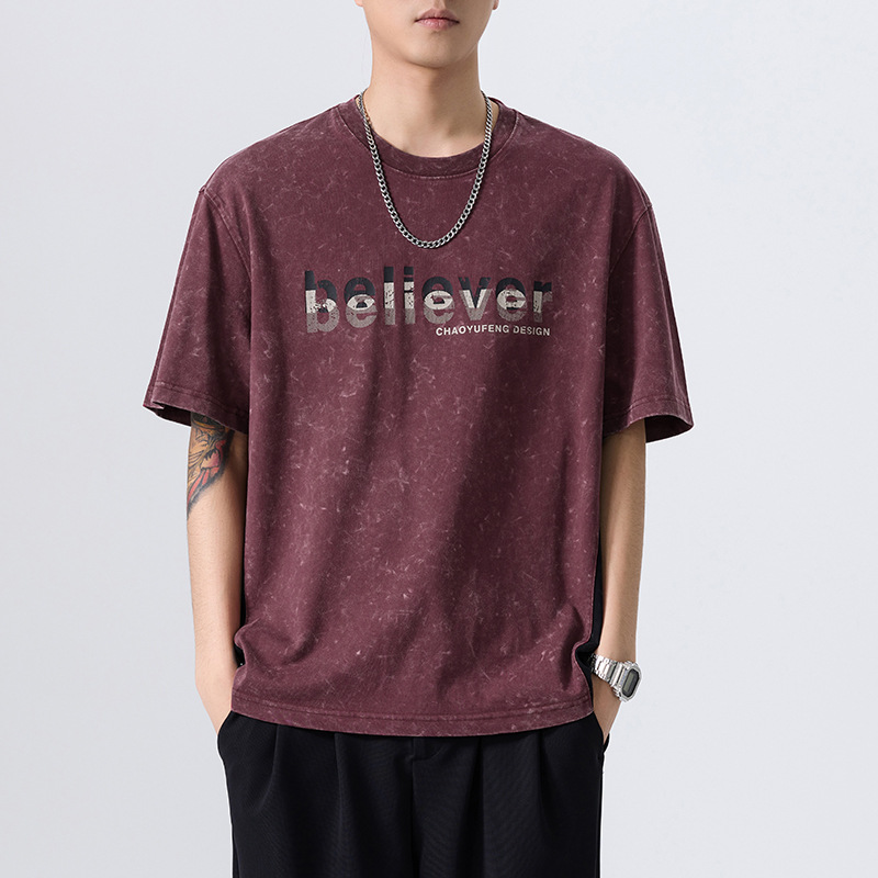 美式复古怀旧水洗纯棉短袖男夏季260g重磅酵素男装半袖印花T恤男