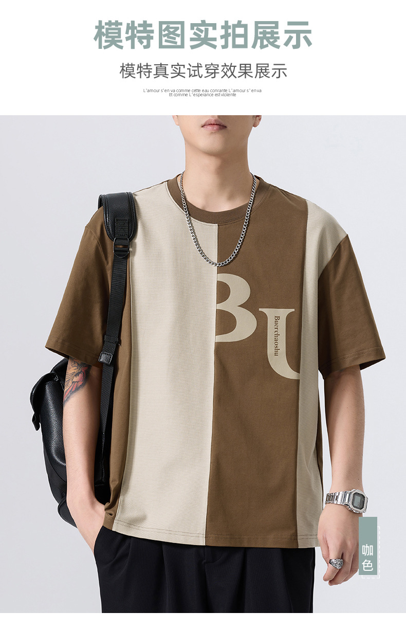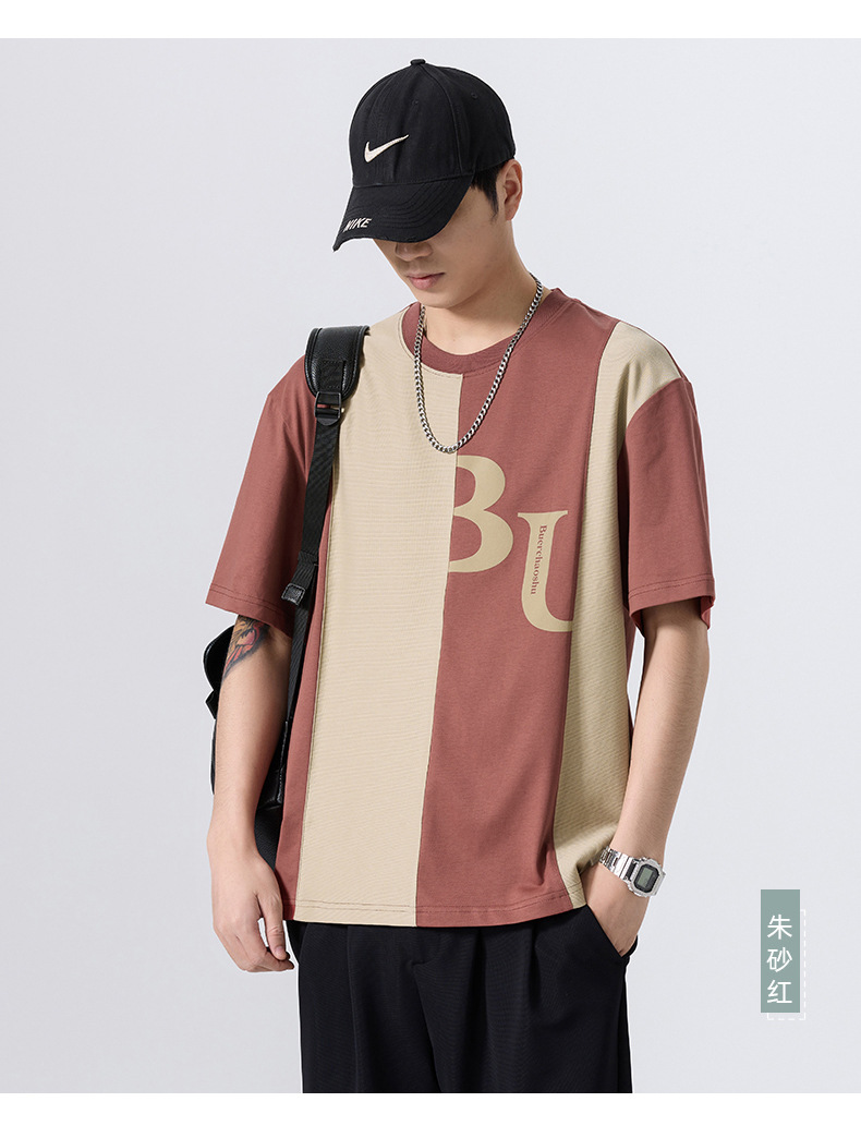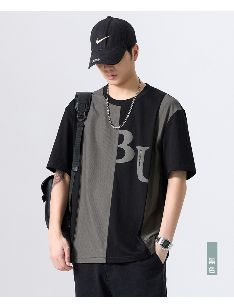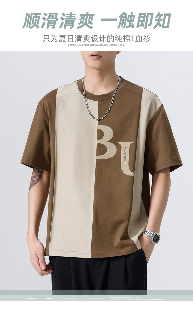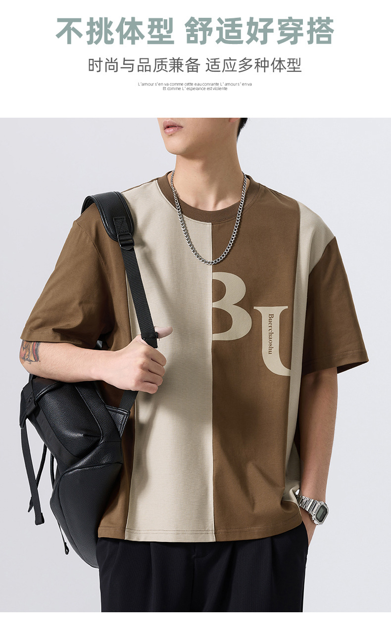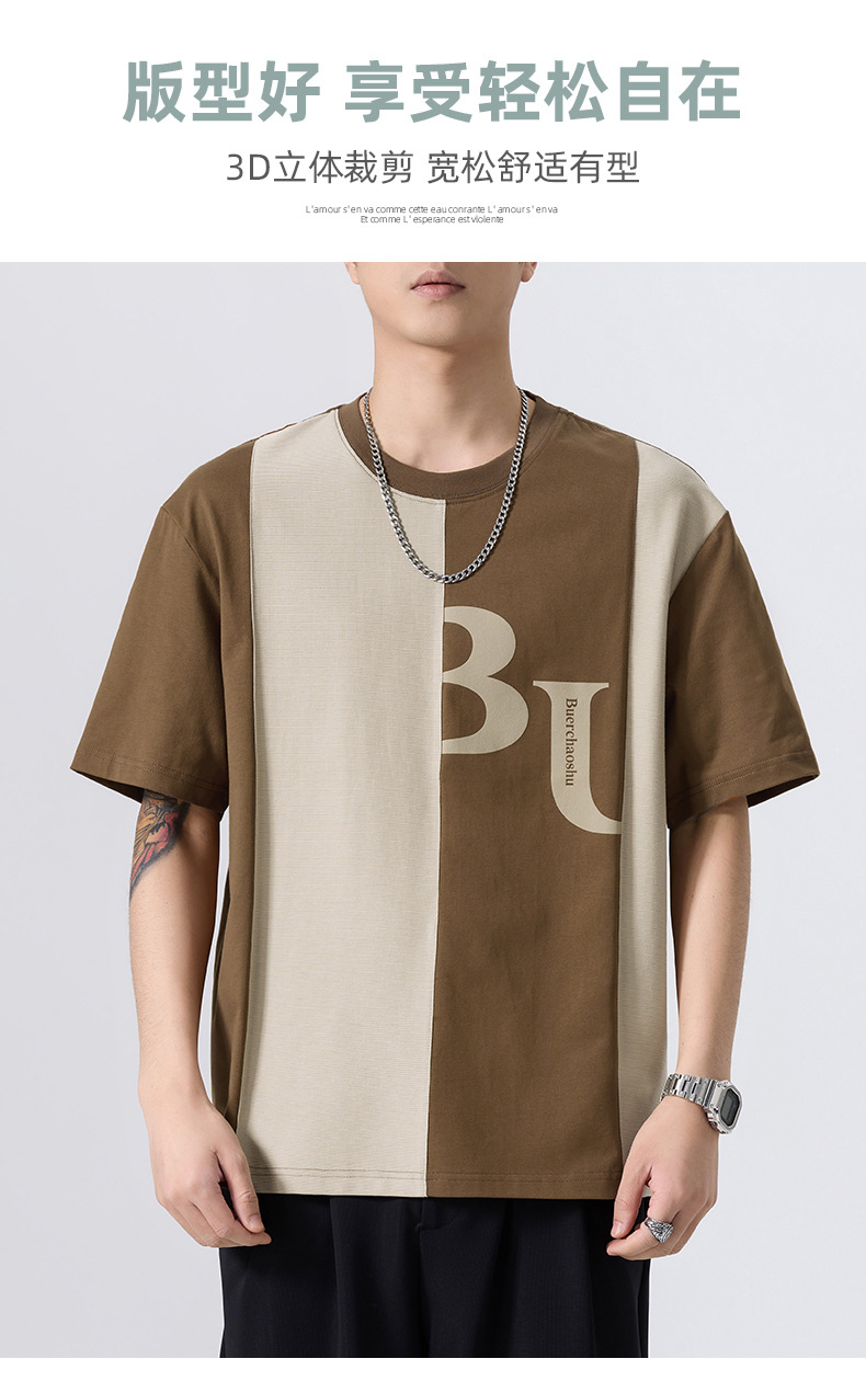 夏季薄款短袖T恤男2025新款ins上衣撞色休闲潮牌纯棉宽松大码半袖