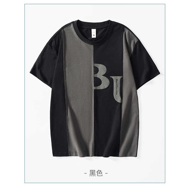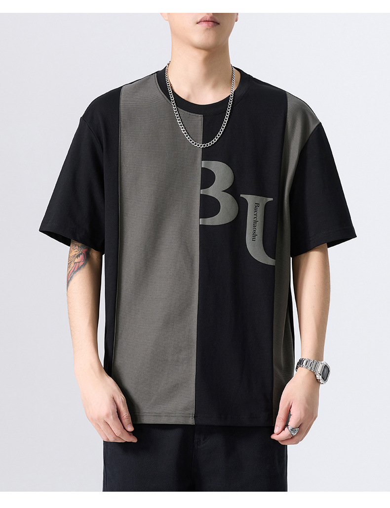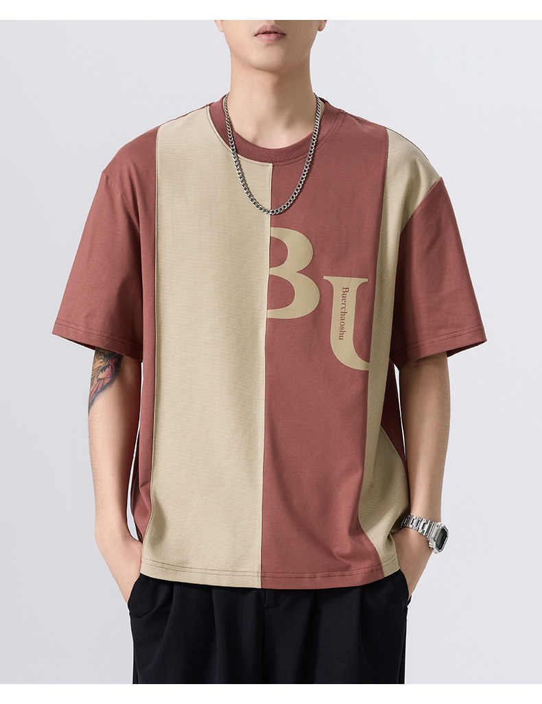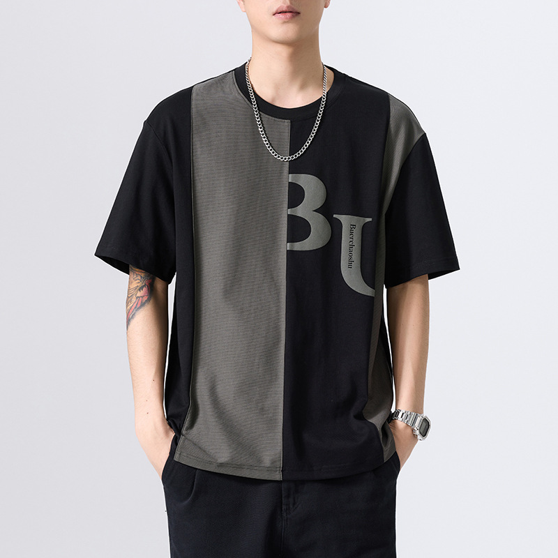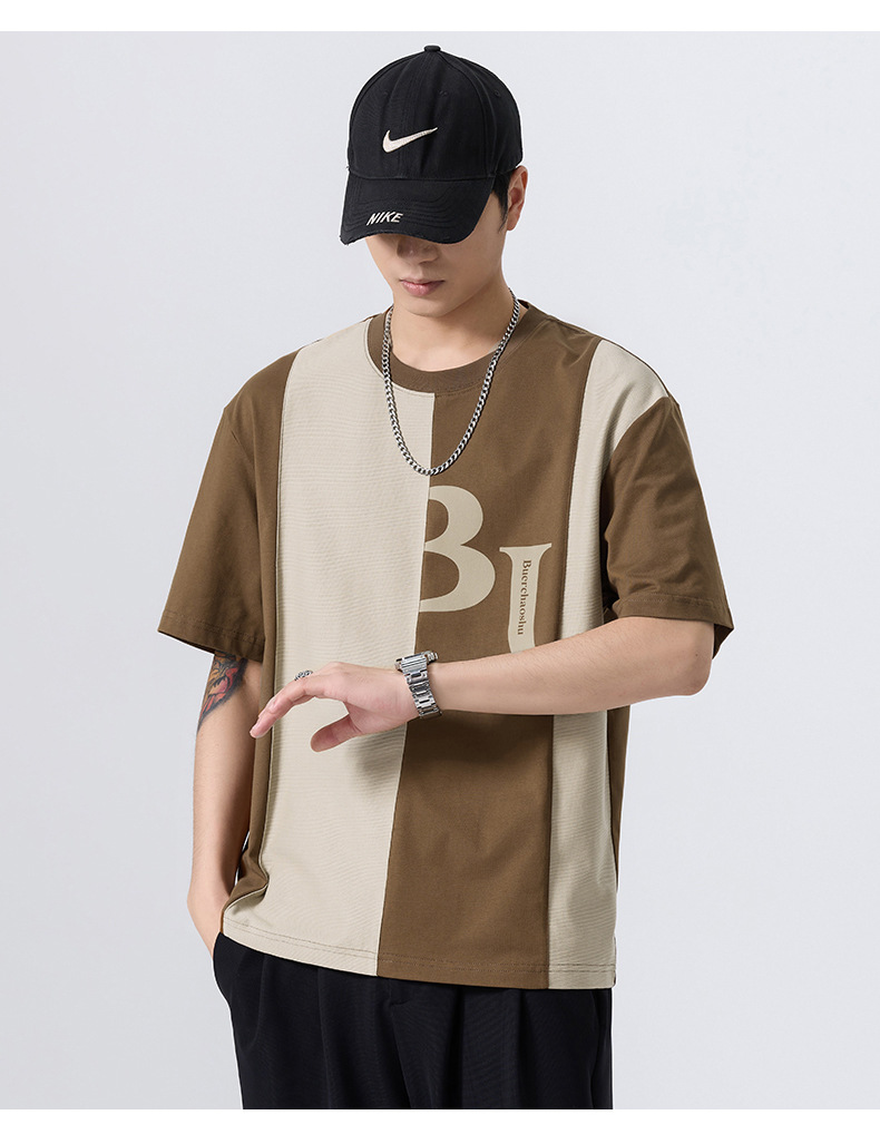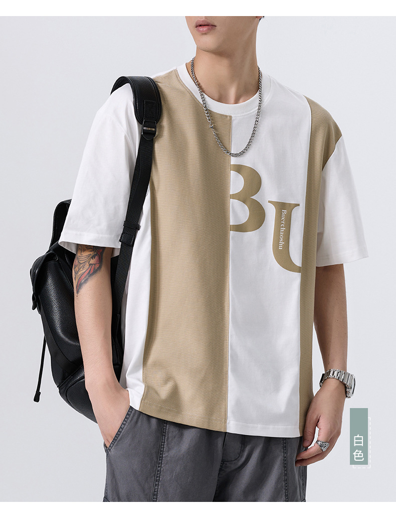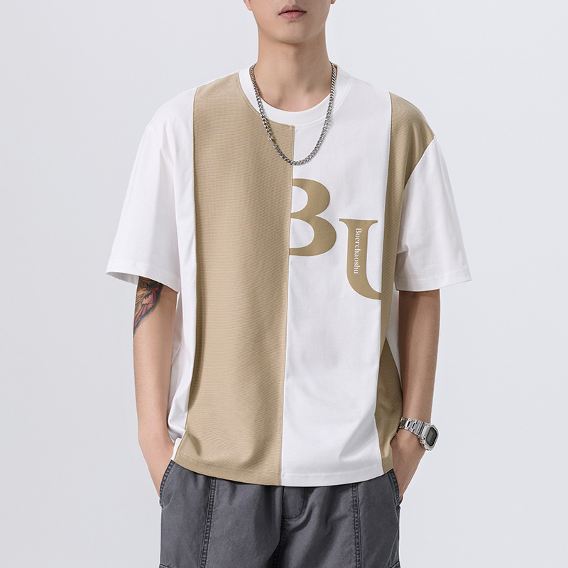 夏季薄款短袖T恤男2025新款ins上衣撞色休闲潮牌纯棉宽松大码半袖