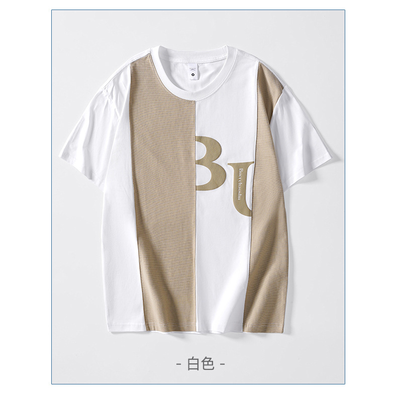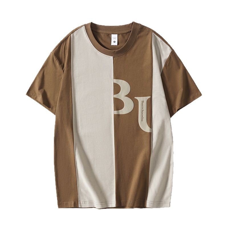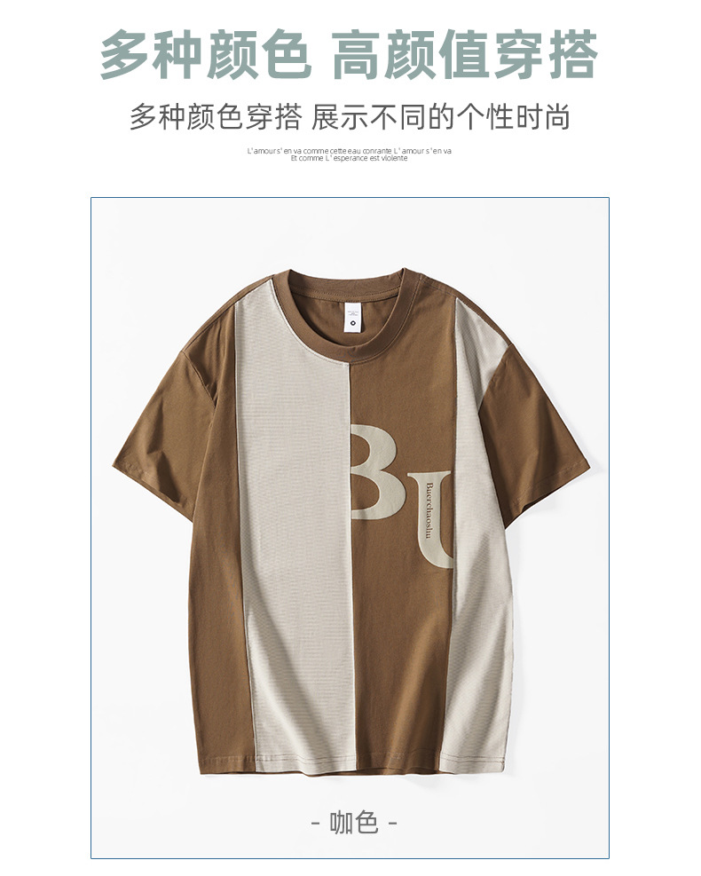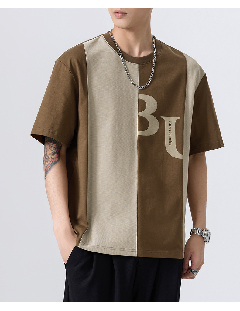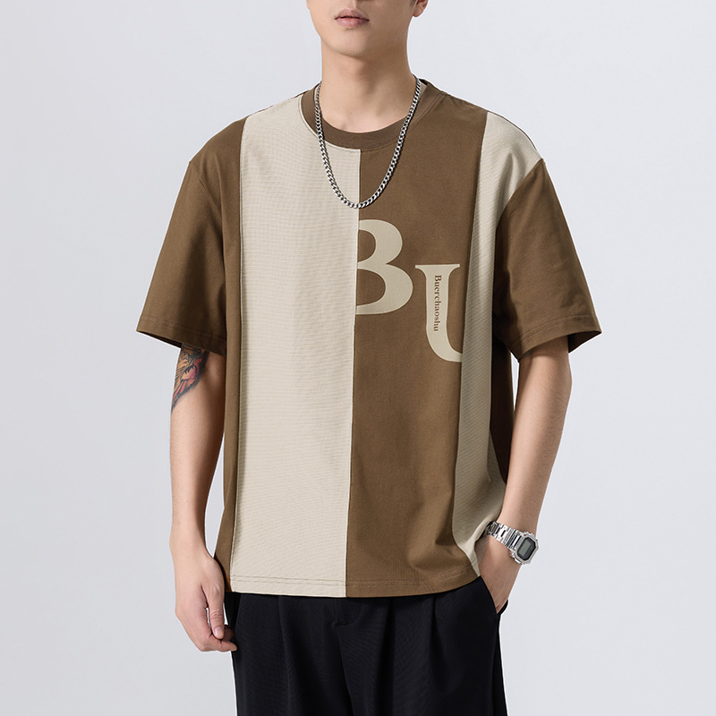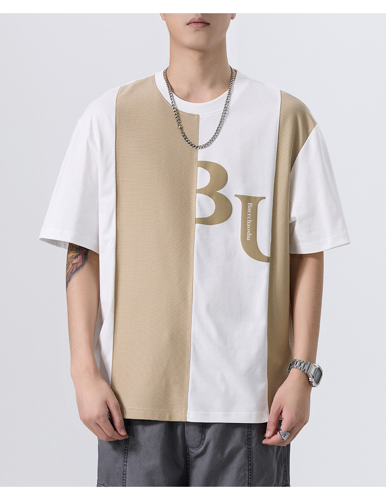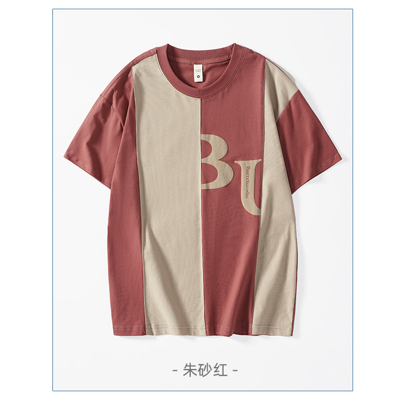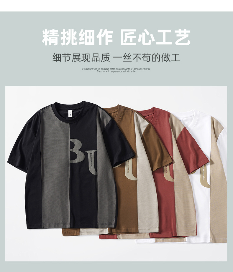 夏季薄款短袖T恤男2025新款ins上衣撞色休闲潮牌纯棉宽松大码半袖