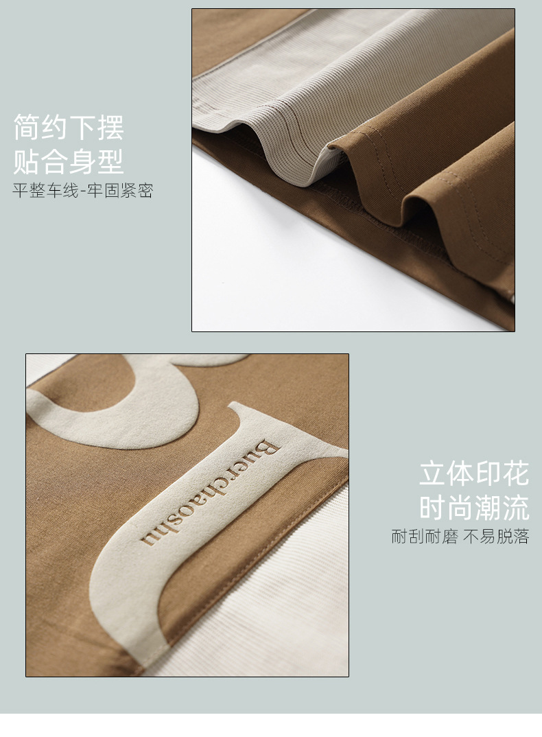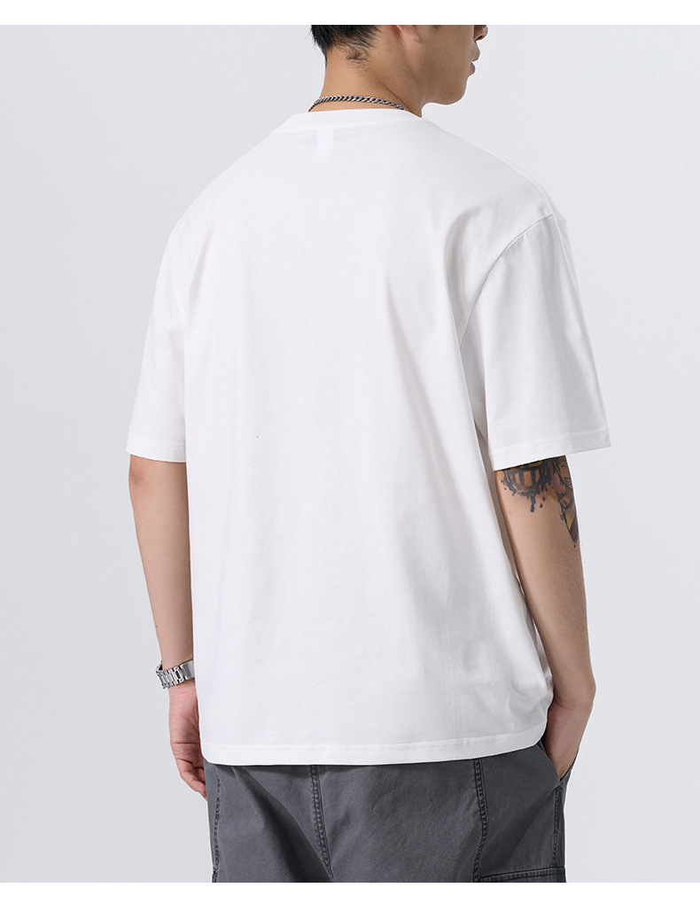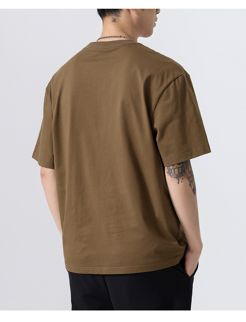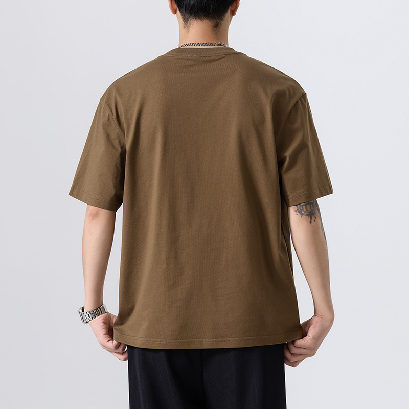 美式复古小领口t恤男夏季潮牌大口袋设计感小众短袖港风大码半袖