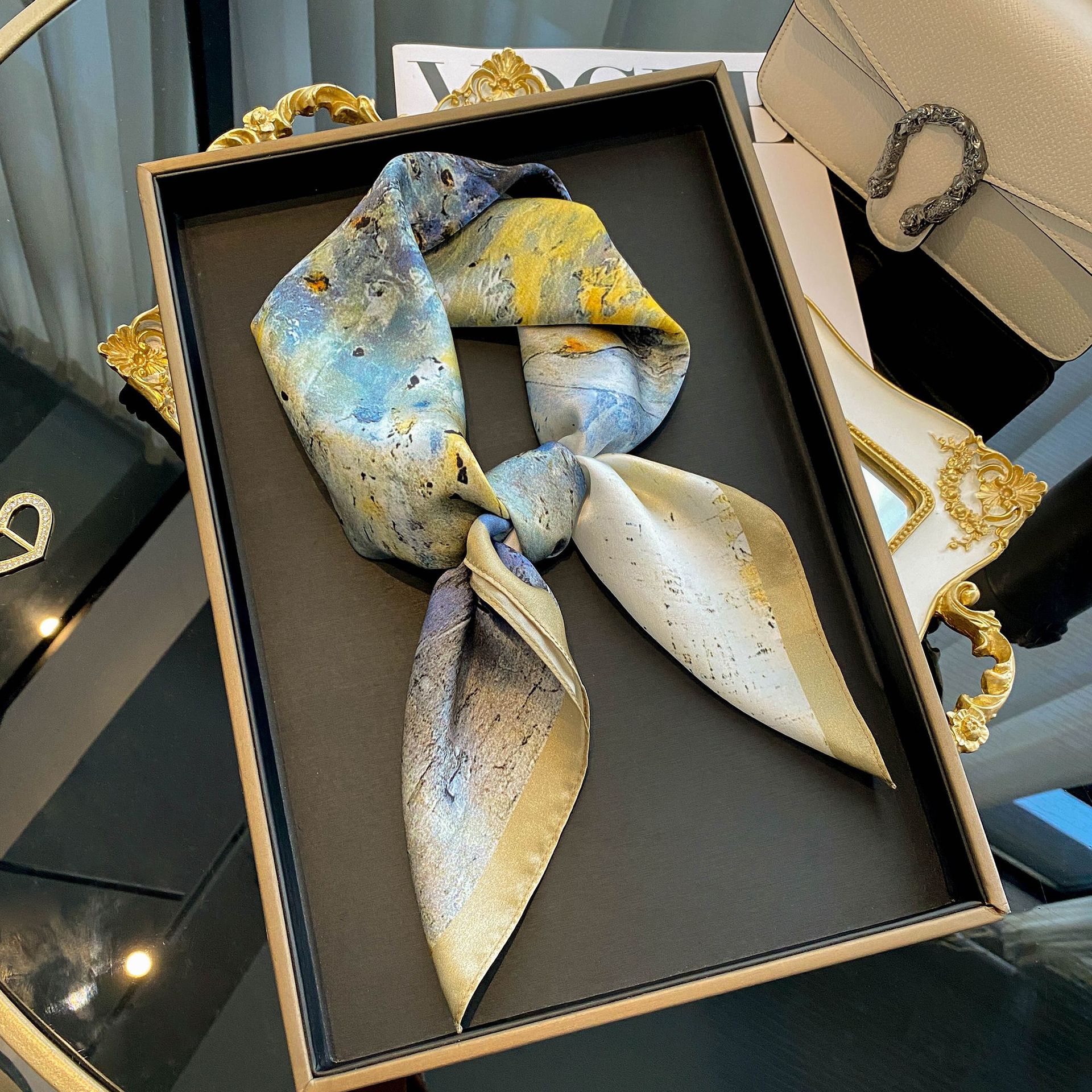 春季新款女孩背影真丝围巾女时尚百搭古70*70cm桑蚕丝丝巾