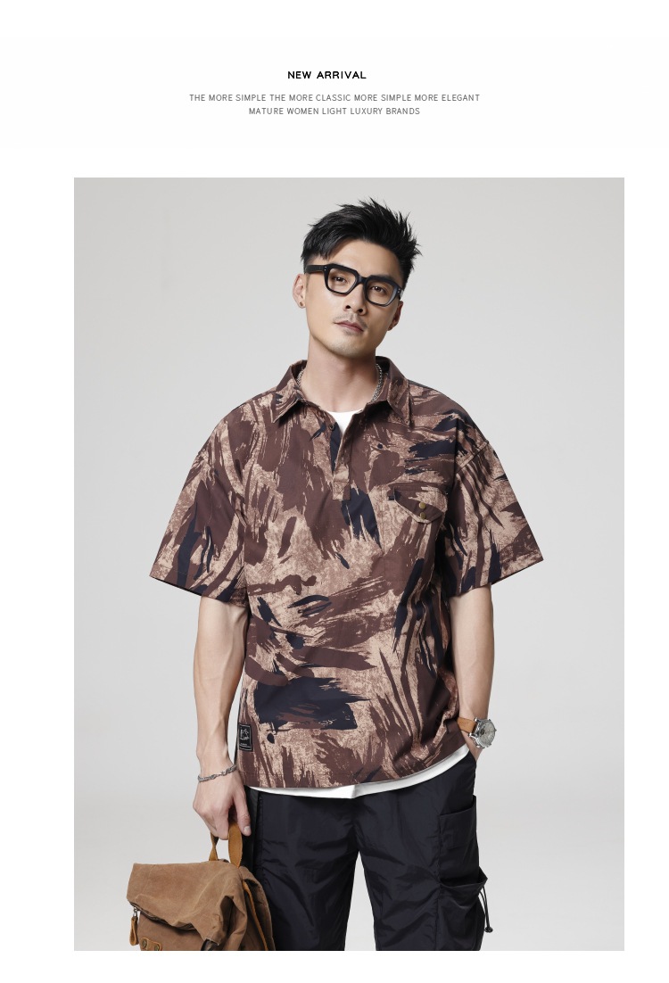 美式户外迷彩工装衬衫男短袖夏季薄款宽松痞帅衬衣男款半袖Polo衫