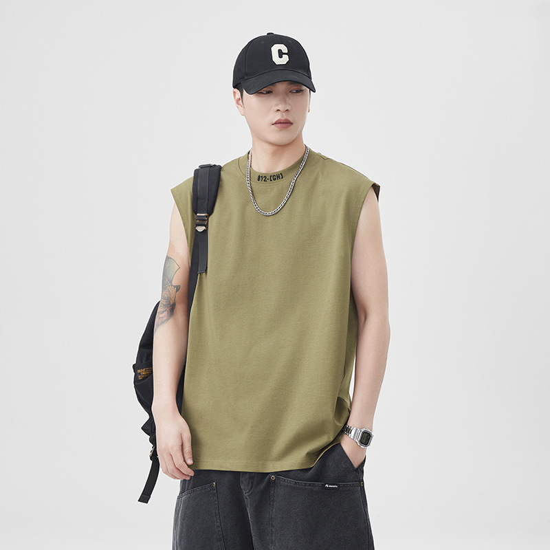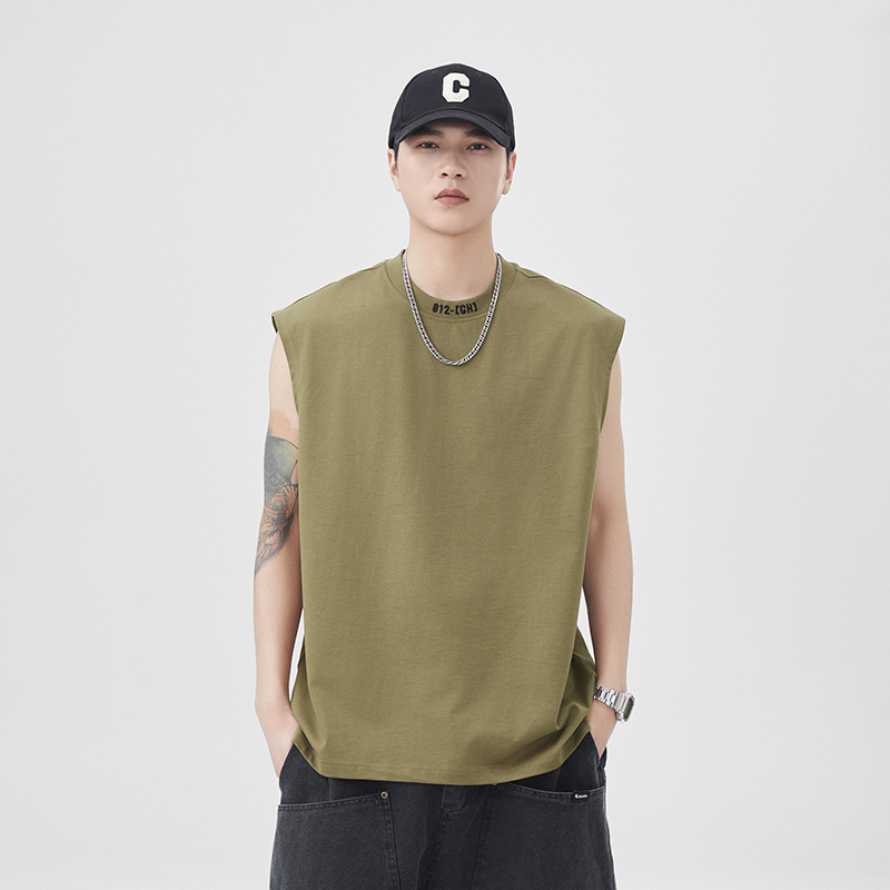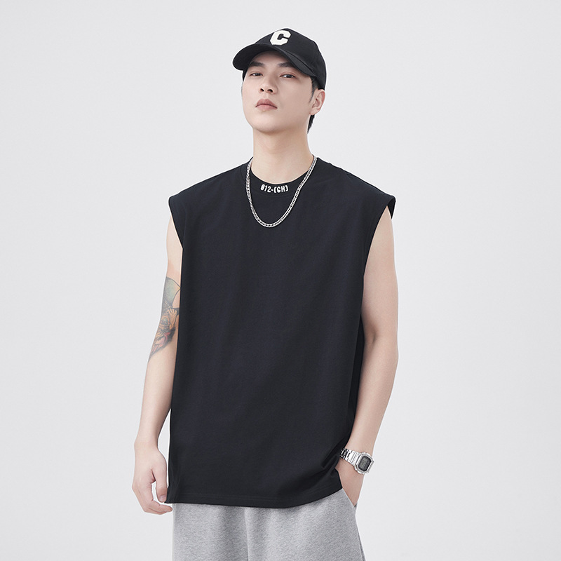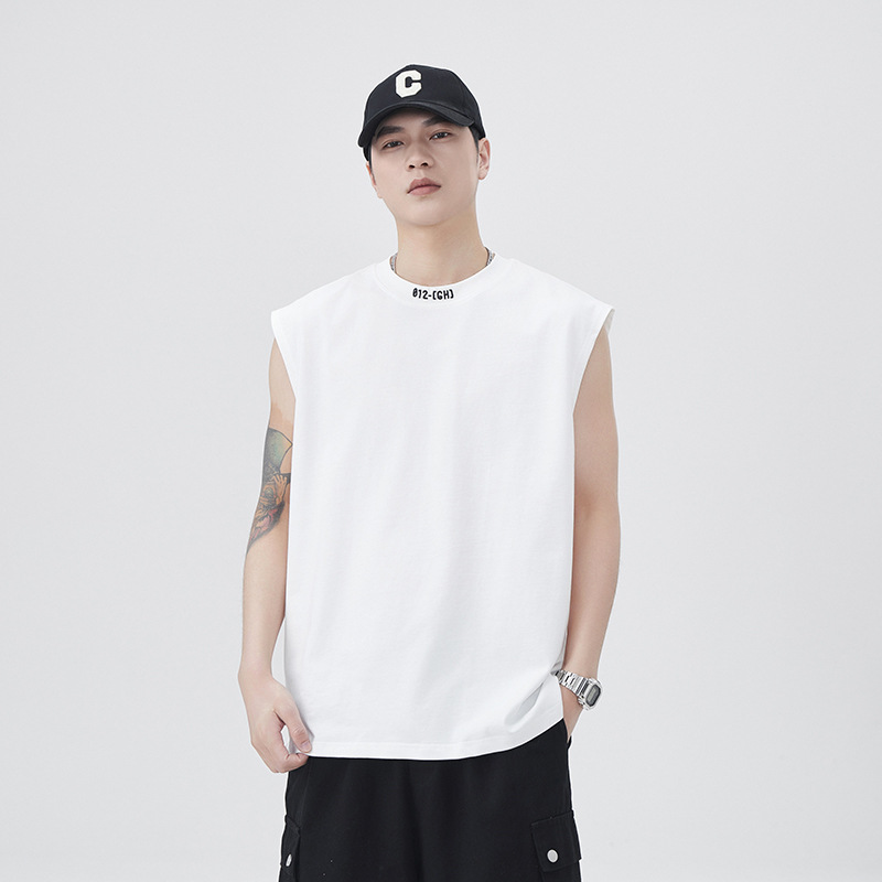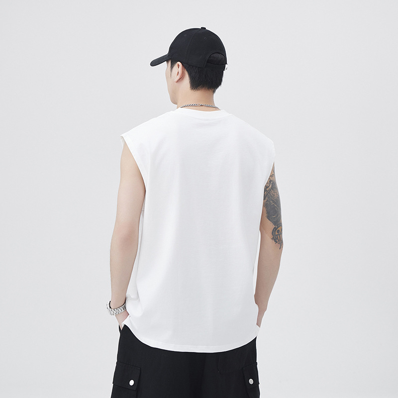 白色坎肩背心男2025新款夏季T恤美式高街圆领无袖运动上衣潮