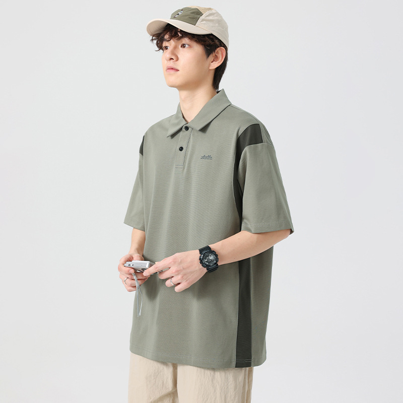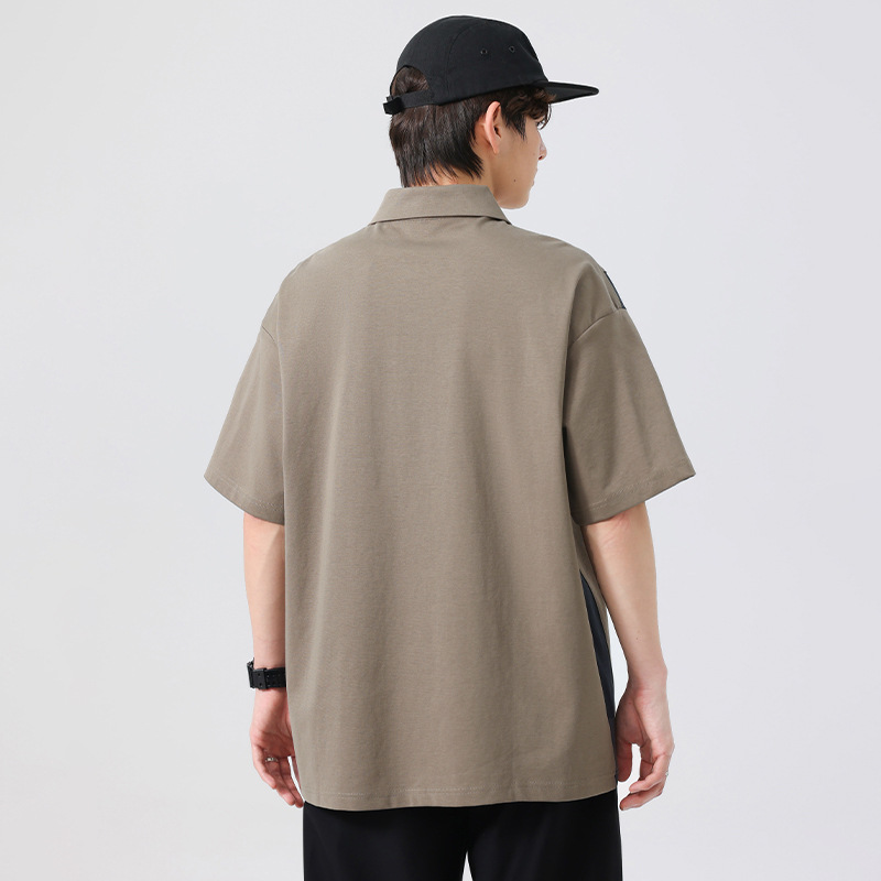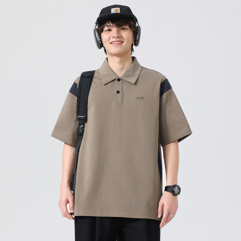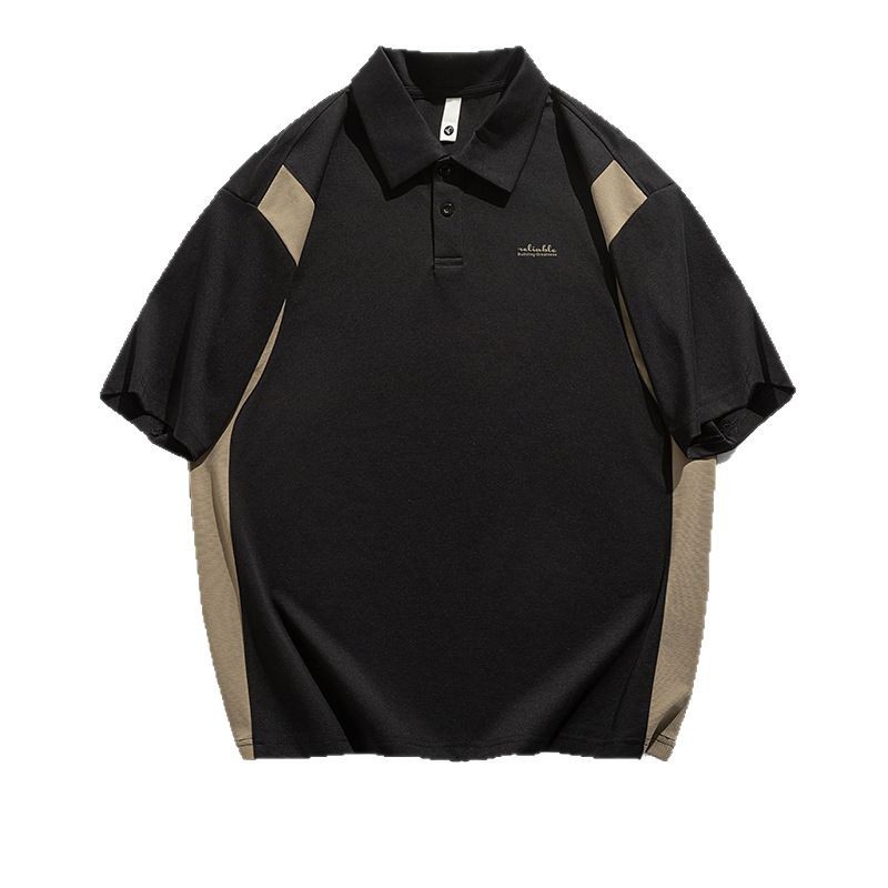 美式复古Polo衫短袖t恤男潮牌大码夏季2025新款高端撞色拼接体恤