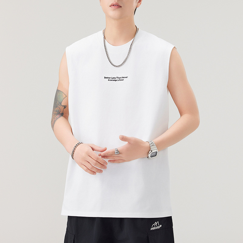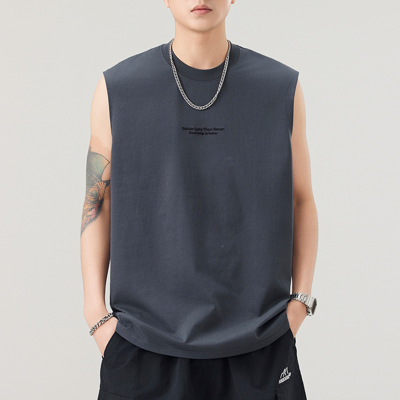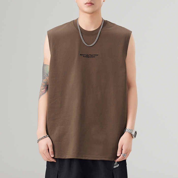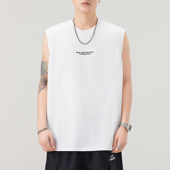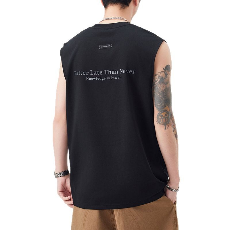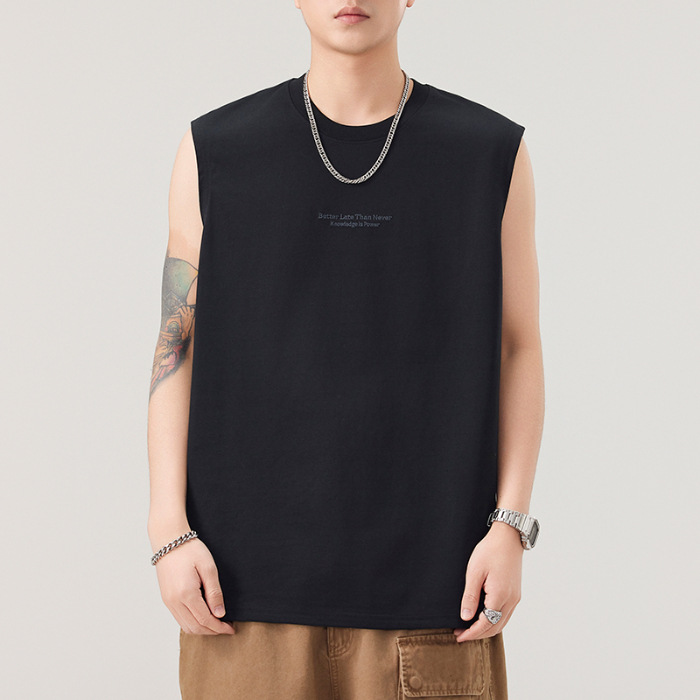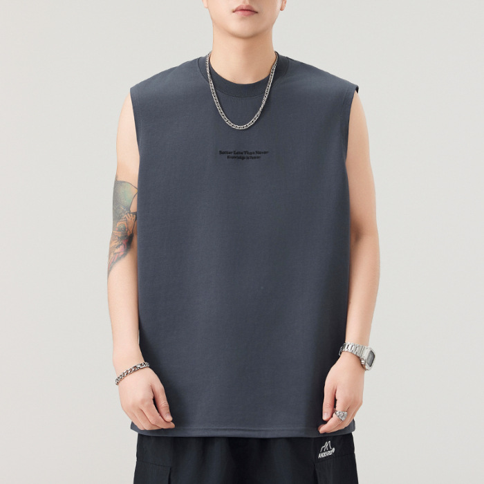 夏季新款210g重磅印花背心男宽松坎肩无袖T恤日系复古打底衫