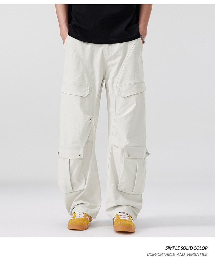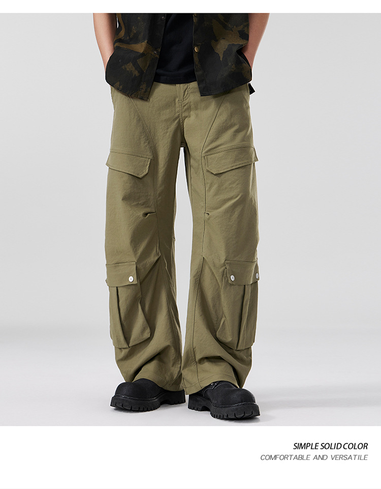 美式高街hiphop设计感工装弯刀裤男宽松直筒春夏季多口袋休闲长裤