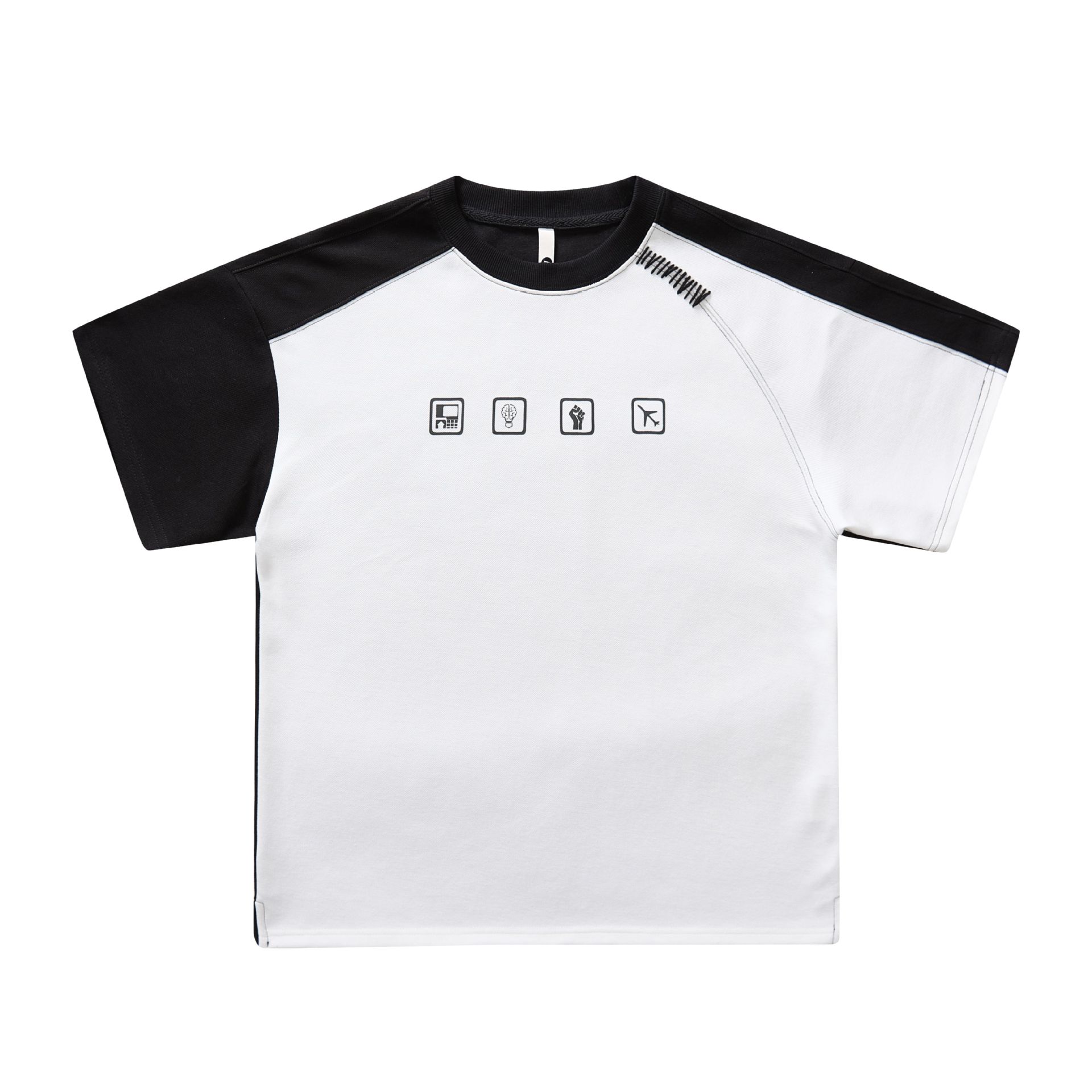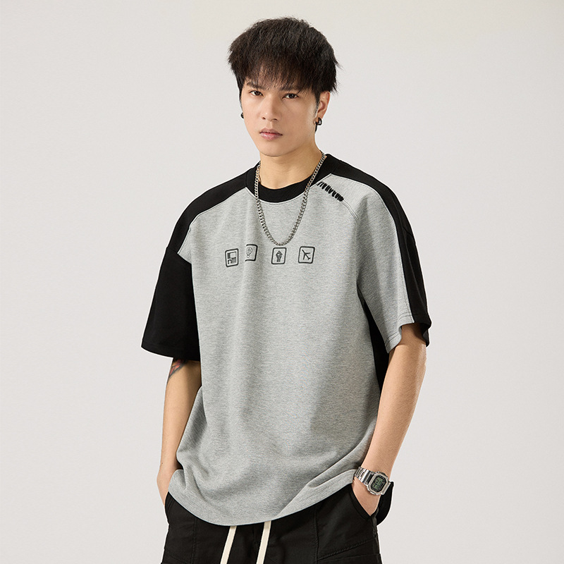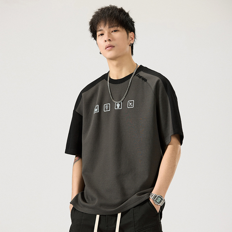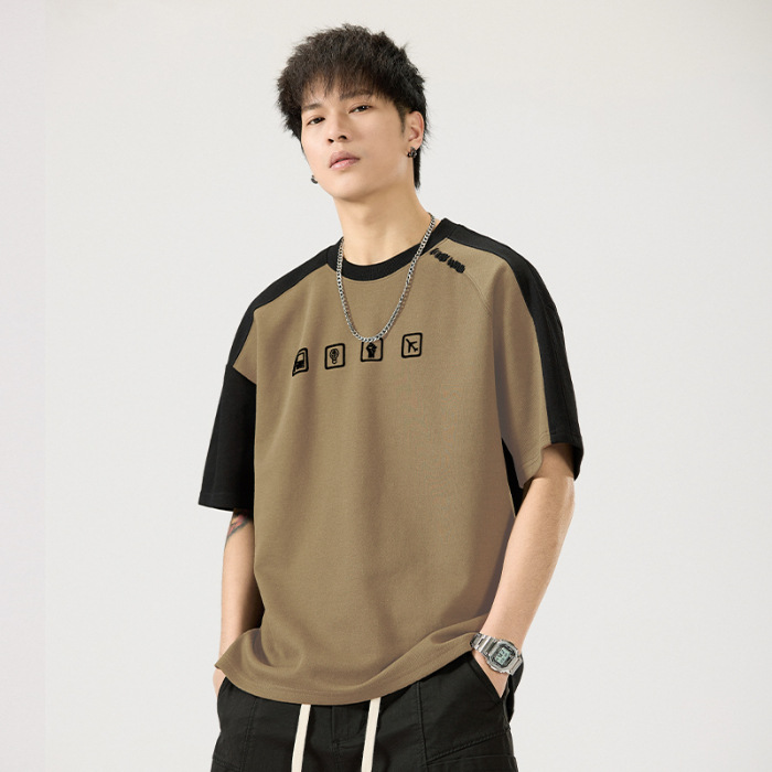 2025夏季新款插肩袖拼接短袖t恤男重磅美式休闲体恤宽松圆领半袖T
