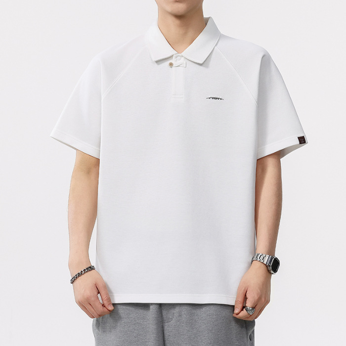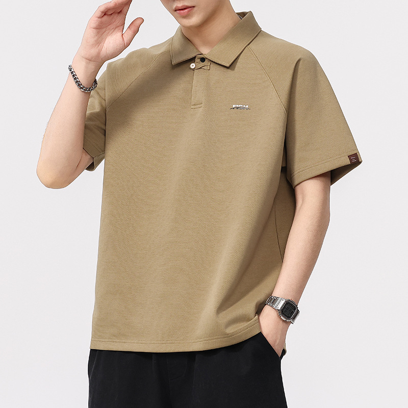 美式翻领polo衫短袖男夏季2025新款微宽松肌理感插肩半袖t恤男款