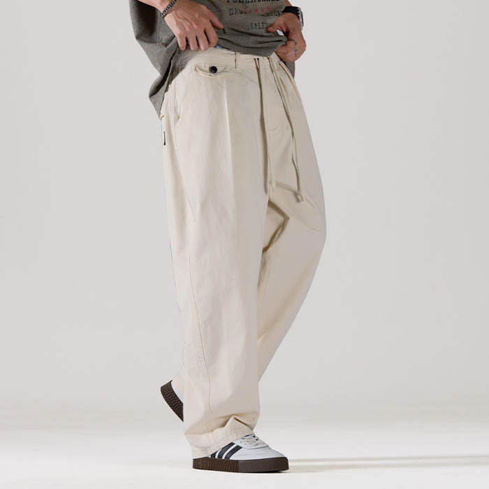 袋盖休闲裤美式复古潮牌宽松贴标直筒长裤百搭机能工装裤男