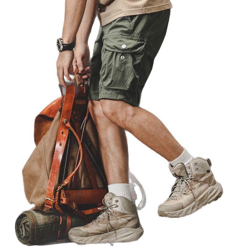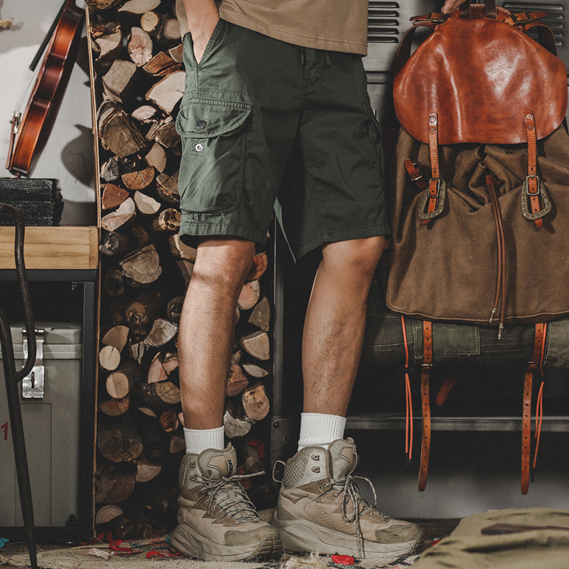 美式弹力工装短裤男潮复古山系户外大口袋机能宽松五分中裤