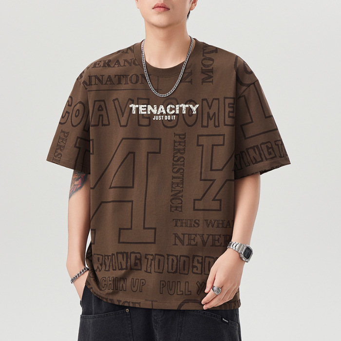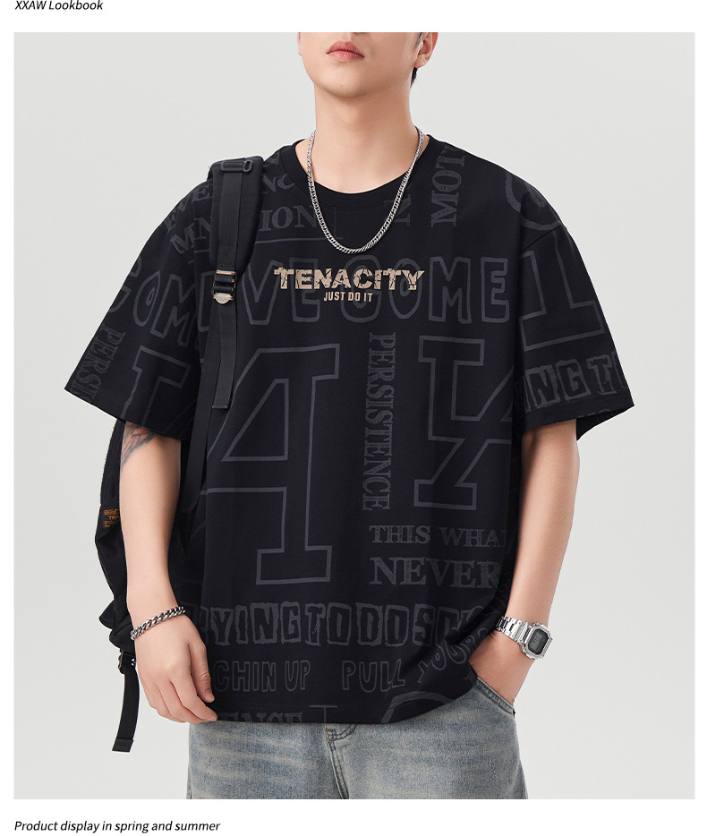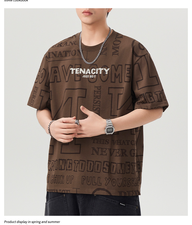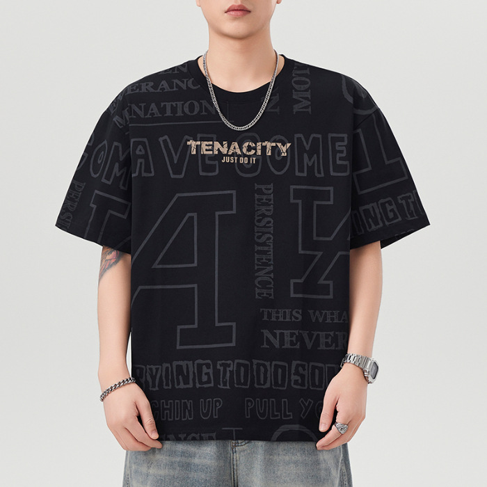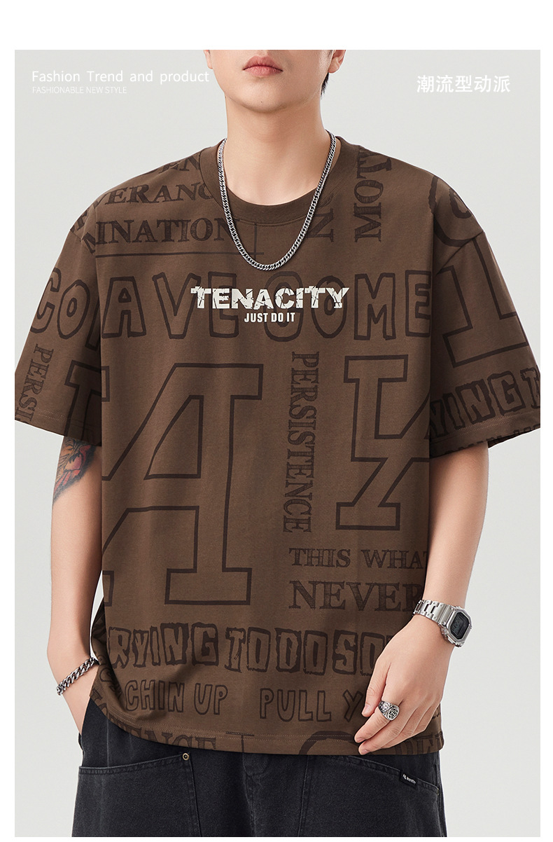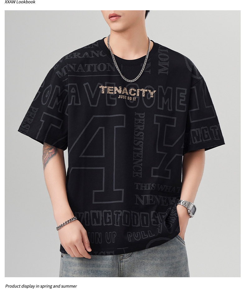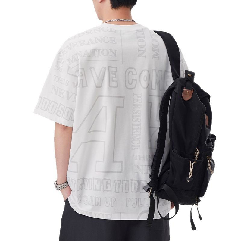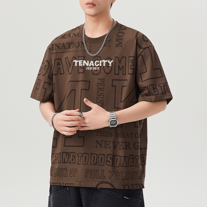 潮牌满印短袖t恤男士2025年春夏季新款宽松大码休闲圆领半袖体恤
