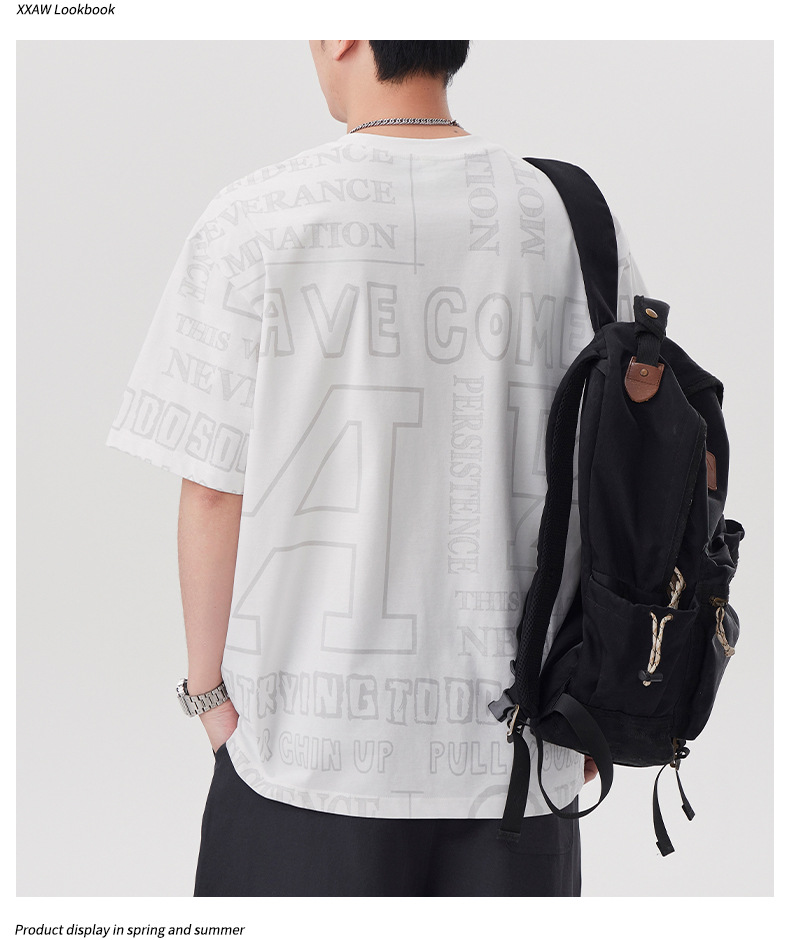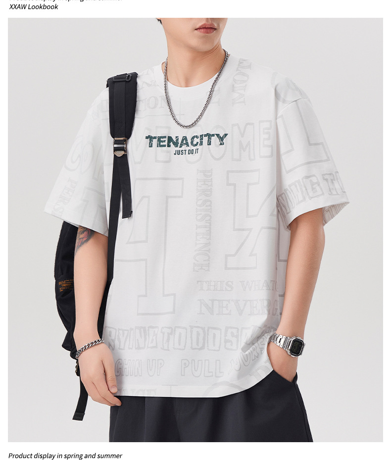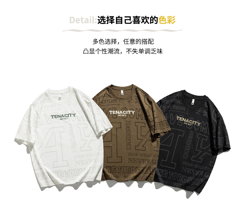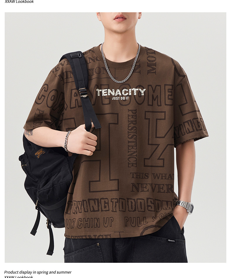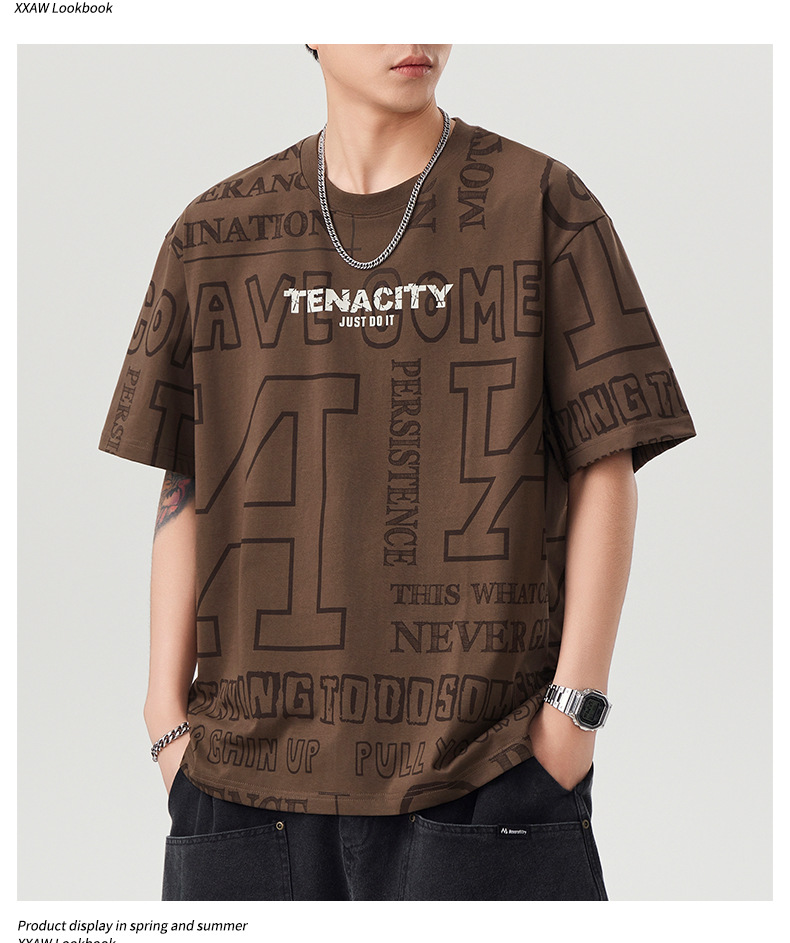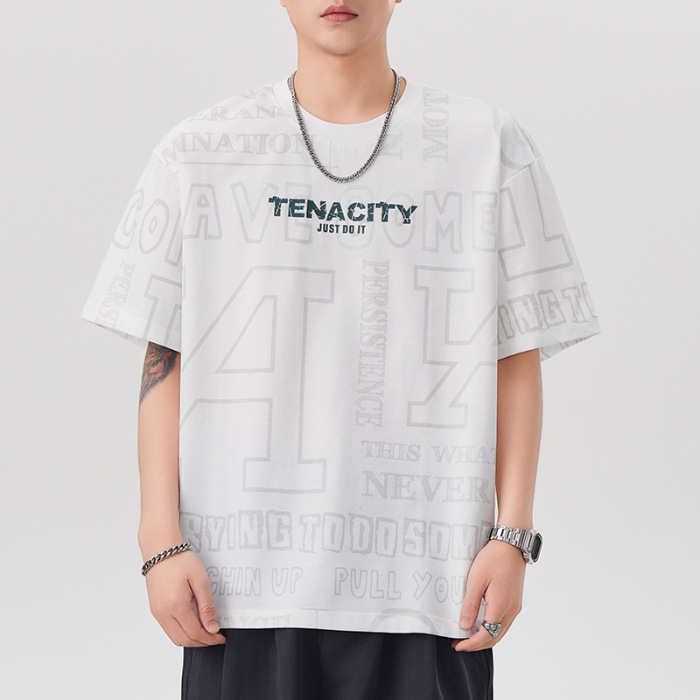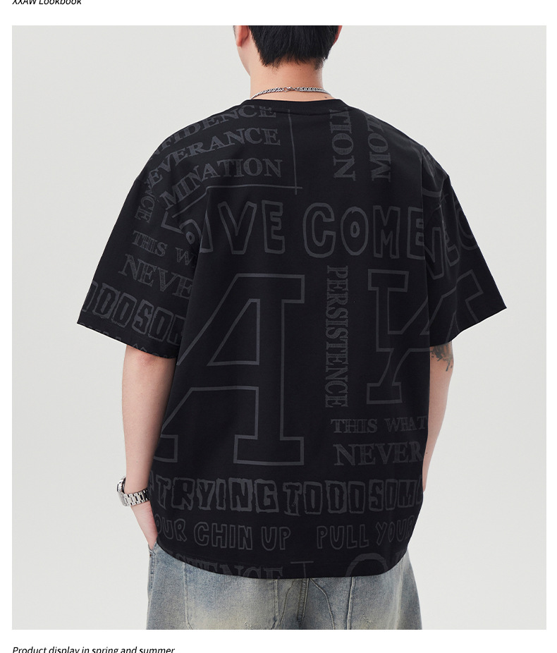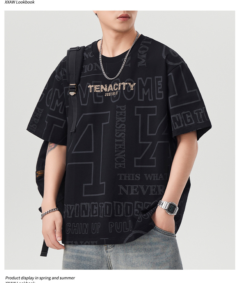 潮牌满印短袖t恤男士2025年春夏季新款宽松大码休闲圆领半袖体恤