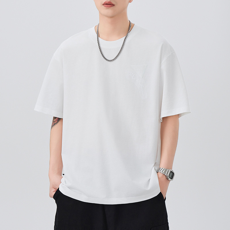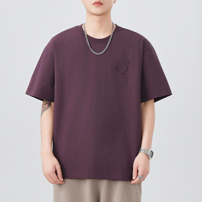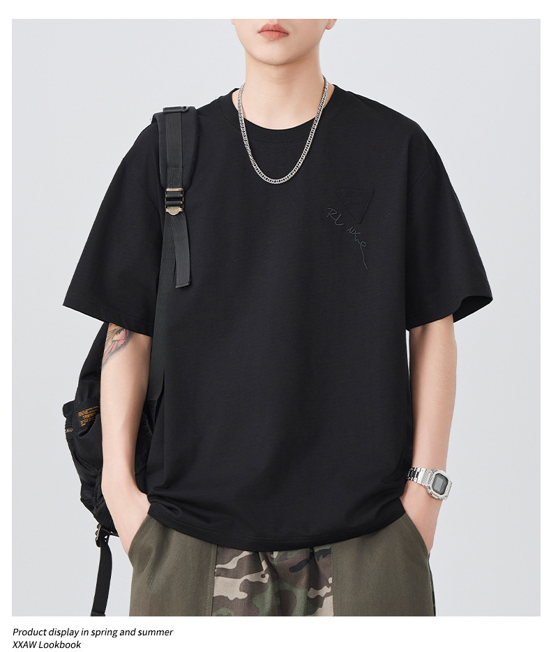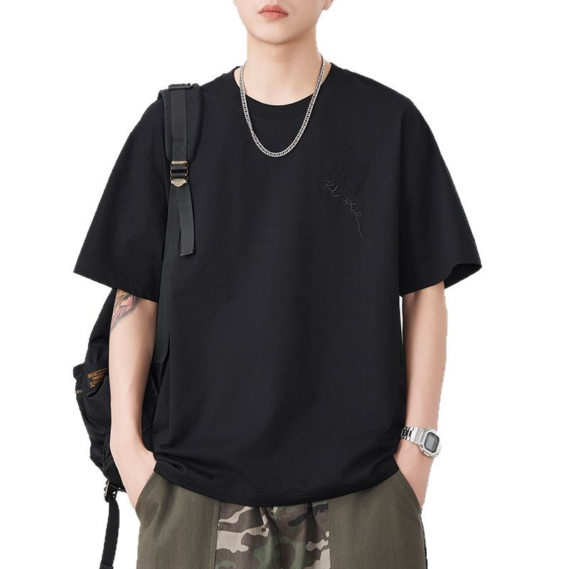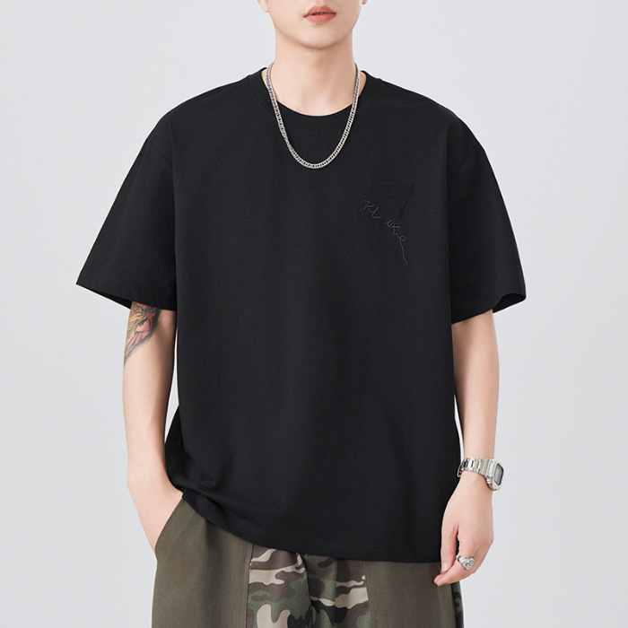 日系复古宽松短袖T恤男士2025夏季新款大码圆领刺绣套头半袖潮流