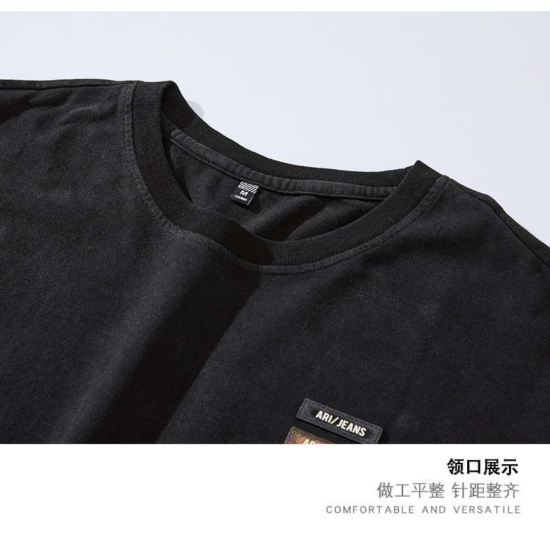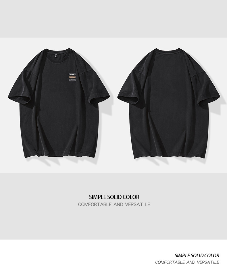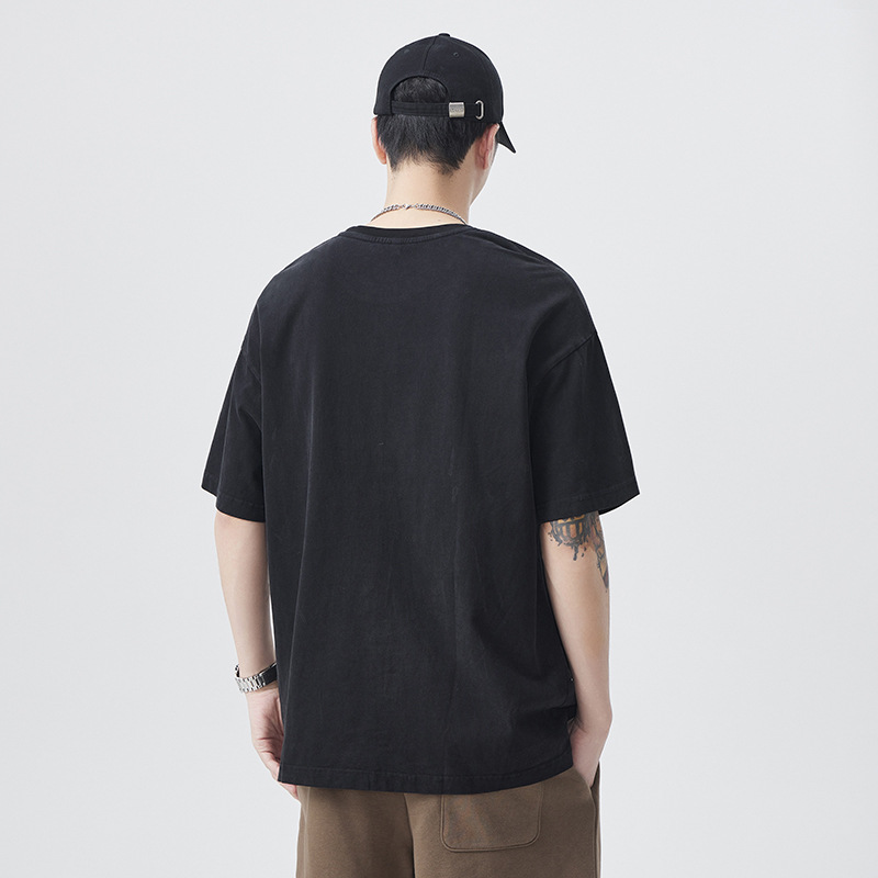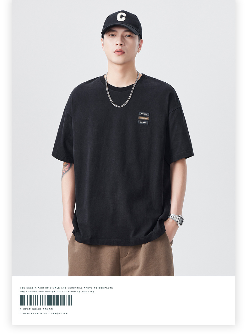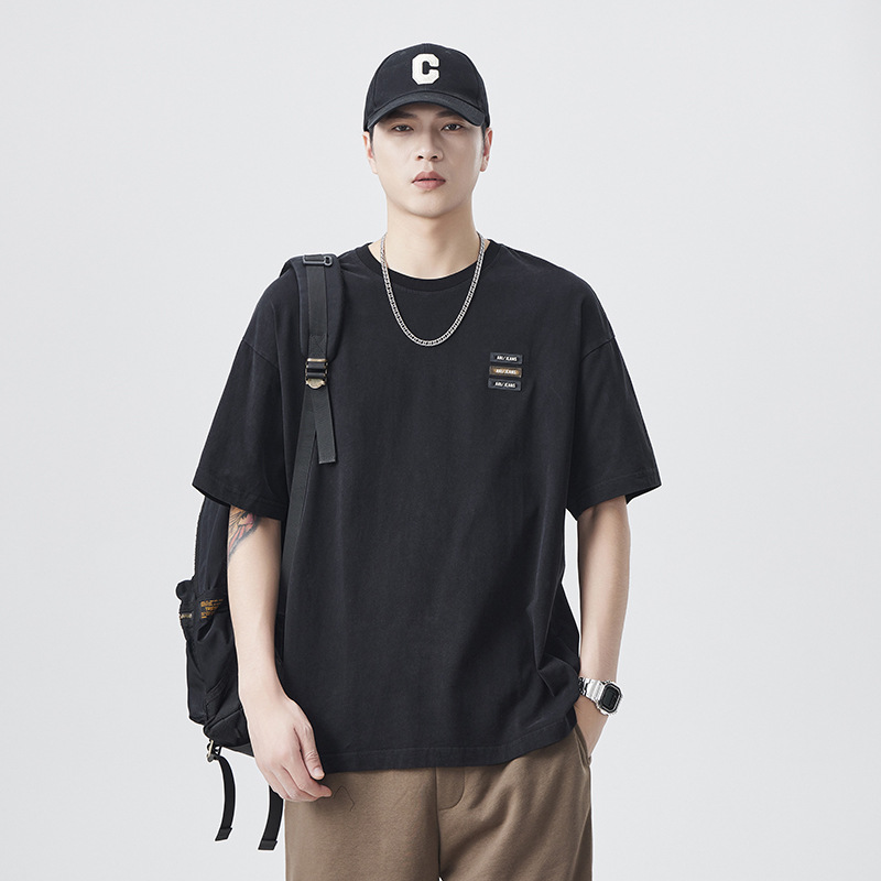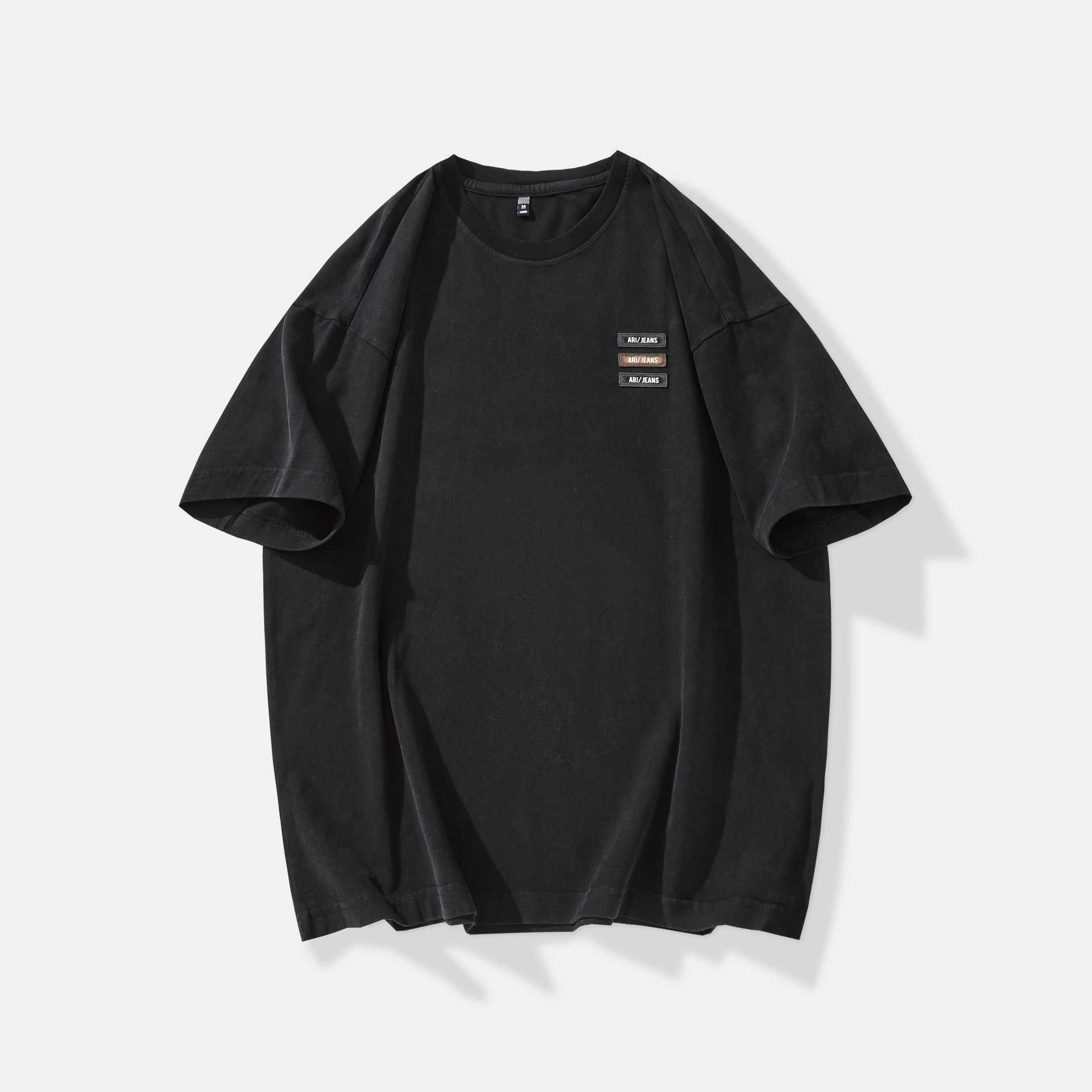 美式复古纯棉短袖t恤男士宽松圆领简约刺绣上衣夏季五分袖体恤男