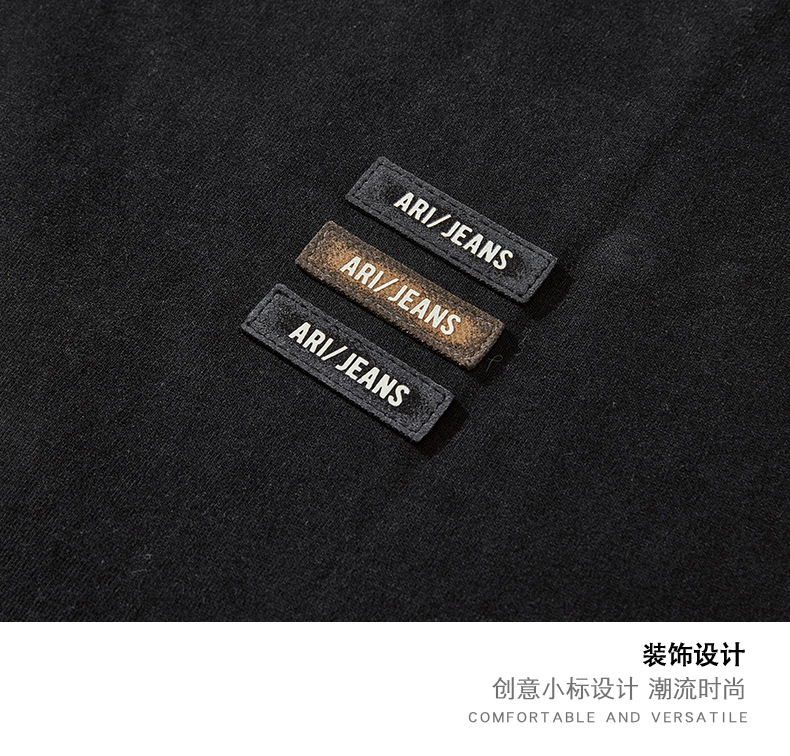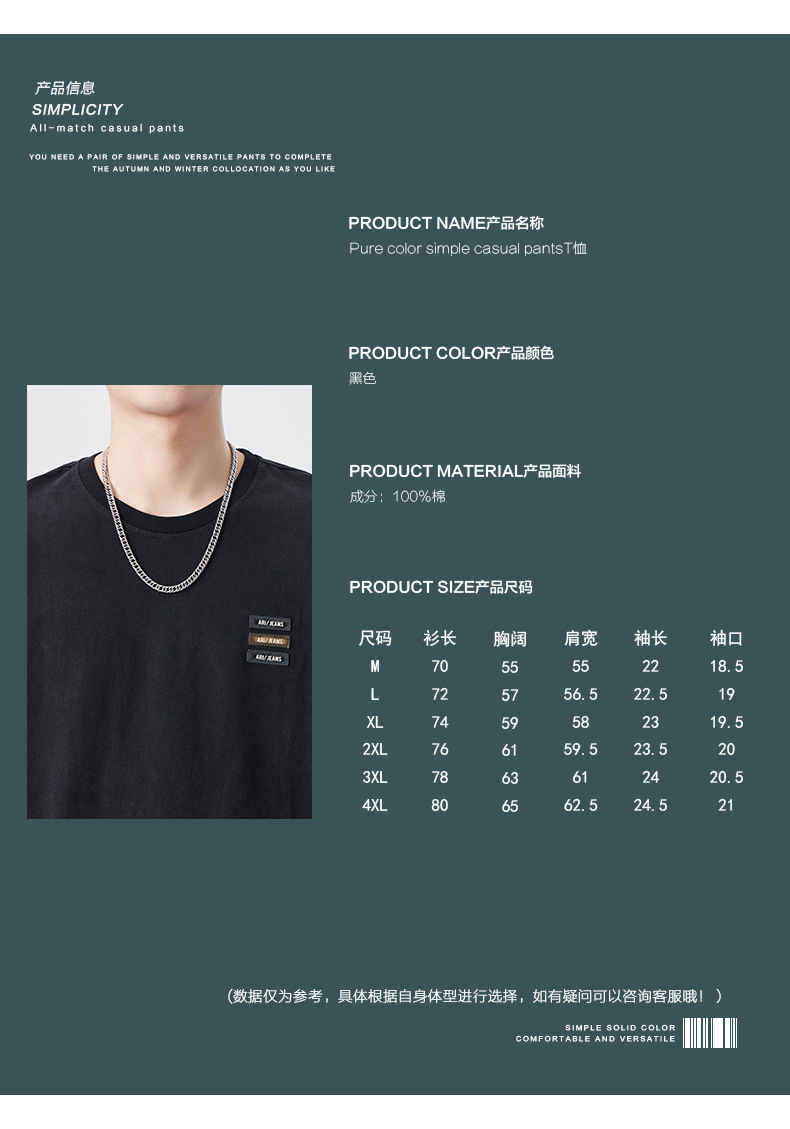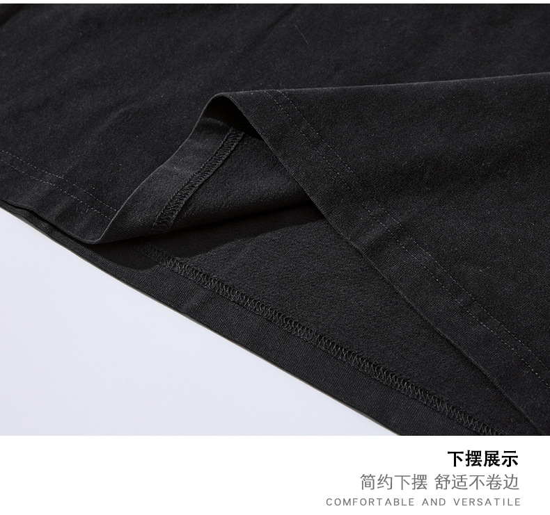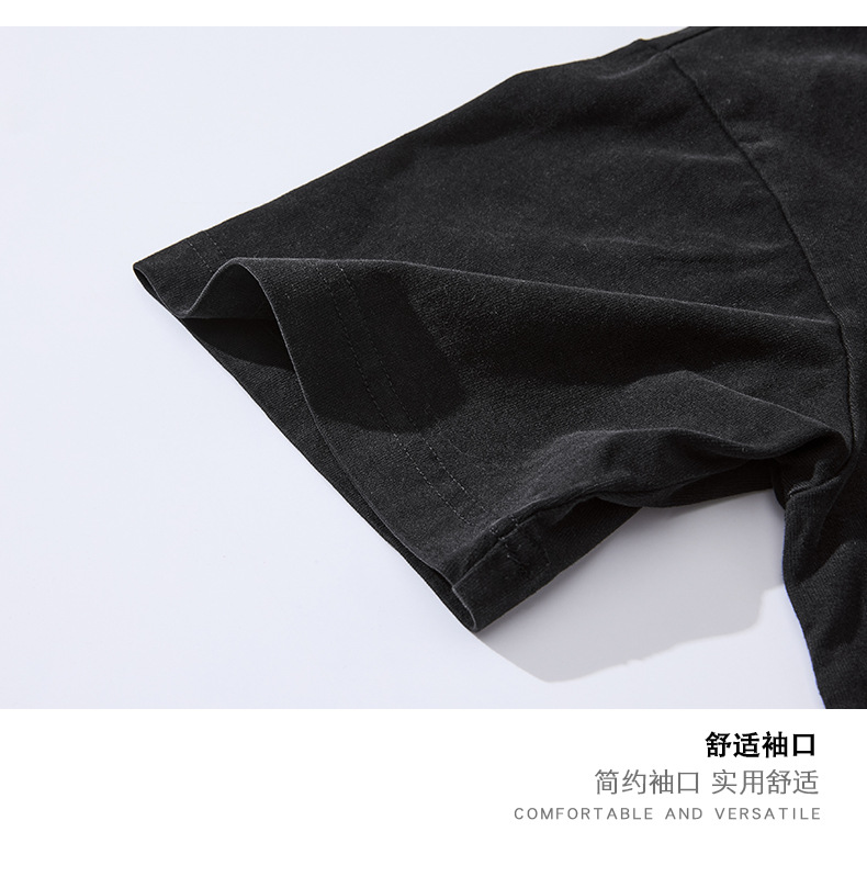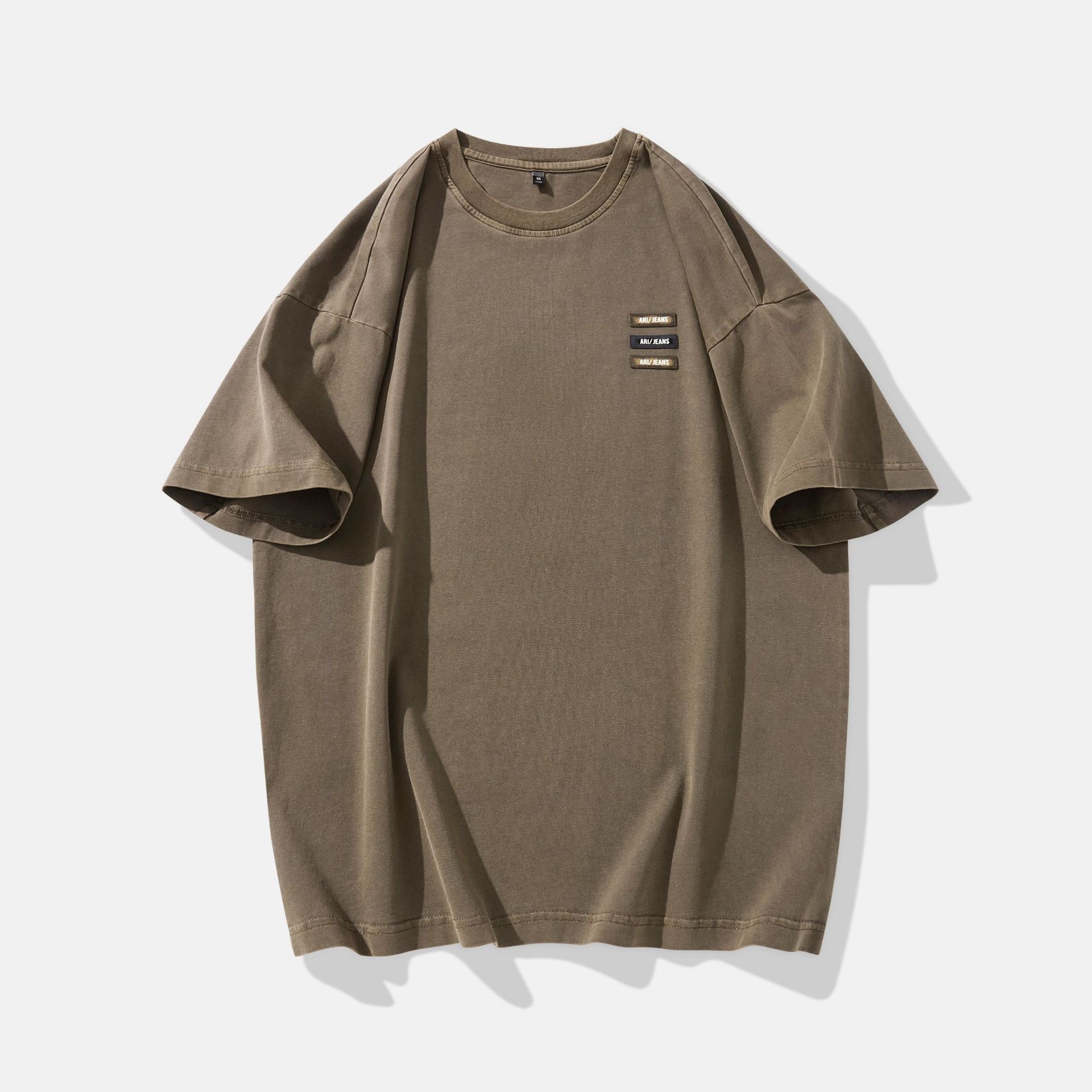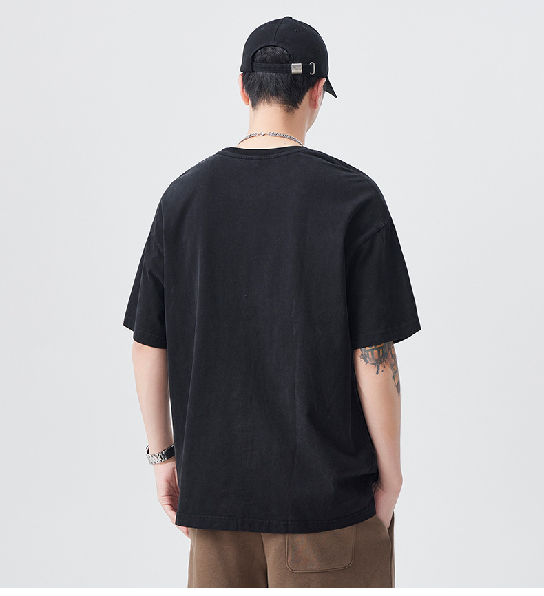 美式复古纯棉短袖t恤男士宽松圆领简约刺绣上衣夏季五分袖体恤男
