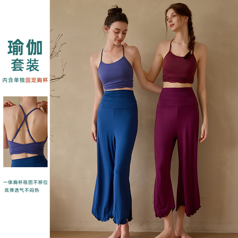 内观流冥想慵懒气质瑜伽套装健身跑步普拉提高腰阔腿裤固定胸杯女