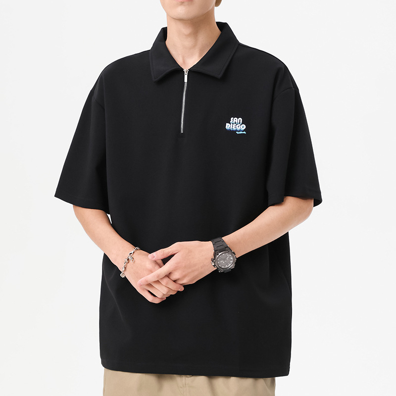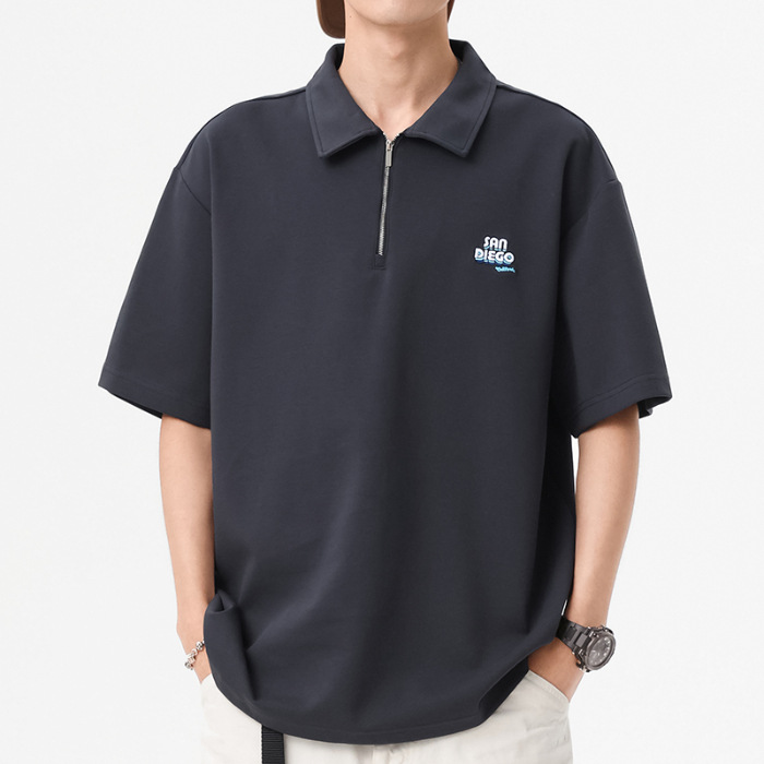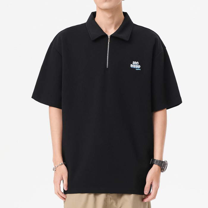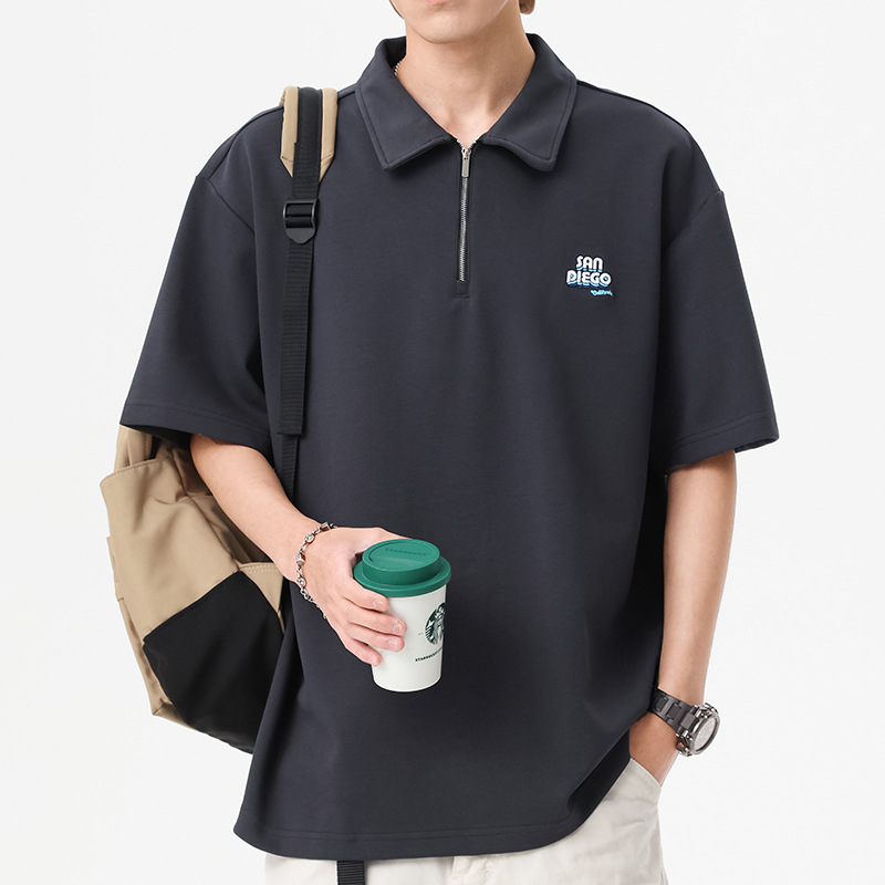 高端短袖Polo衫男士翻领半拉链夏季潮流升级华夫格宽松T恤上衣男