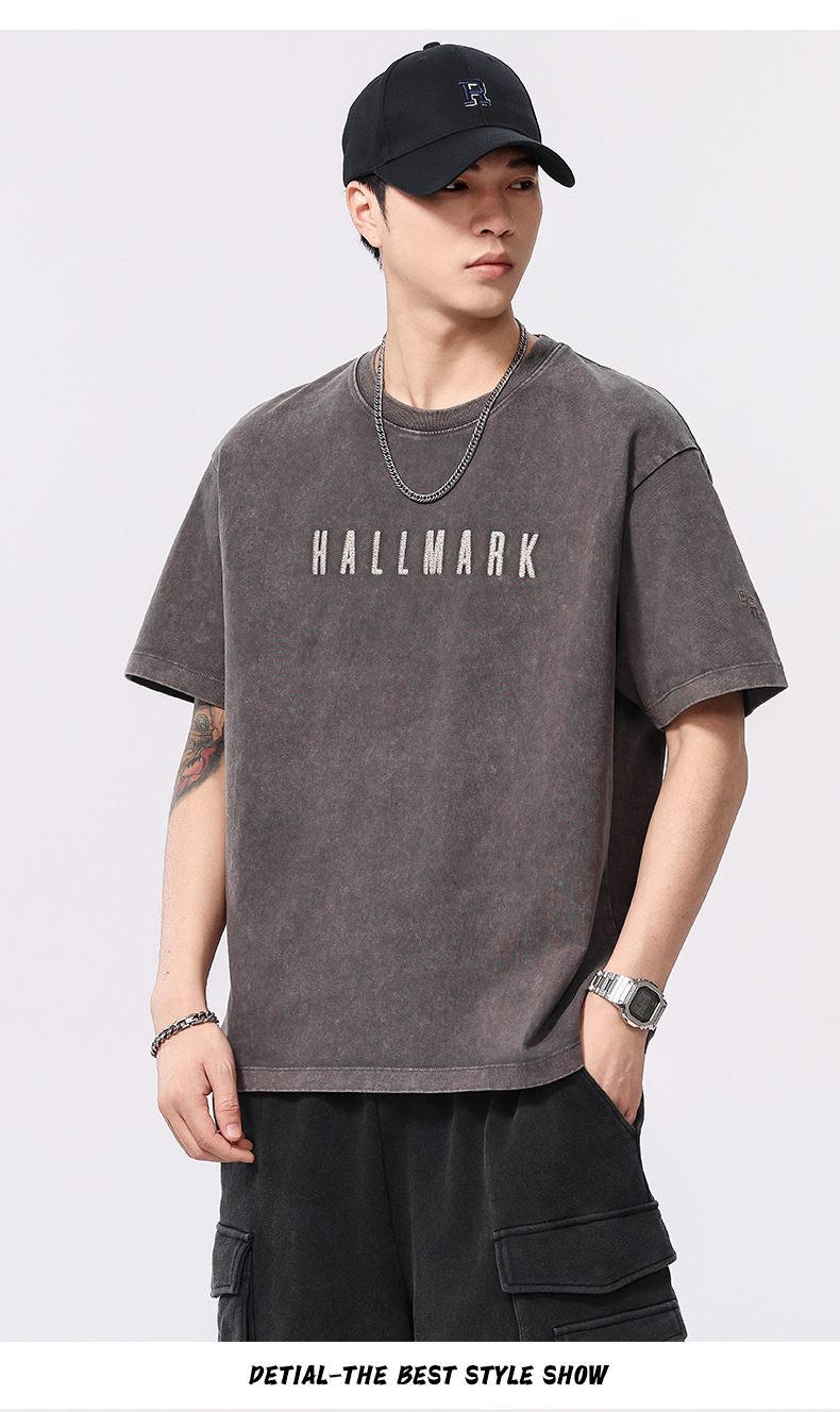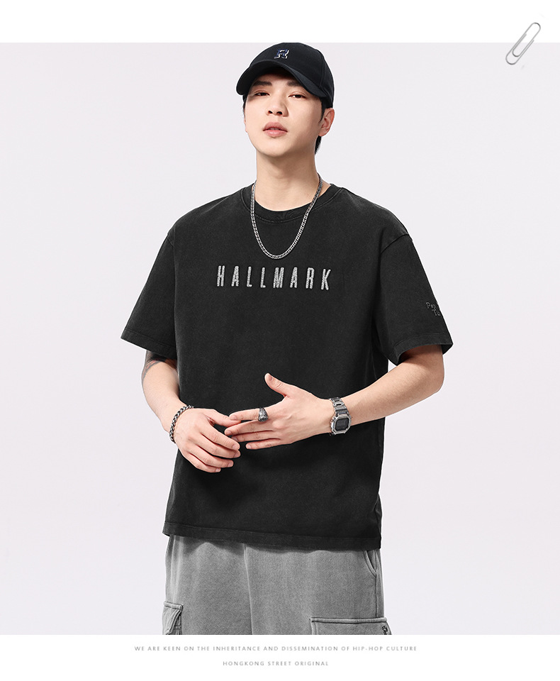 美式复古短袖t恤男士宽松大码夏季新款字母刺绣潮流百搭半袖体恤