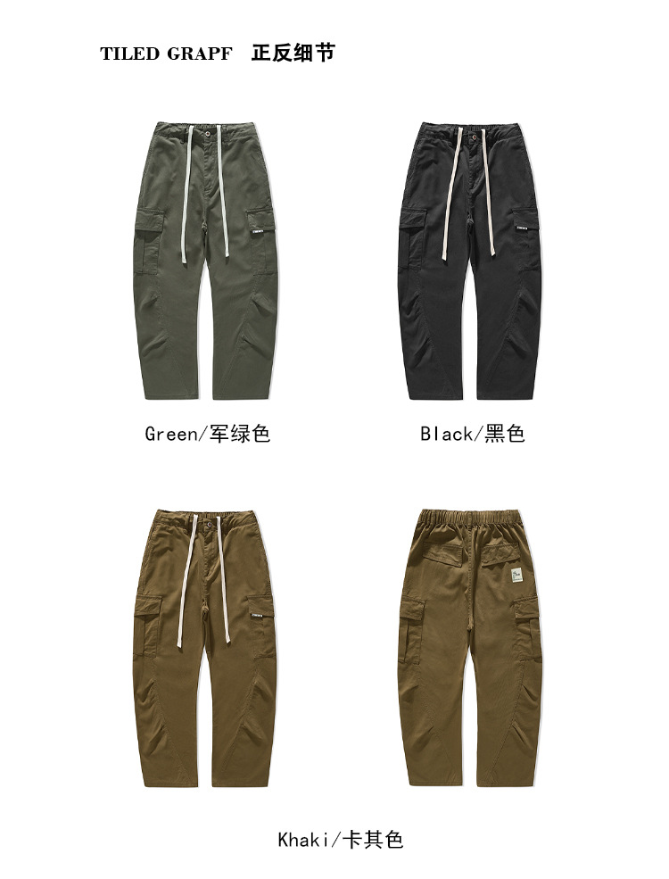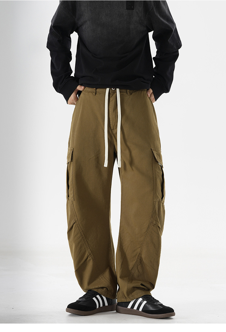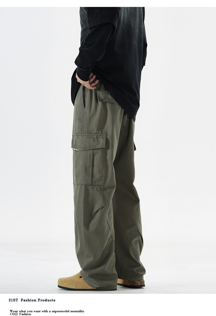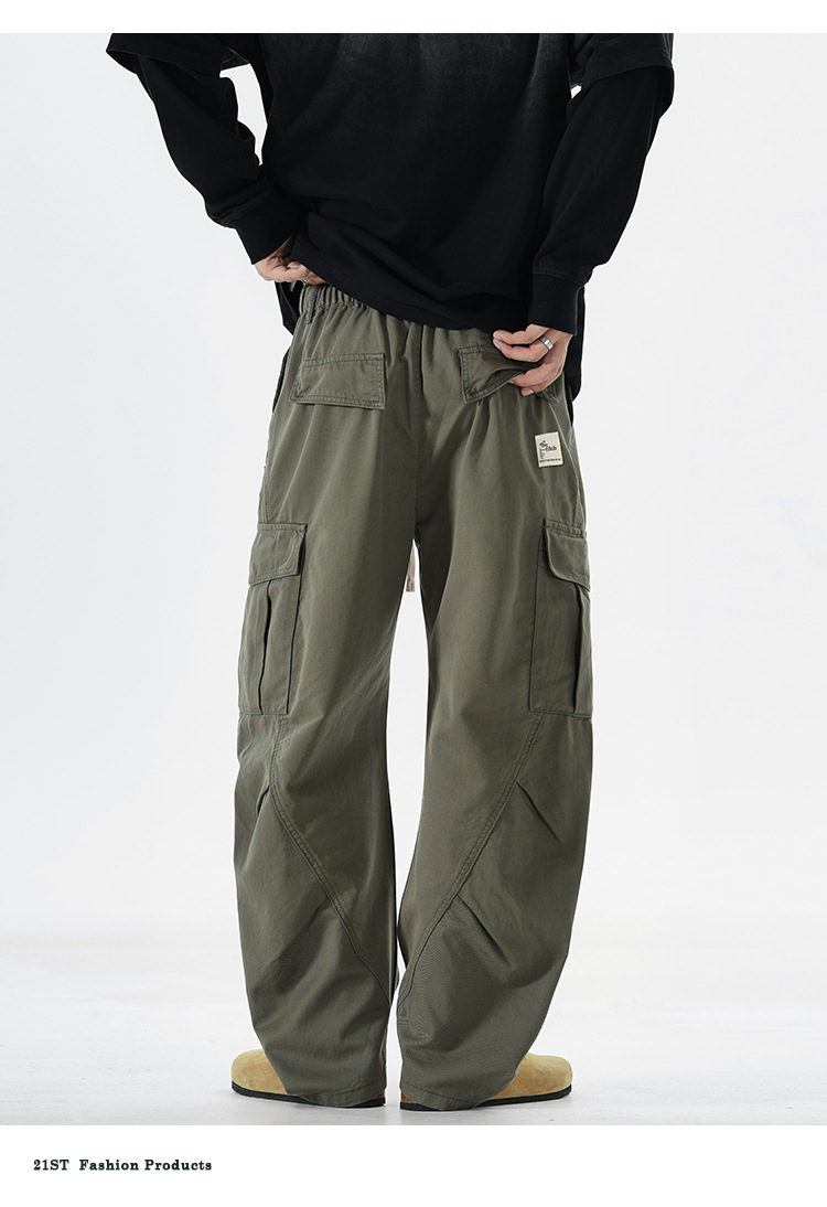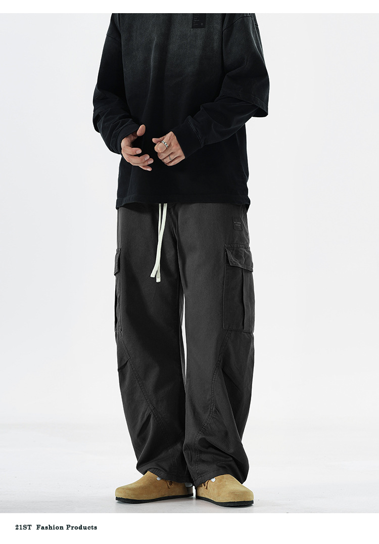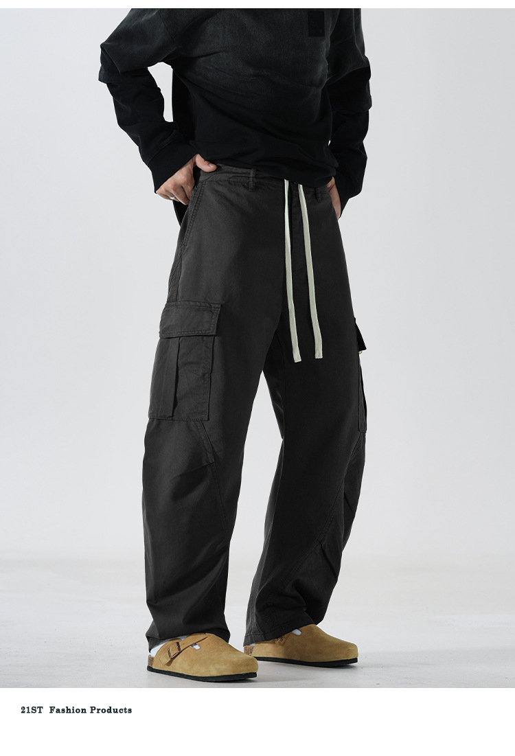 天丝弯刀工装裤男款水洗复古潮流宽松直筒阔腿休闲多口袋长裤春夏