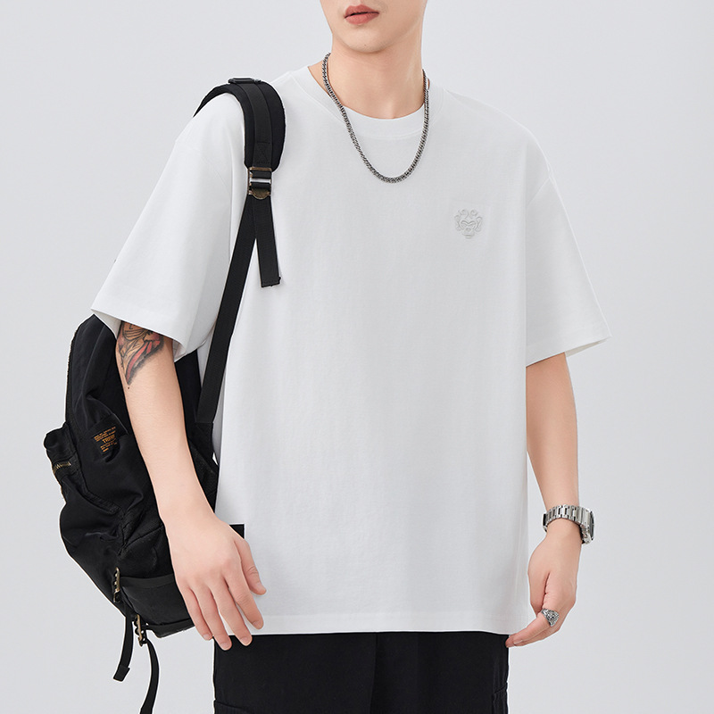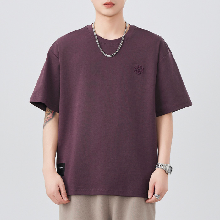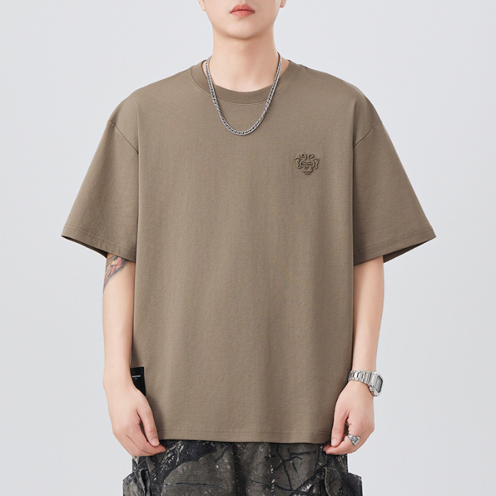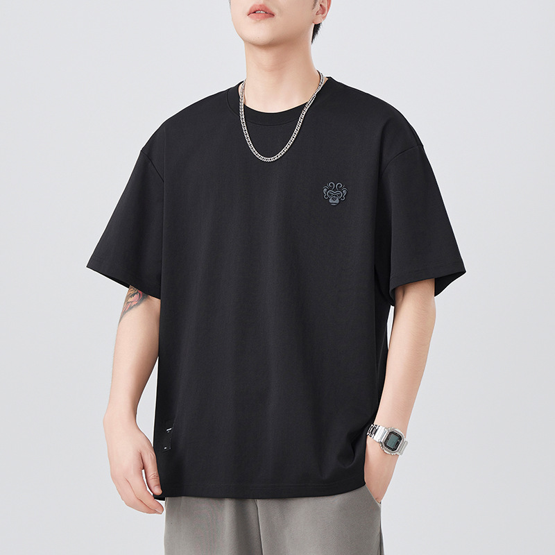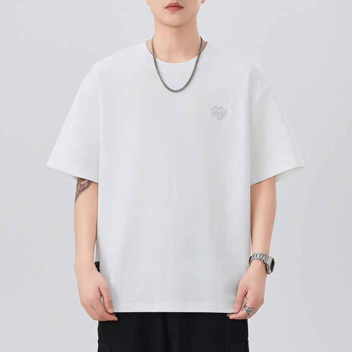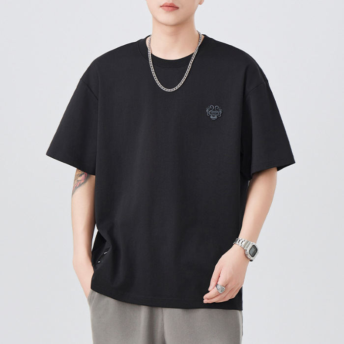 夏季新款短袖T恤男重磅刺绣体恤衫圆领宽松五分袖潮流百搭休闲潮