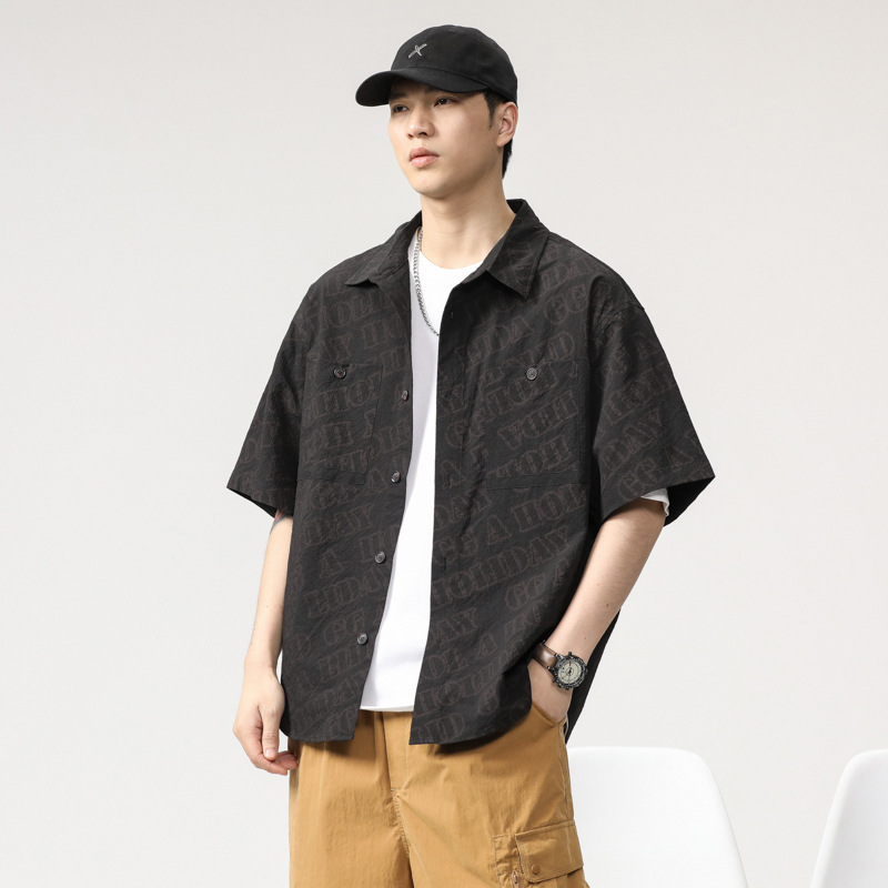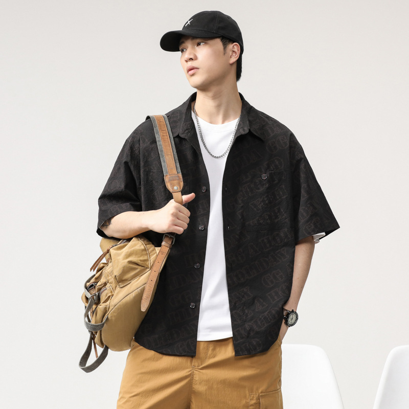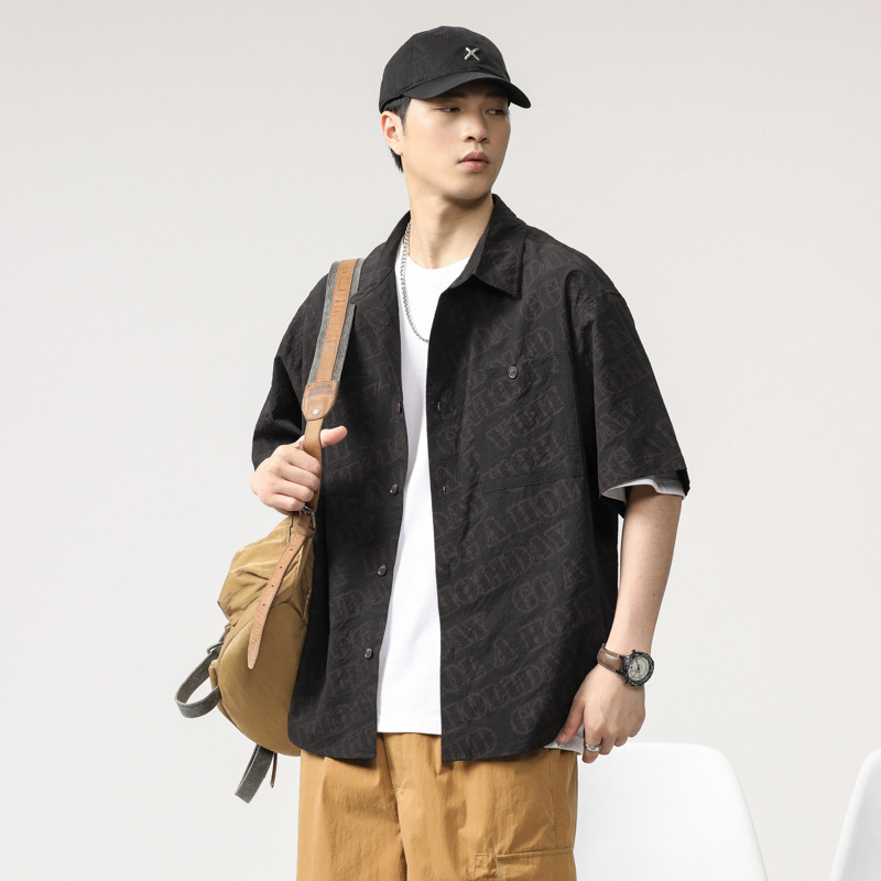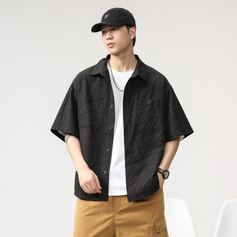 泡泡肌理感冰丝凉感短袖衬衫外套男士夏季2025新款日系高级感寸衣