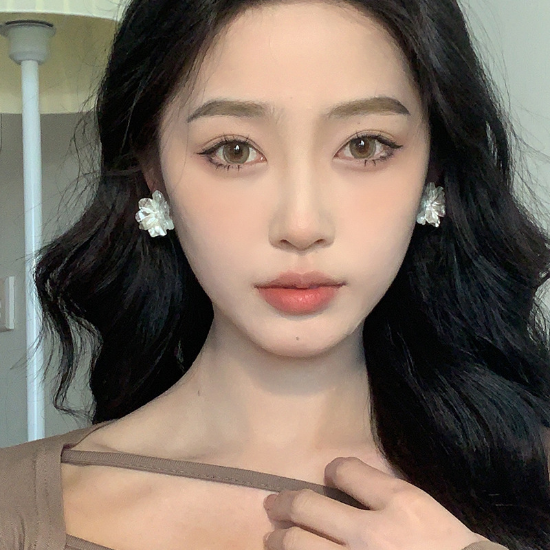 春夏新款气质超仙白色花朵耳环女高级感法式优雅耳钉耳饰小众配饰