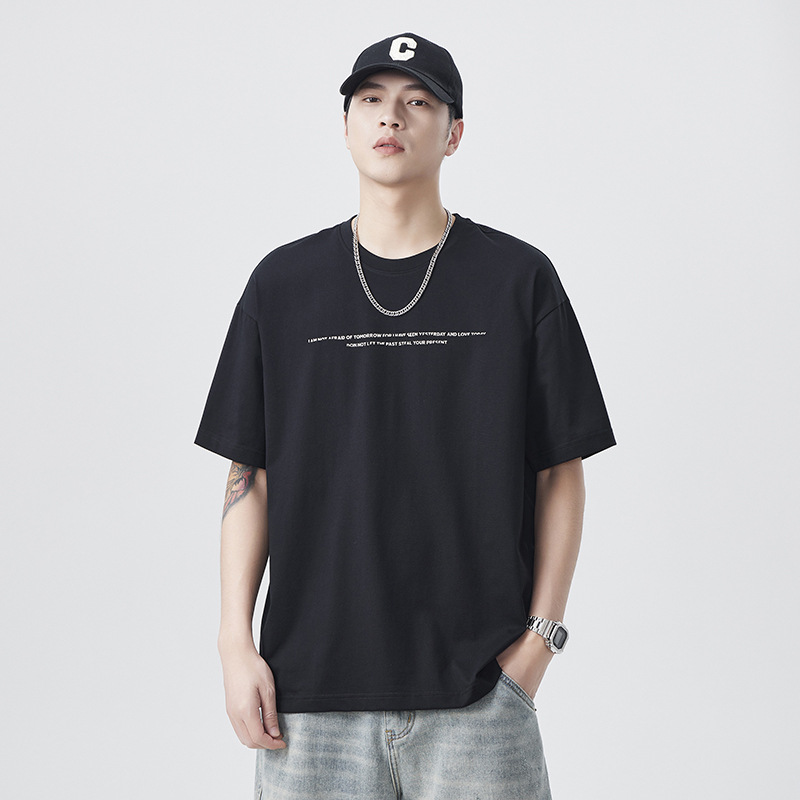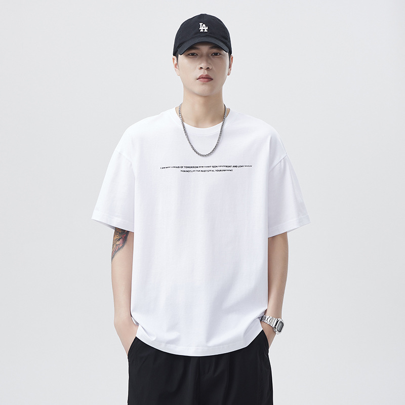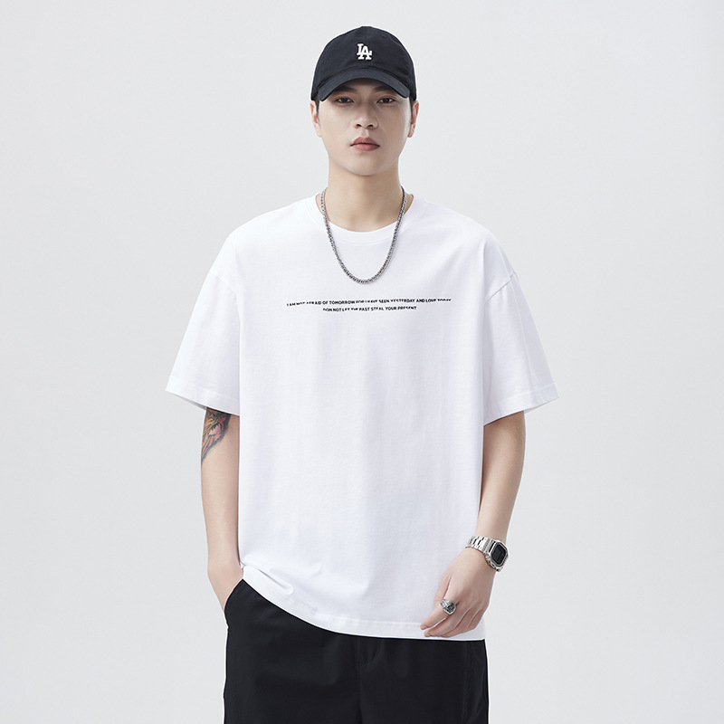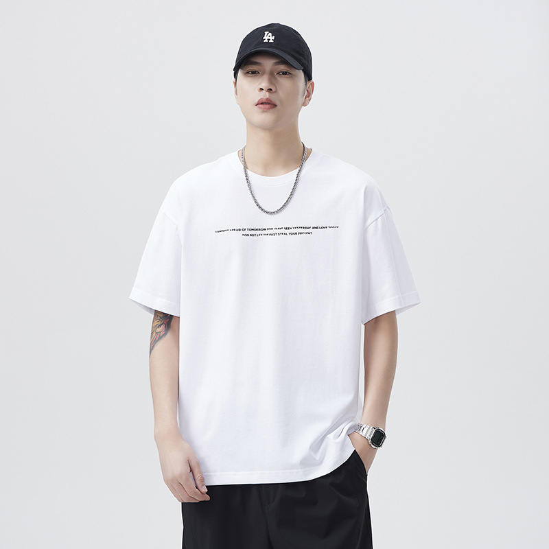 短袖t恤男2025夏季新款潮流宽松圆领体恤190g日系简约字母印花上