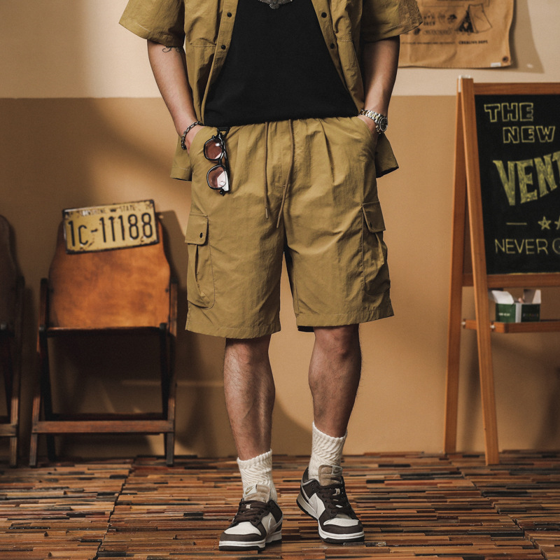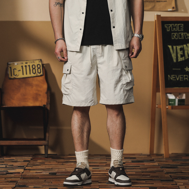 潮牌工装短裤男2025夏季新款宽松阔腿运动裤美式松紧腰休闲五分裤