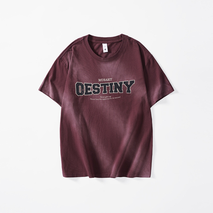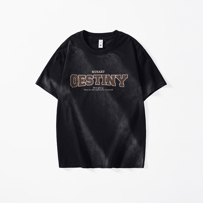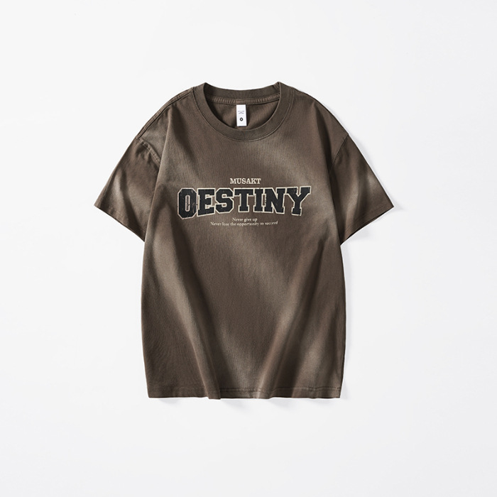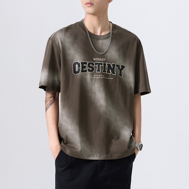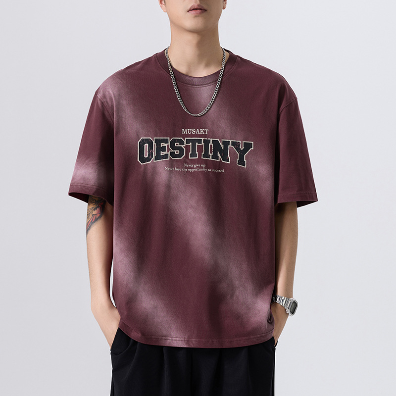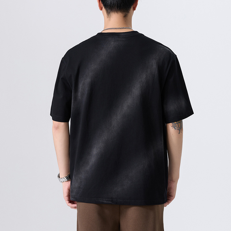 美式复古重磅潮牌渐变染纯棉t恤男短袖2025新款夏季宽松男士上衣