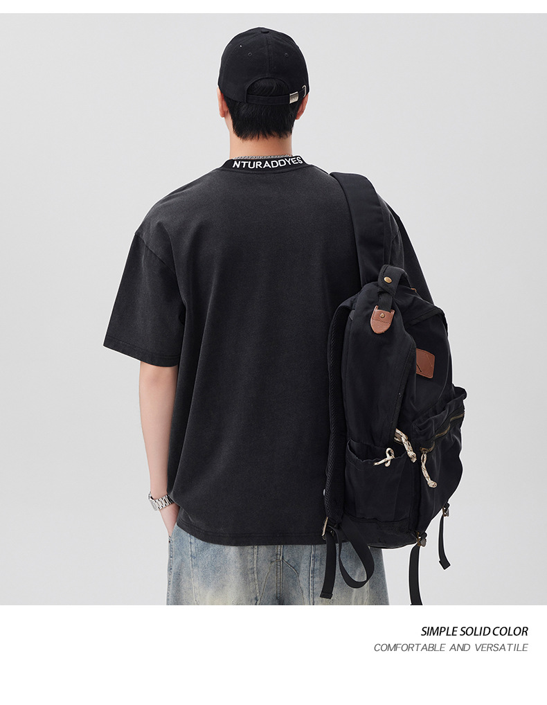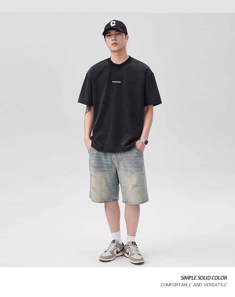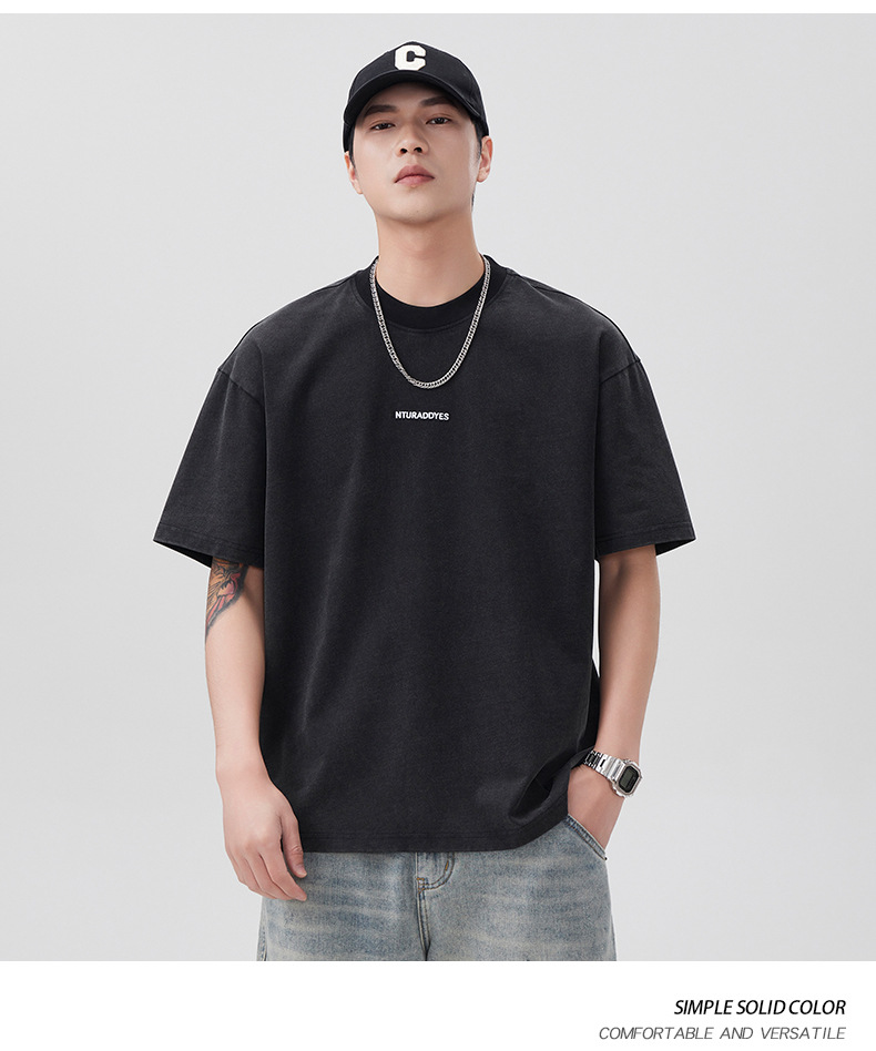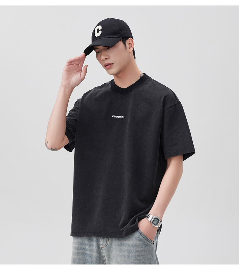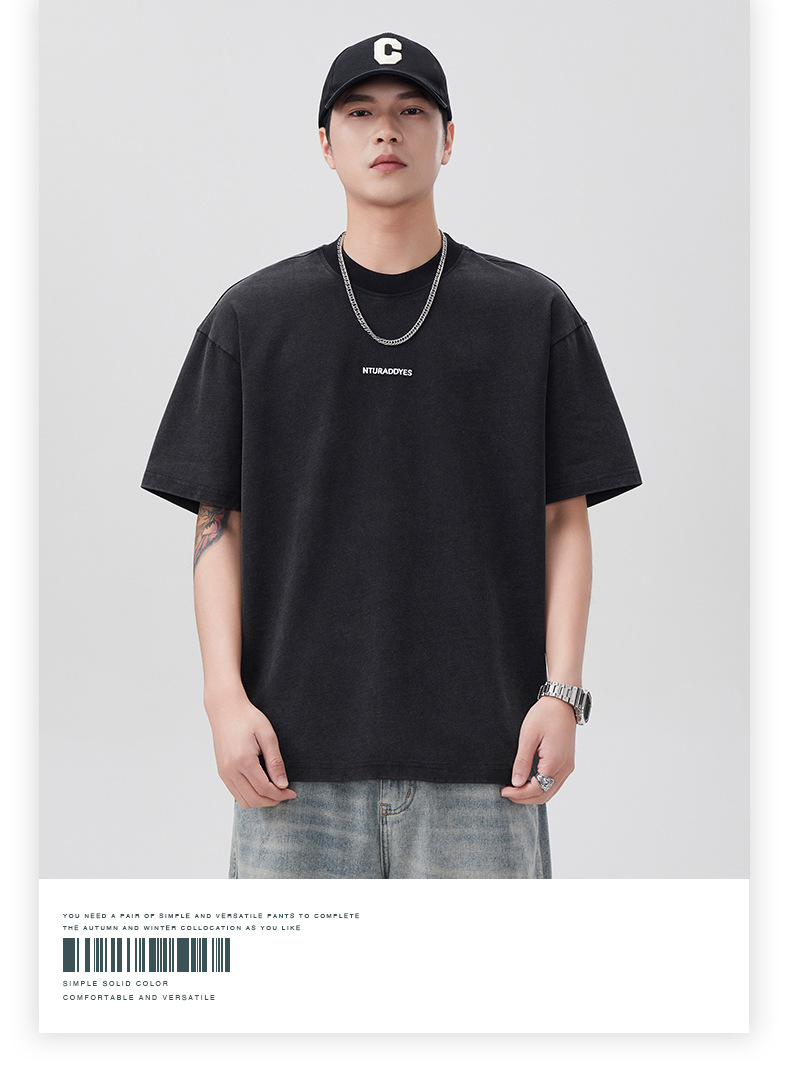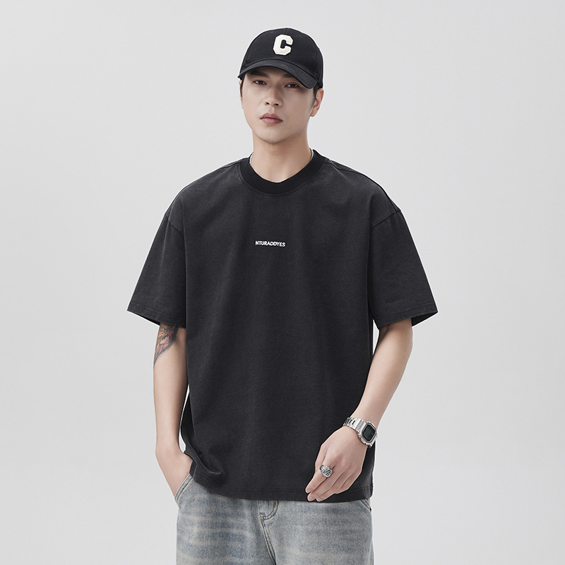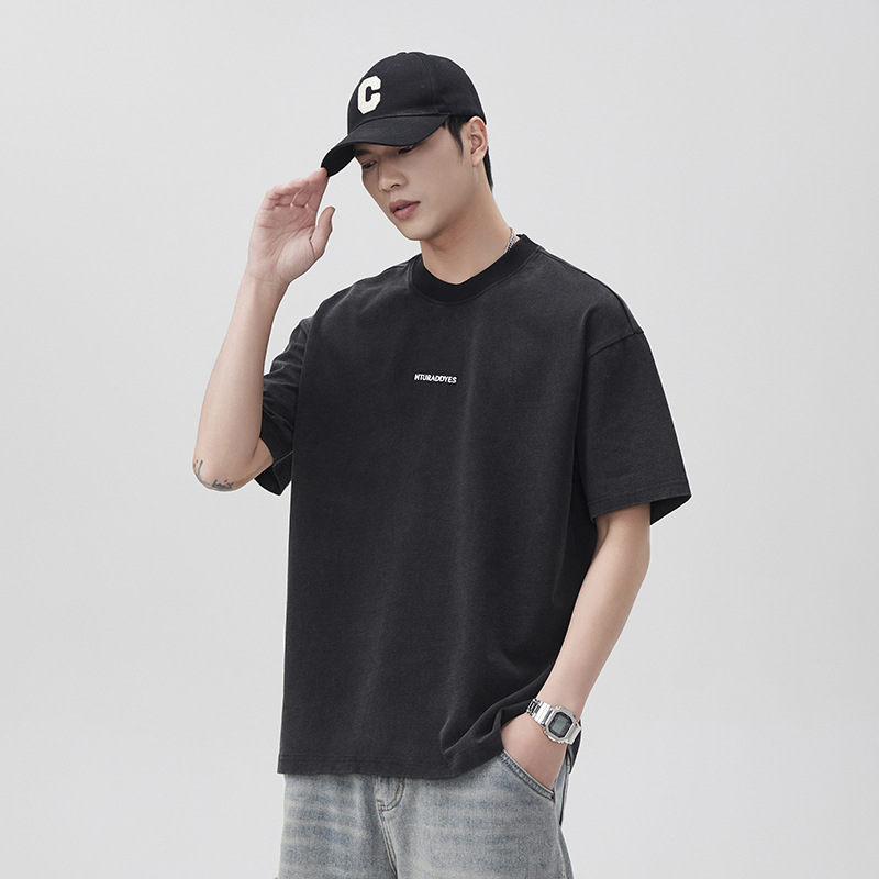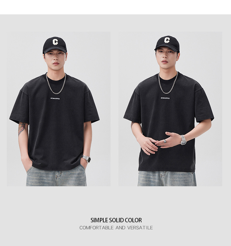 黑色短袖t恤男士2025新款夏季美式潮牌宽松休闲纯棉上衣男款