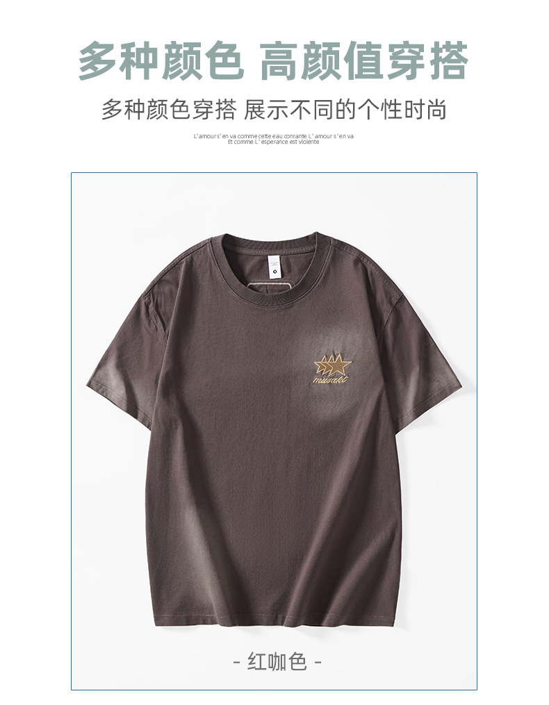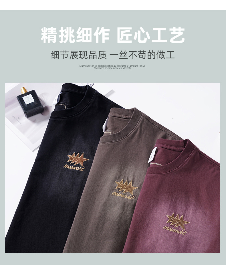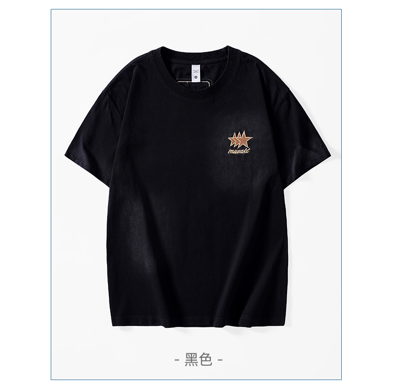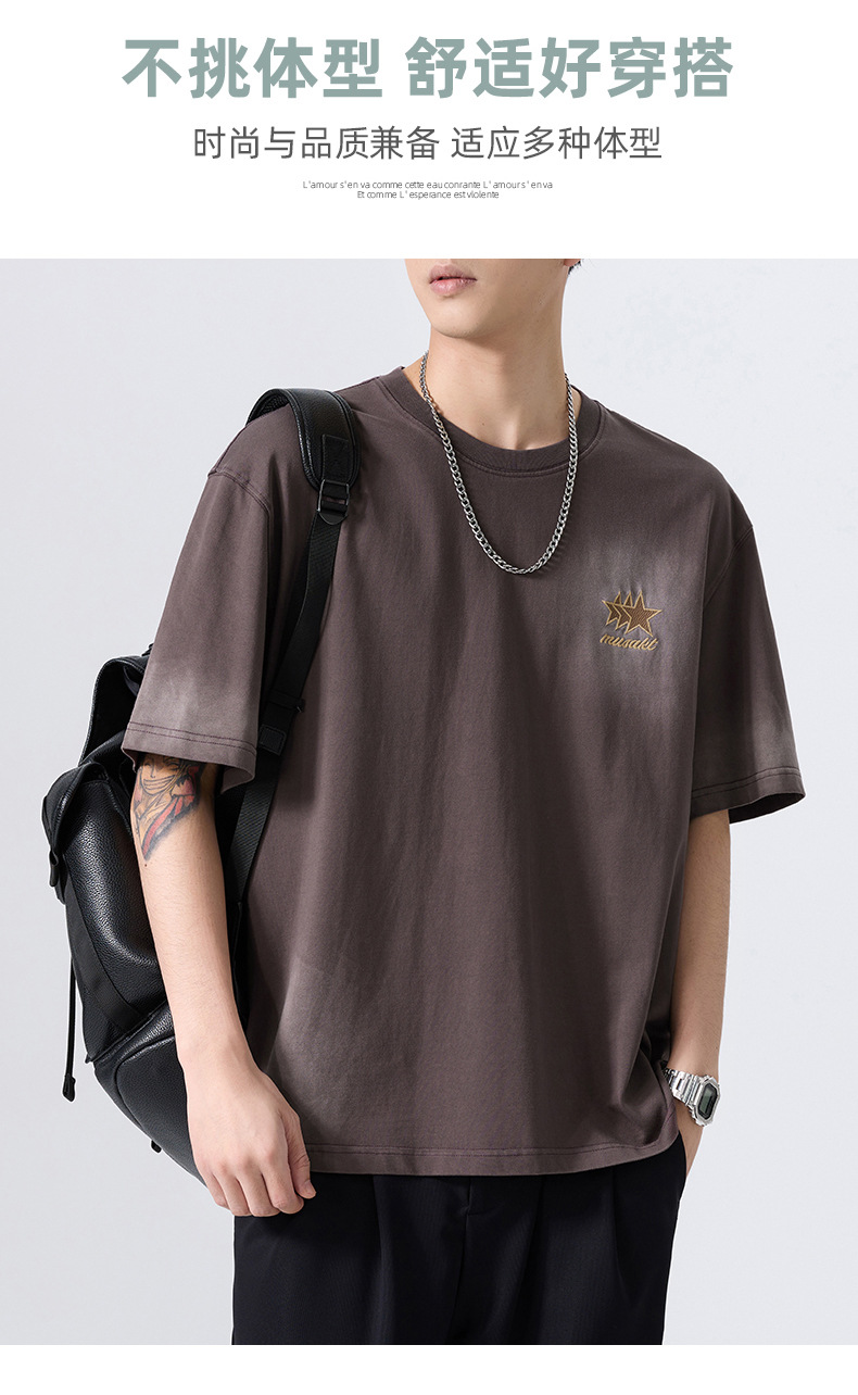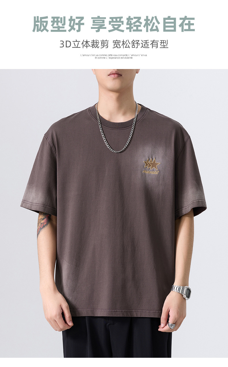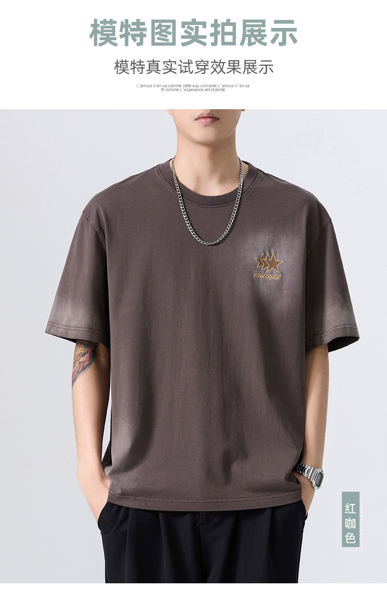 260g美式重磅水洗纯棉T恤男短袖夏季新款潮流圆领刺绣宽松上衣男