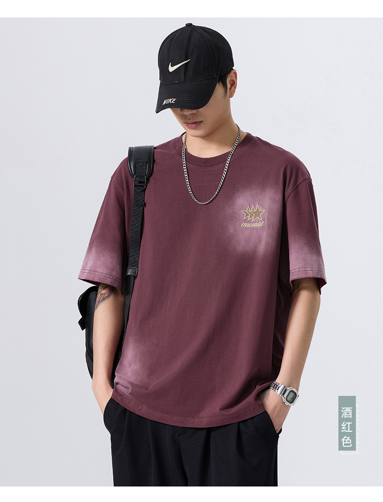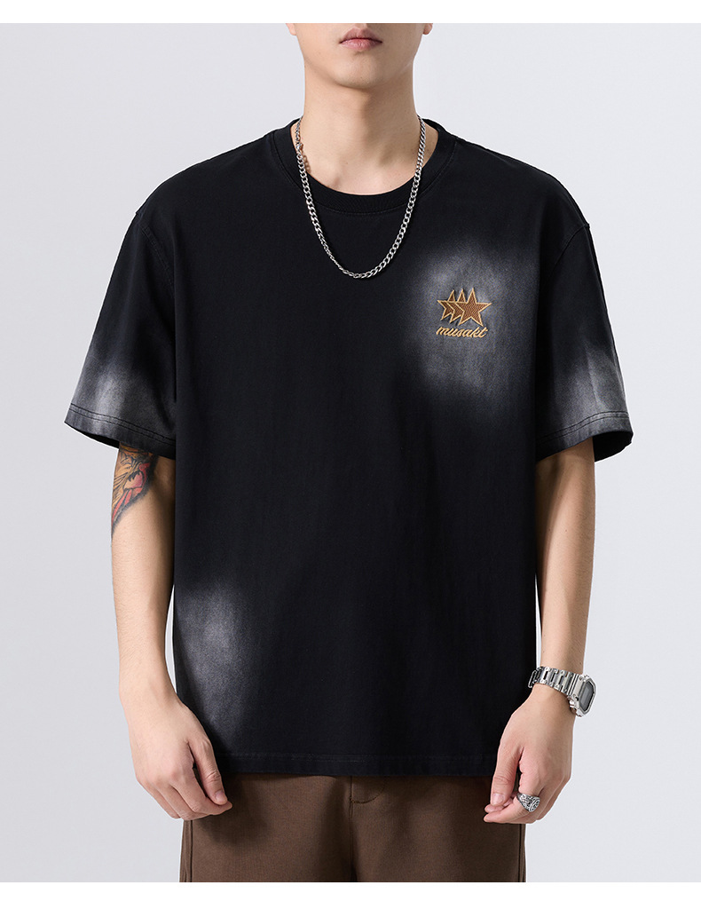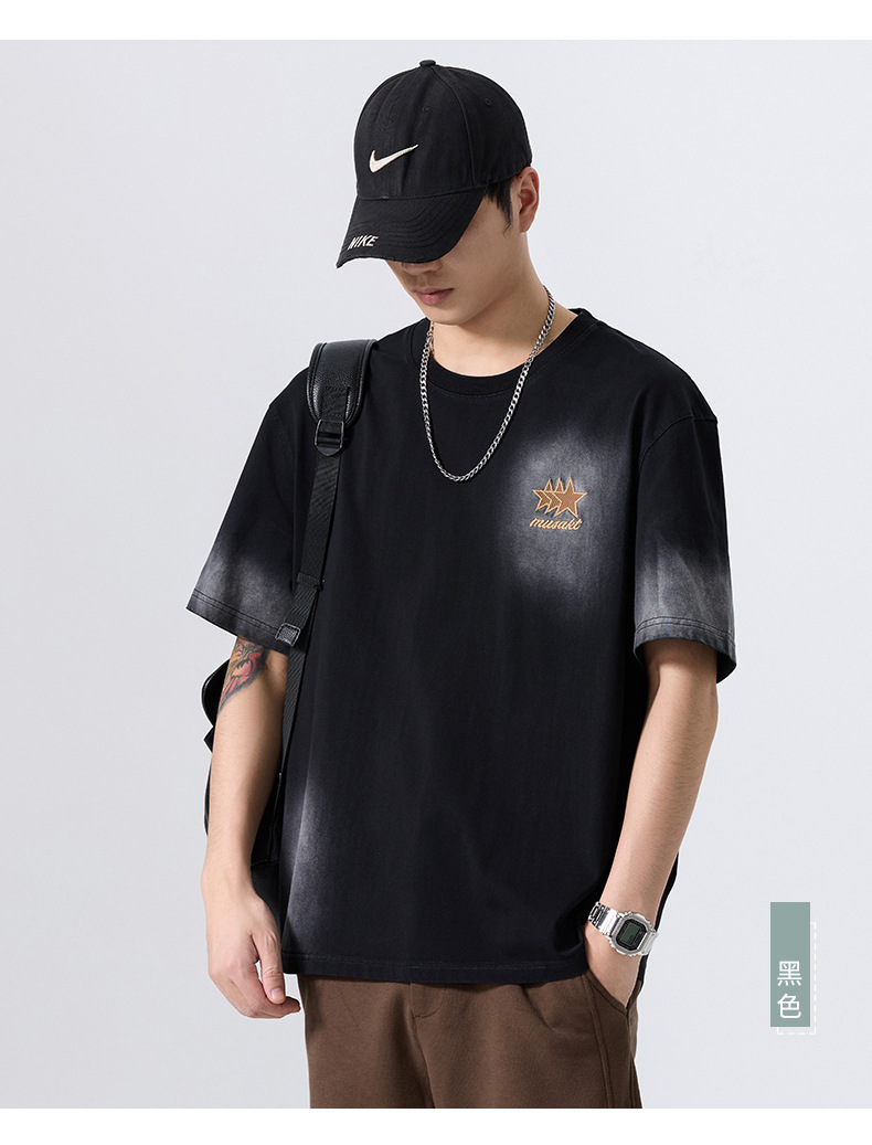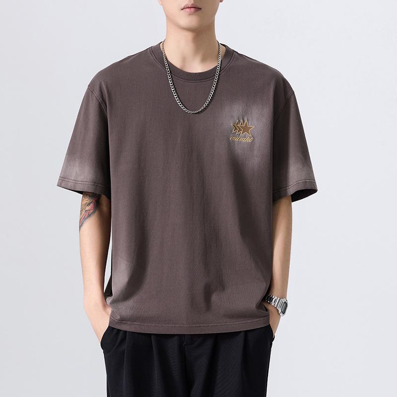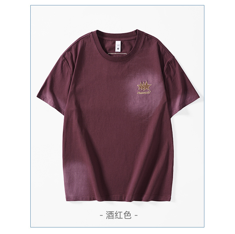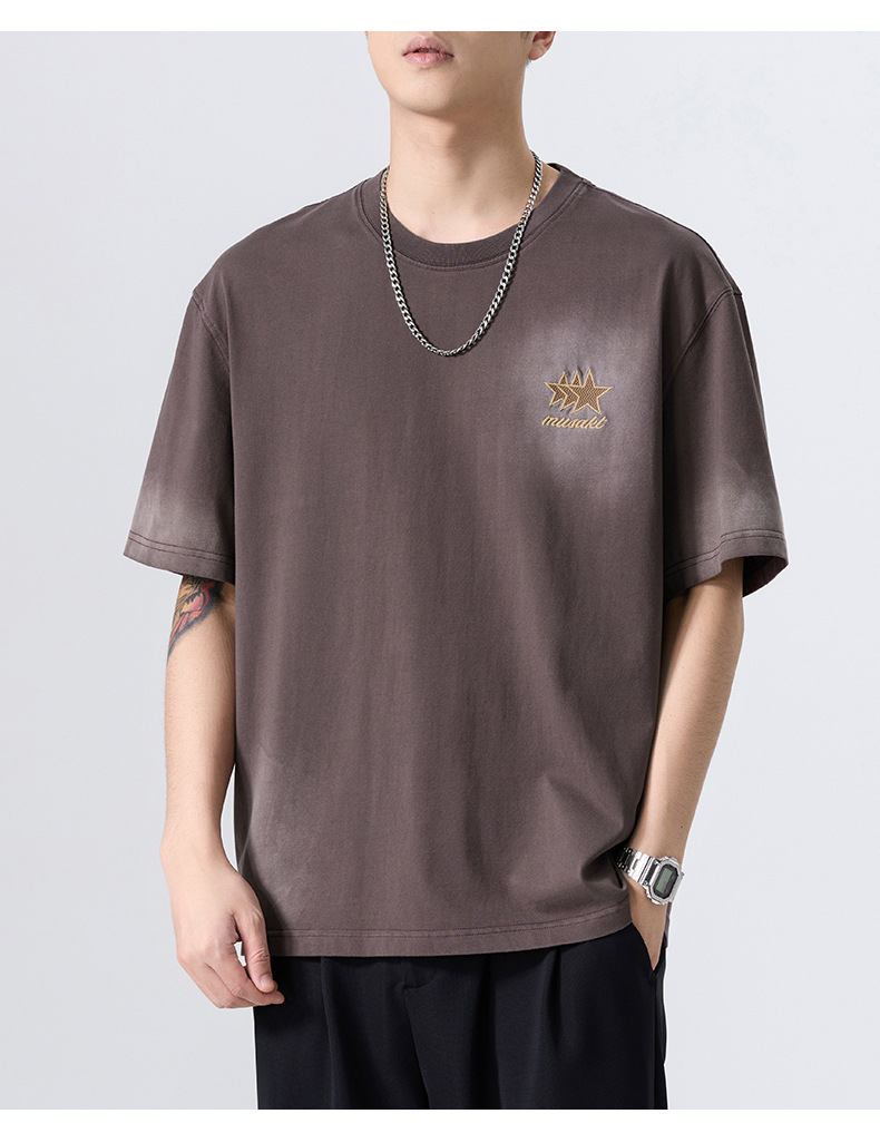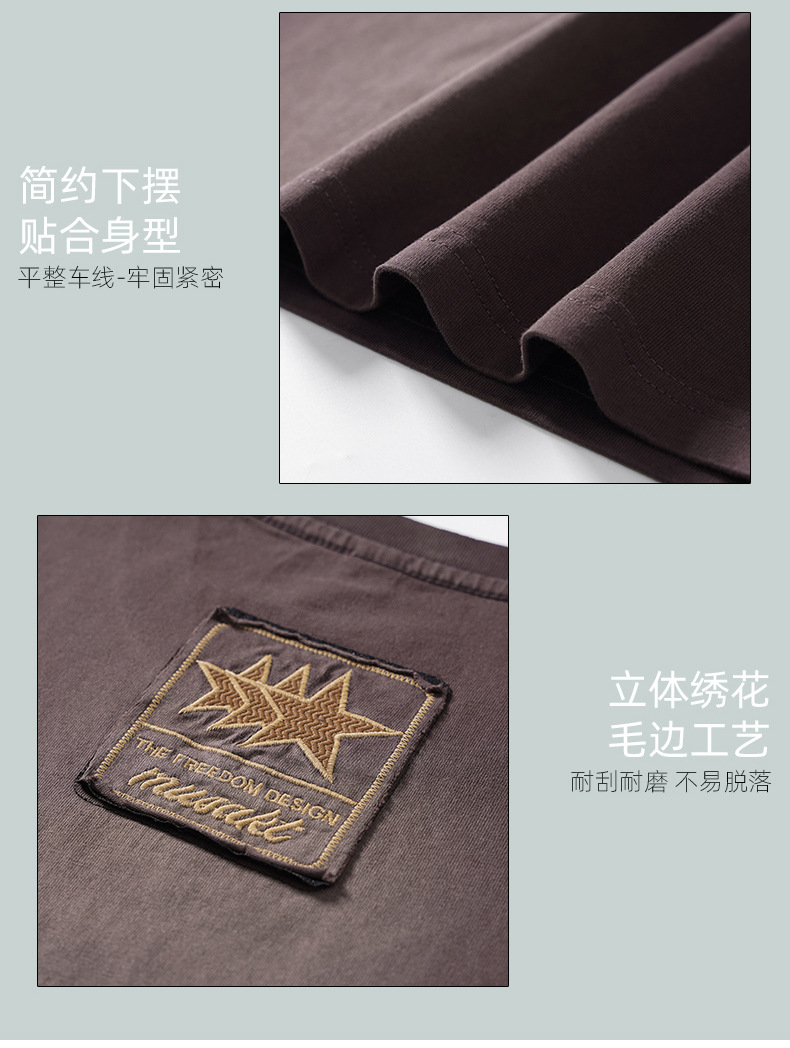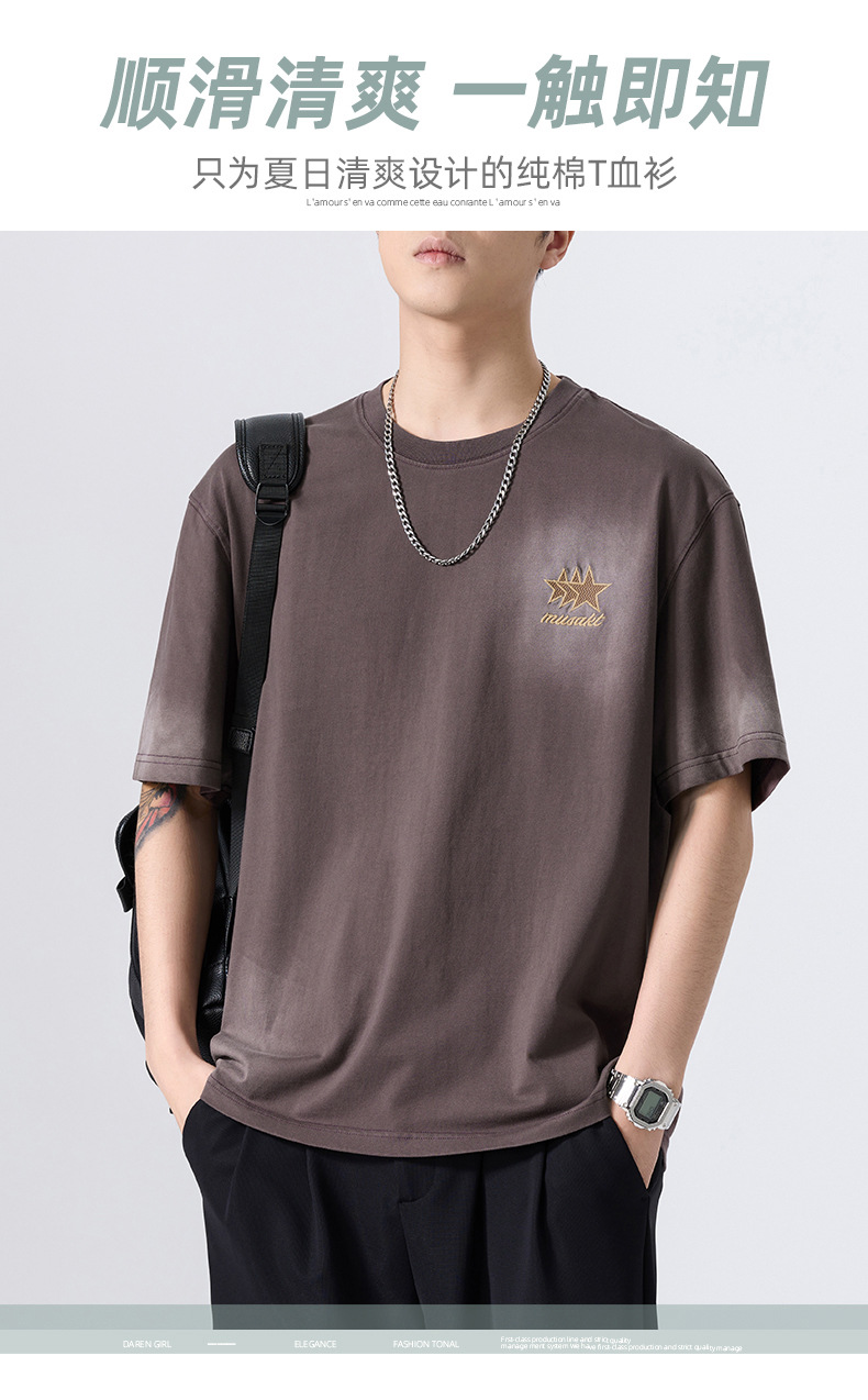260g美式重磅水洗纯棉T恤男短袖夏季新款潮流圆领刺绣宽松上衣男