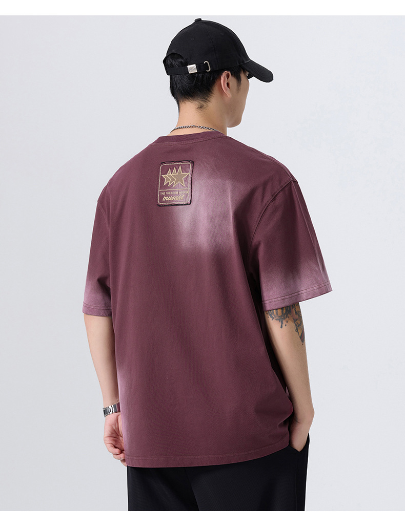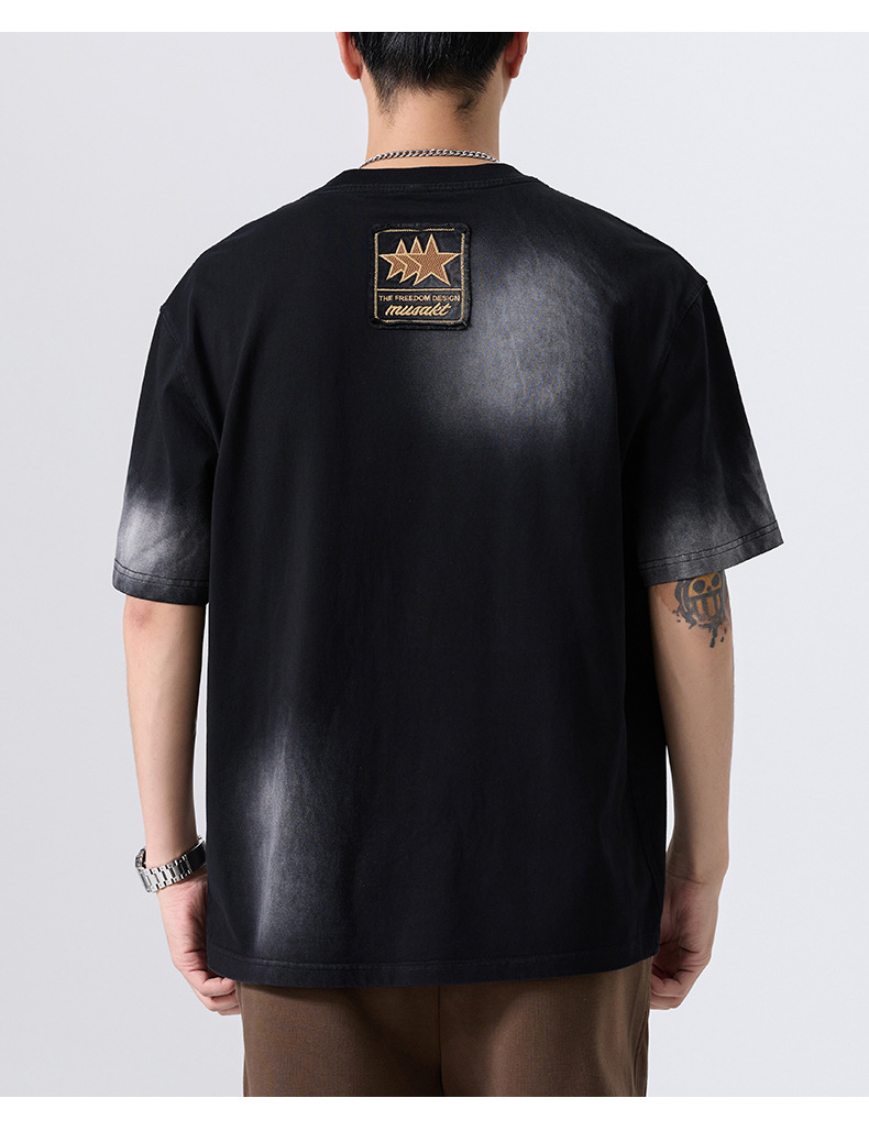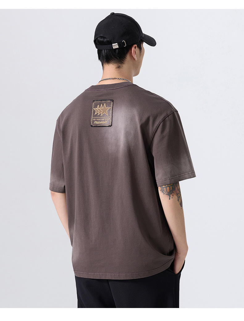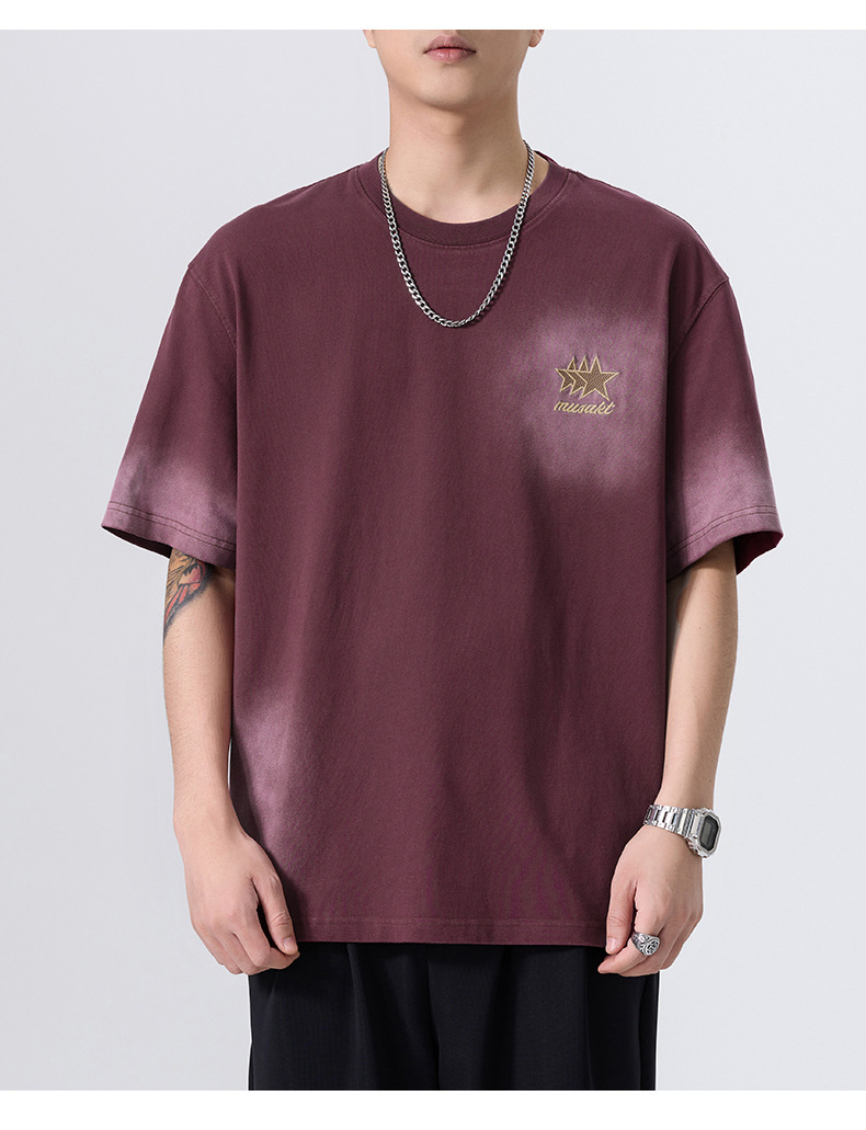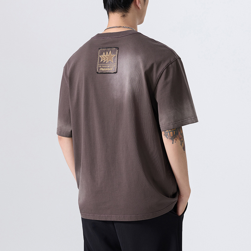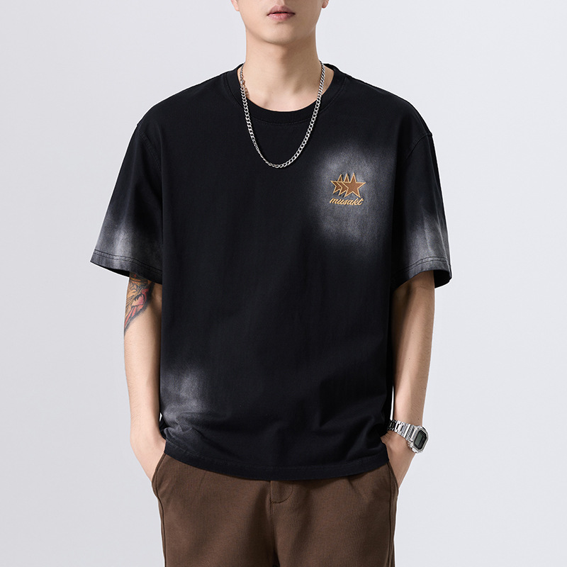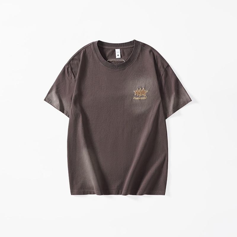 260g美式重磅水洗纯棉T恤男短袖夏季新款潮流圆领刺绣宽松上衣男