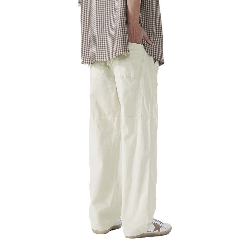 高品质纯色直筒休闲裤子男款春夏季新款弹力宽松时尚拼接垂顺长裤