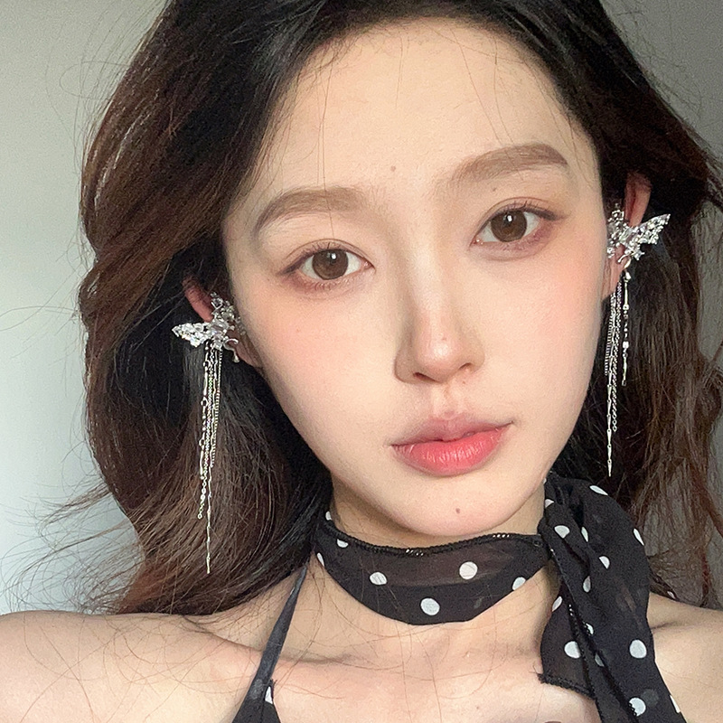 小众高级感锆石蝴蝶流苏耳骨夹气质轻奢无耳洞耳夹新款耳饰