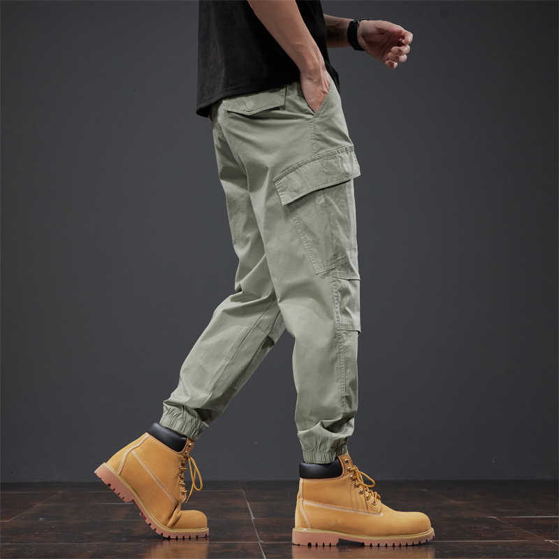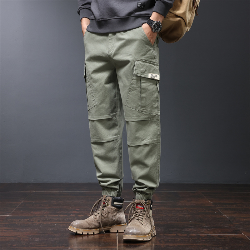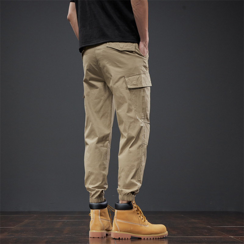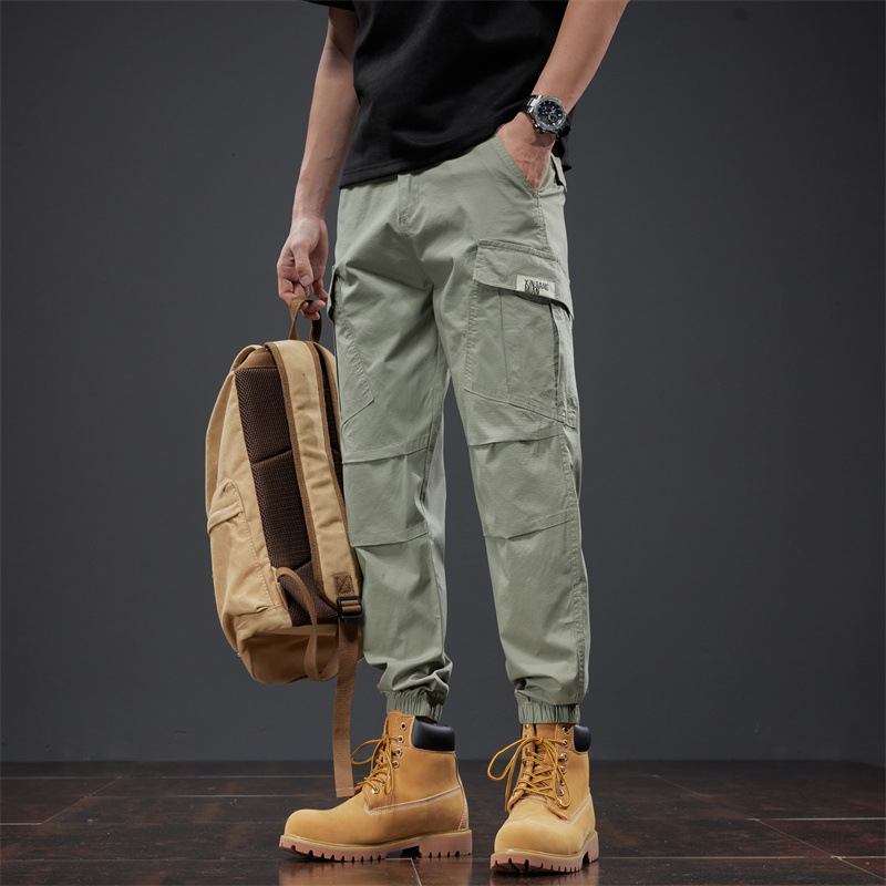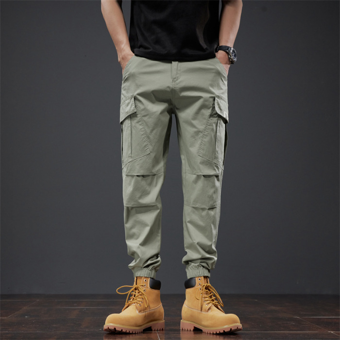 美式复古工装裤男配马丁靴春夏薄款潮牌痞帅宽松束脚九分休闲裤子