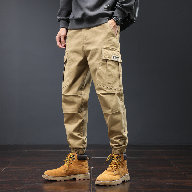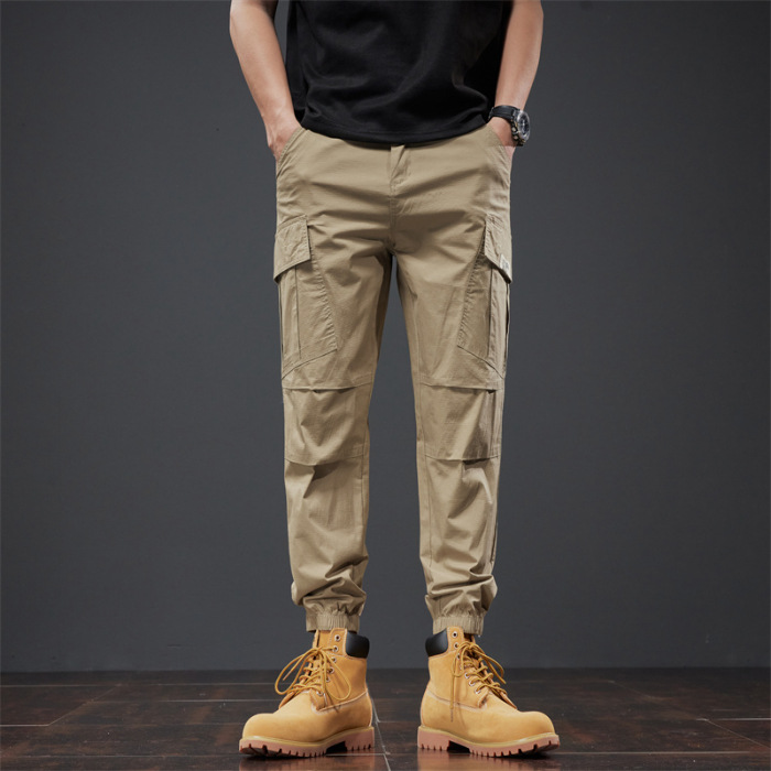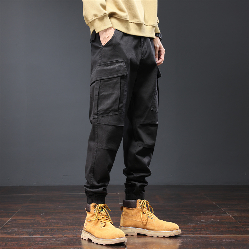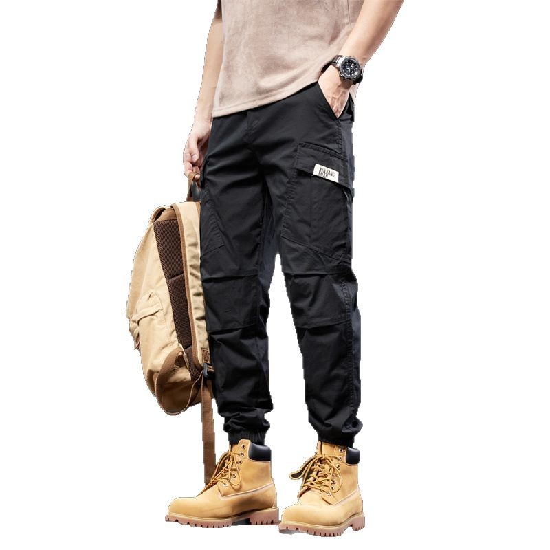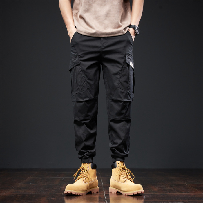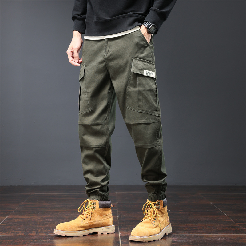 美式复古工装裤男配马丁靴春夏薄款潮牌痞帅宽松束脚九分休闲裤子