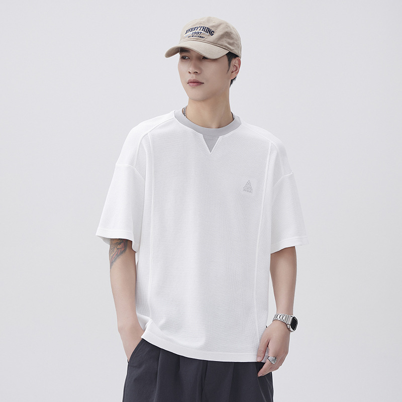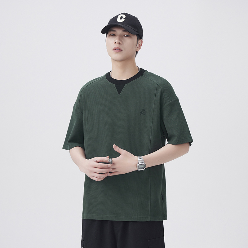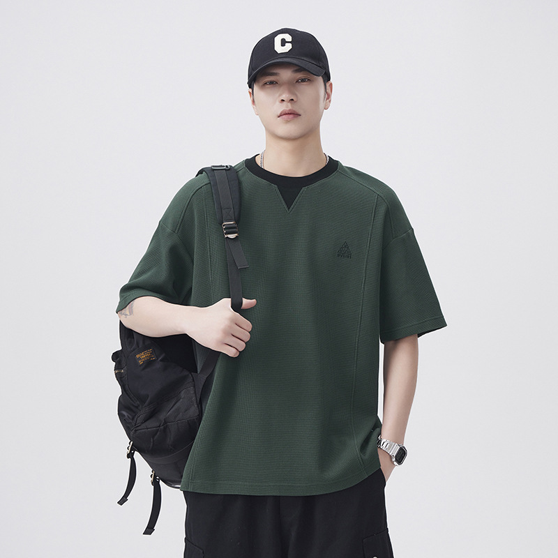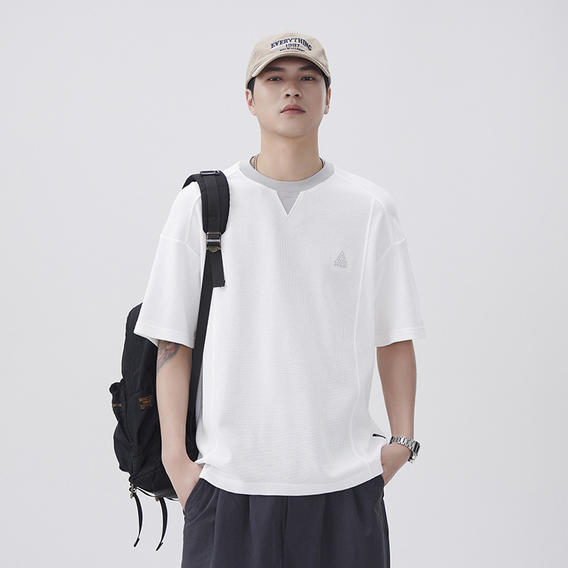 美式t恤男240g重磅假两件拼接短袖上衣男士夏季新款宽松大码男装