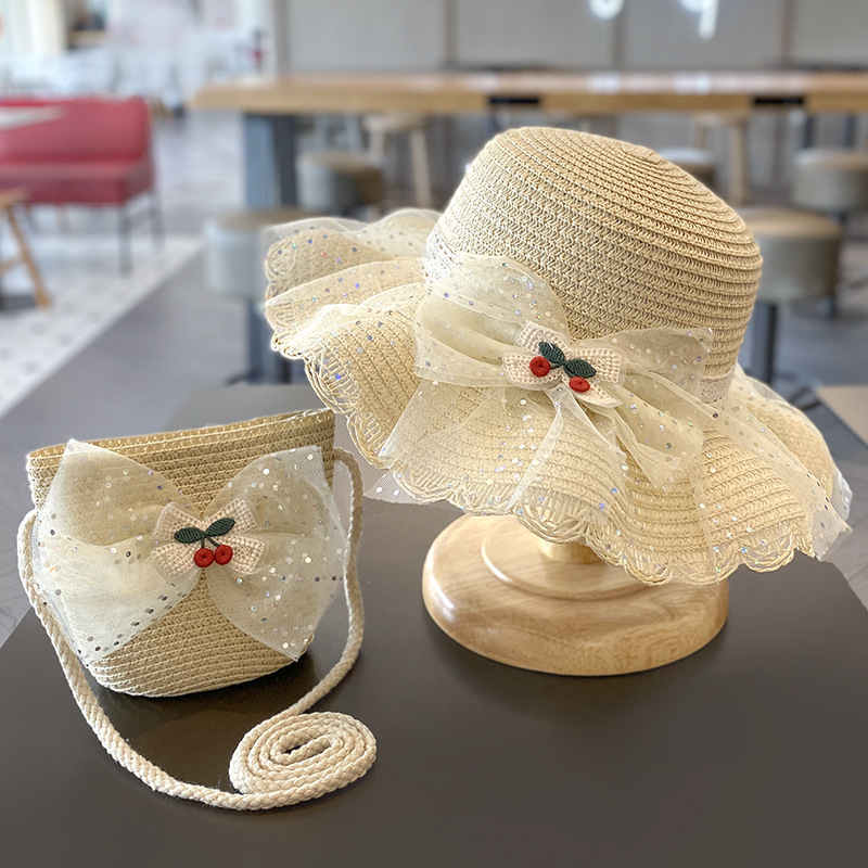 夏季女孩草帽遮阳女童帽子夏天出游沙滩防晒女宝宝太阳渔夫帽包夏