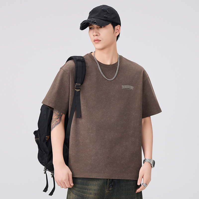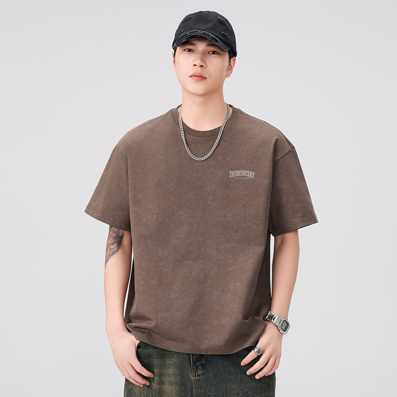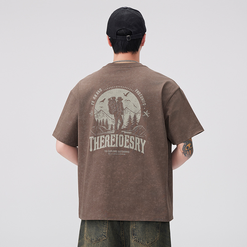300g重磅蜡染水洗纯棉t恤男夏季短袖潮牌复古宽松户外印花上衣男