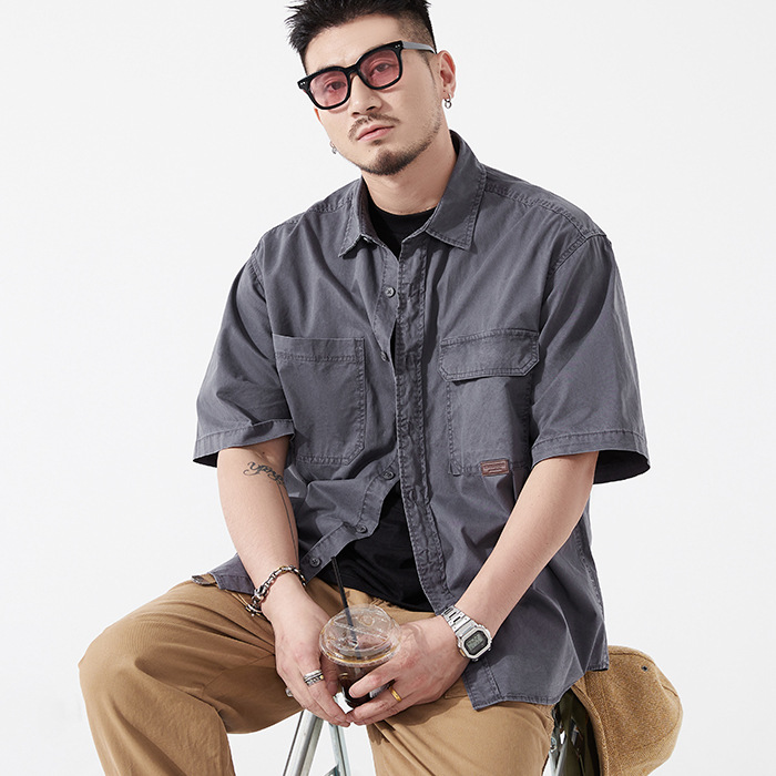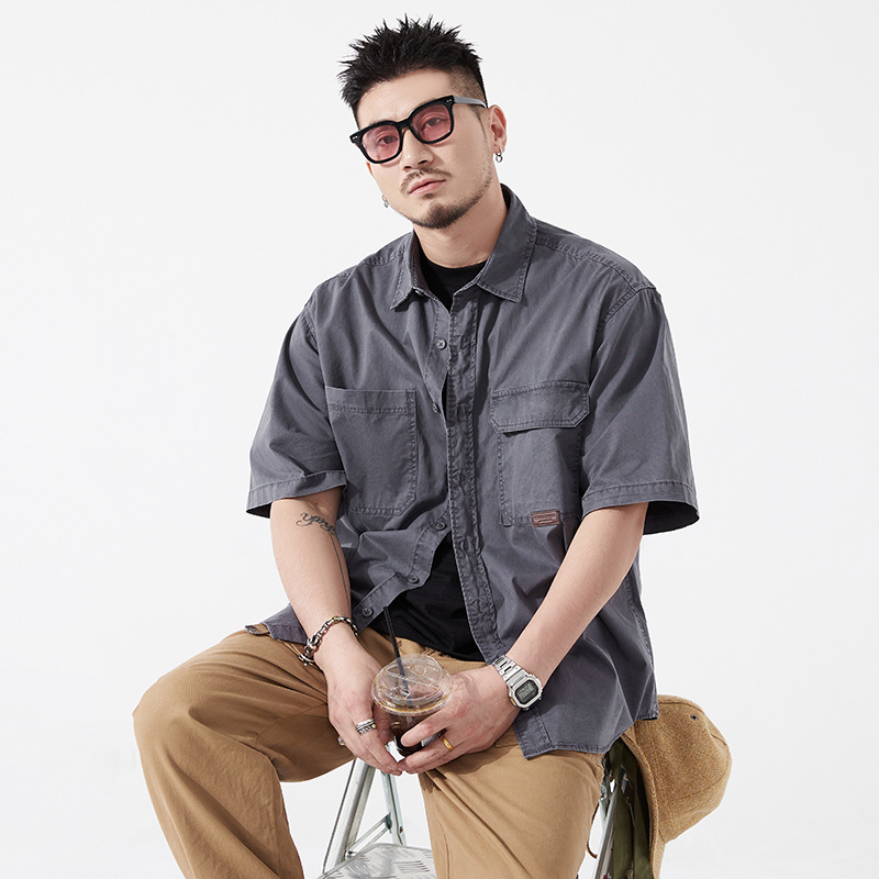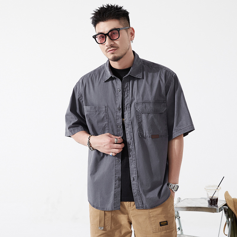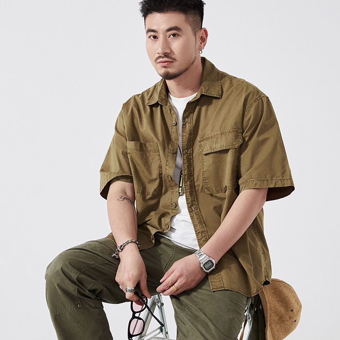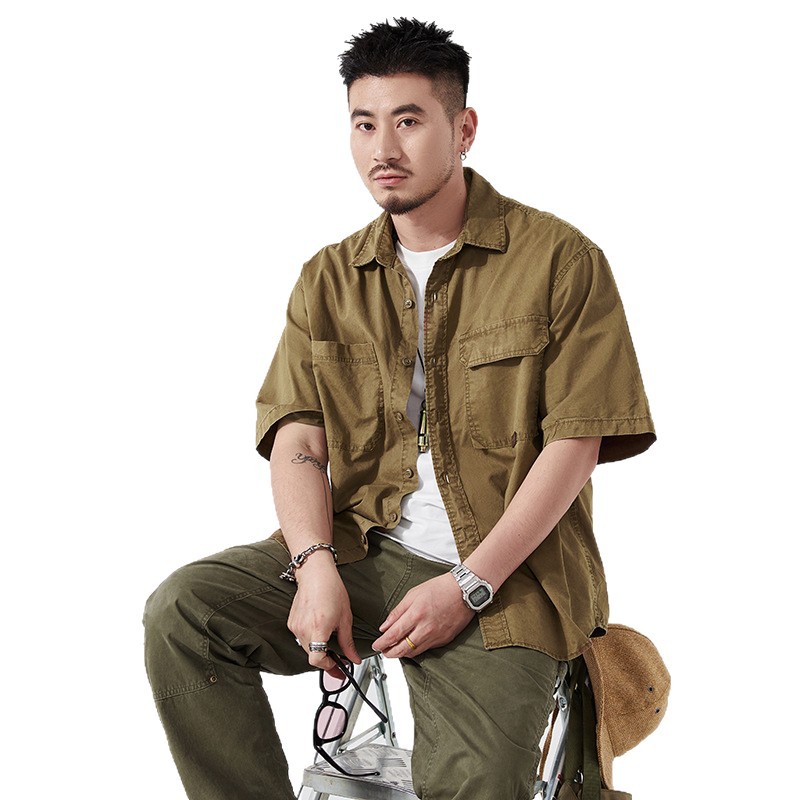 2025新款日系复古工装短袖衬衫男宽松休闲美式夏季潮流衬衣