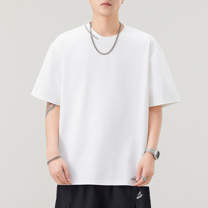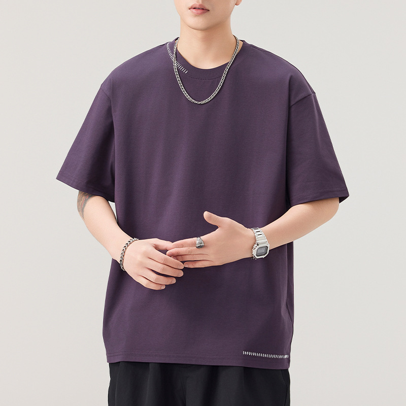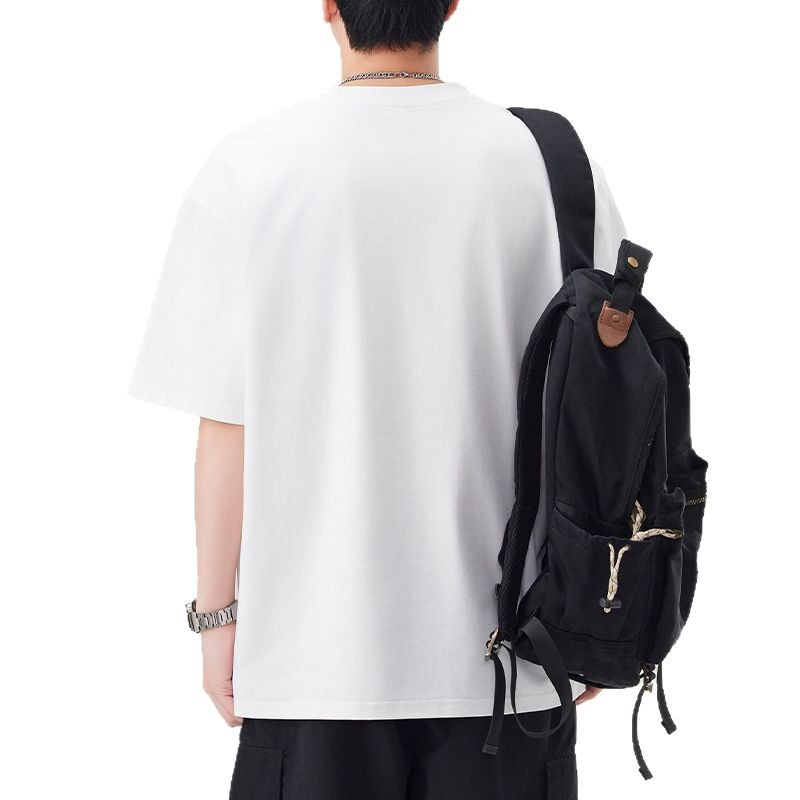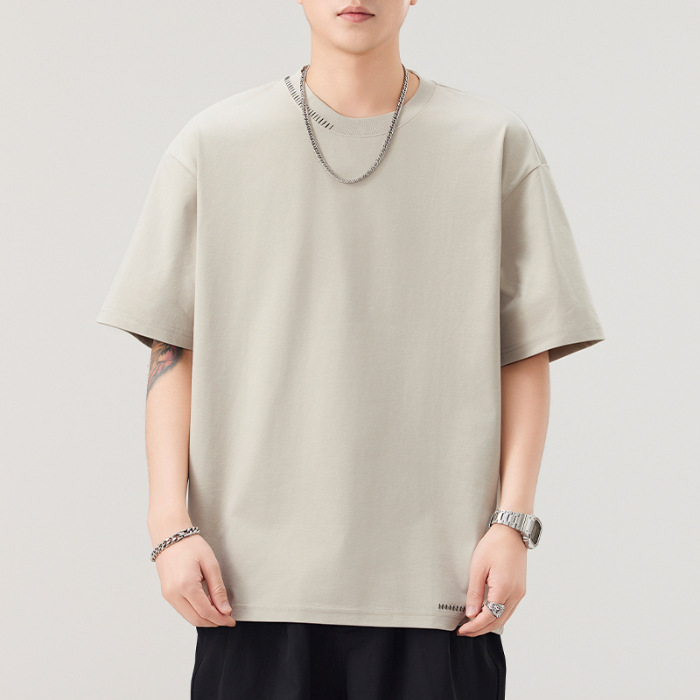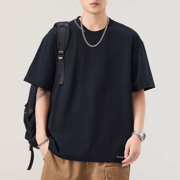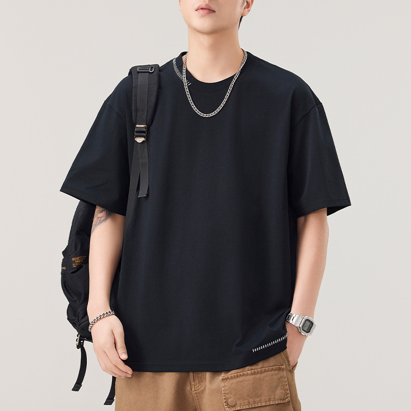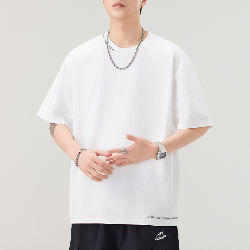 夏季新款短袖T恤男设计感圆领五分袖体恤衫百搭休闲日系复古上衣
