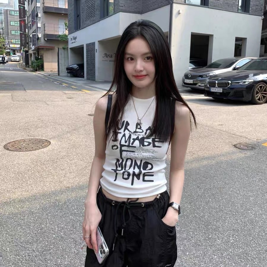 欧美风纯欲辣妹字母印花潮流小众设计感休闲内搭无袖T恤女