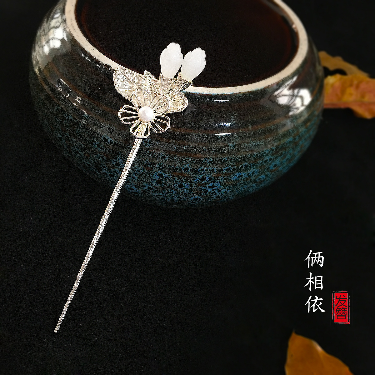 民族风玉兰花花开雅致纯银蝴蝶造型发簪流苏汉服头饰