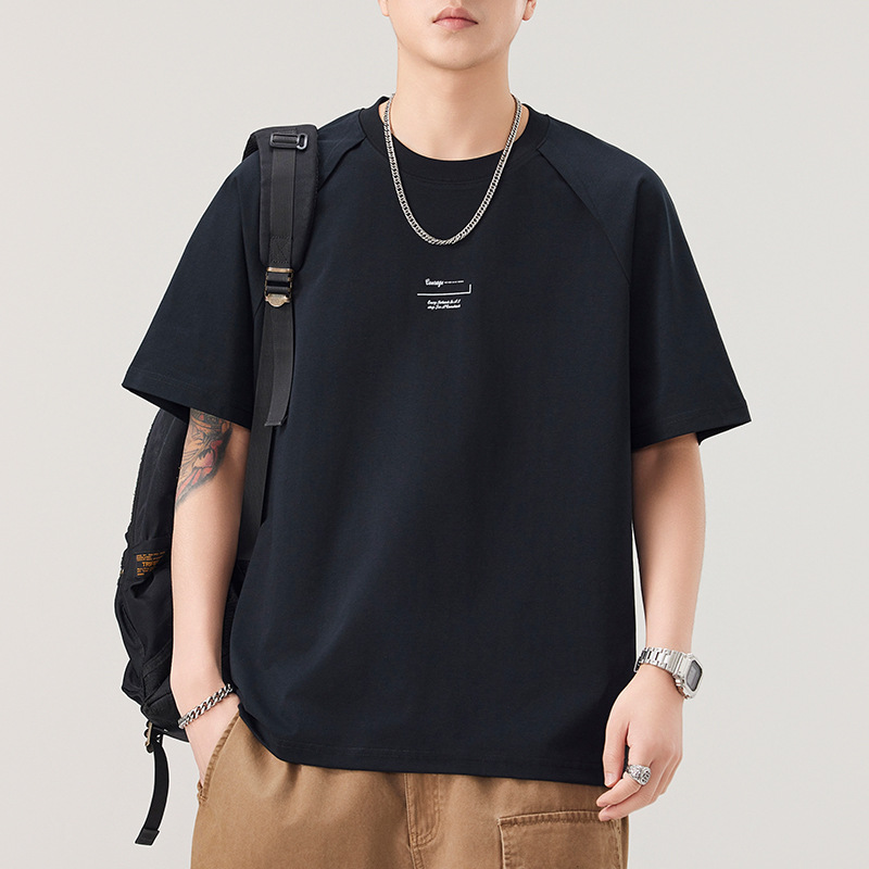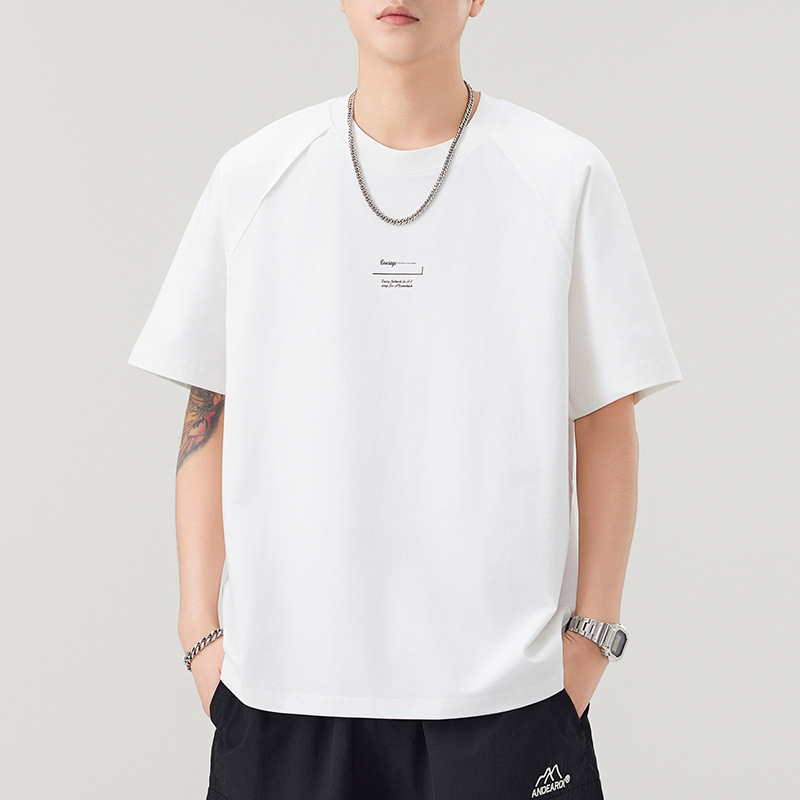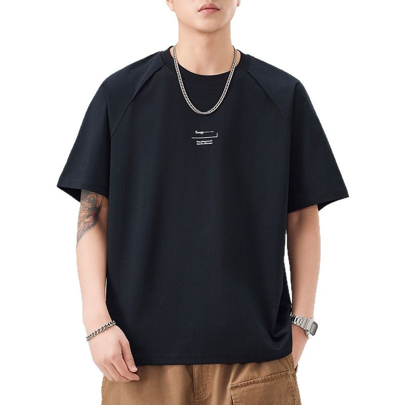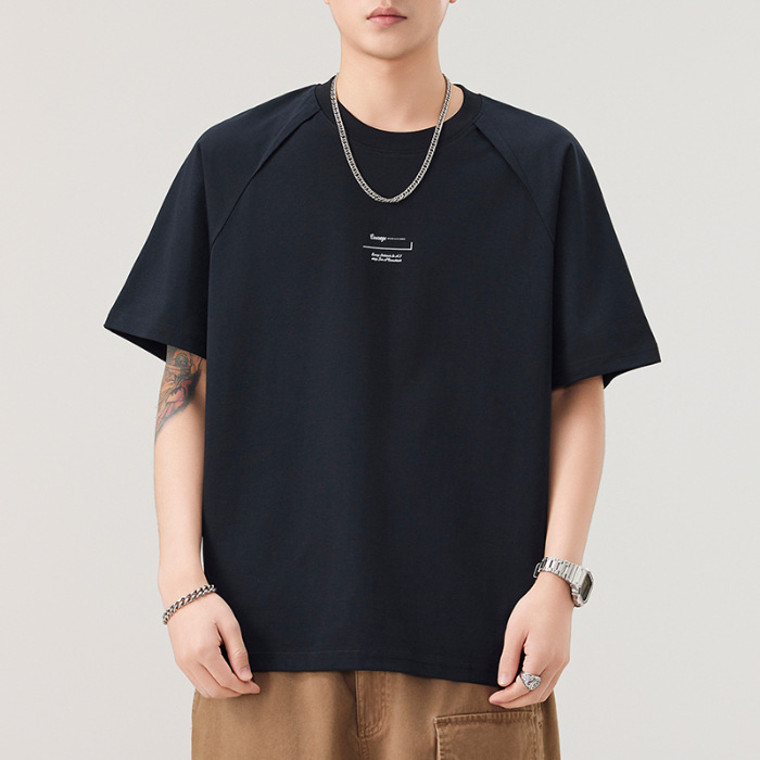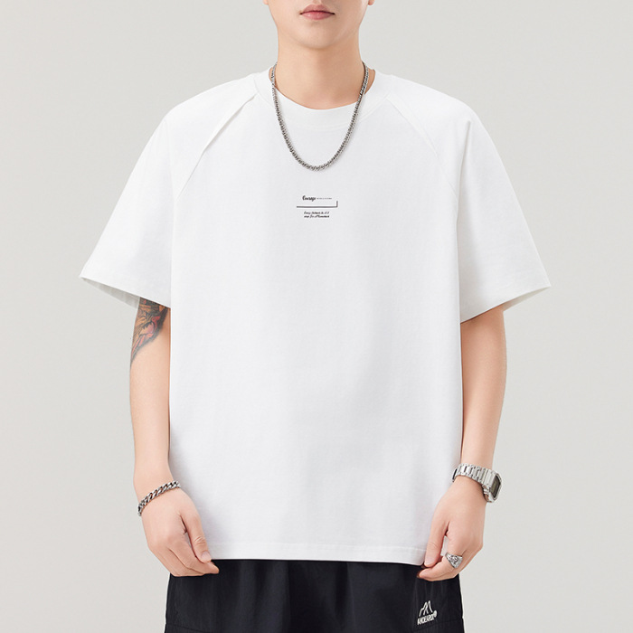 2025夏季新款美式复古拼接240G重磅短袖T恤休闲宽松简约半袖