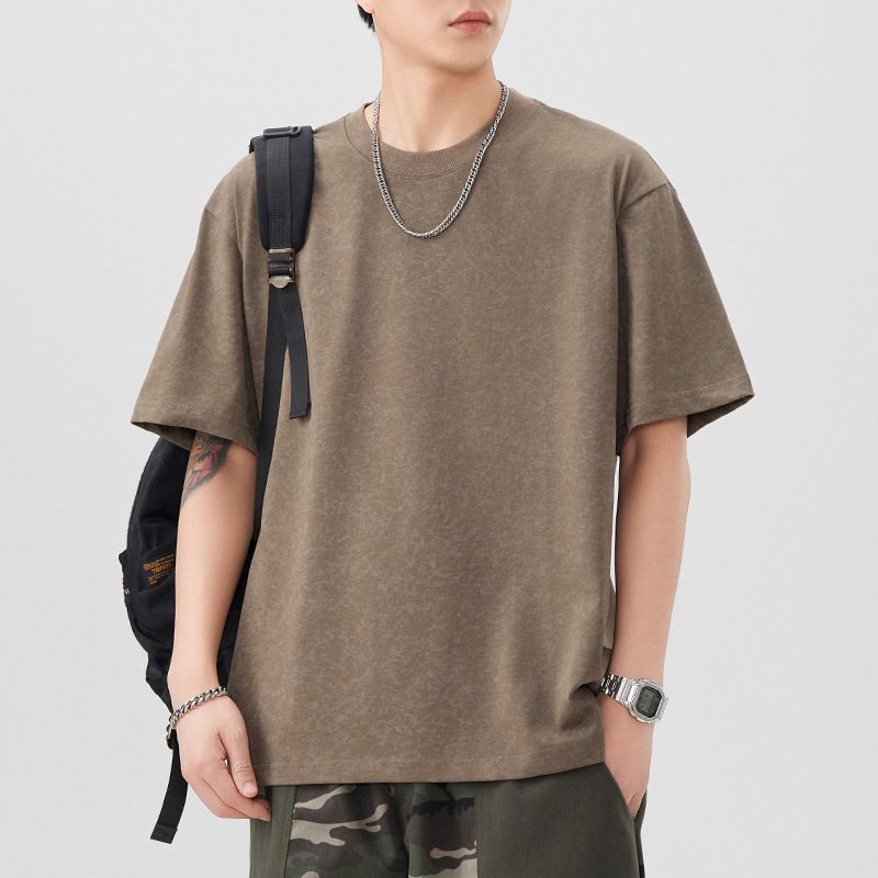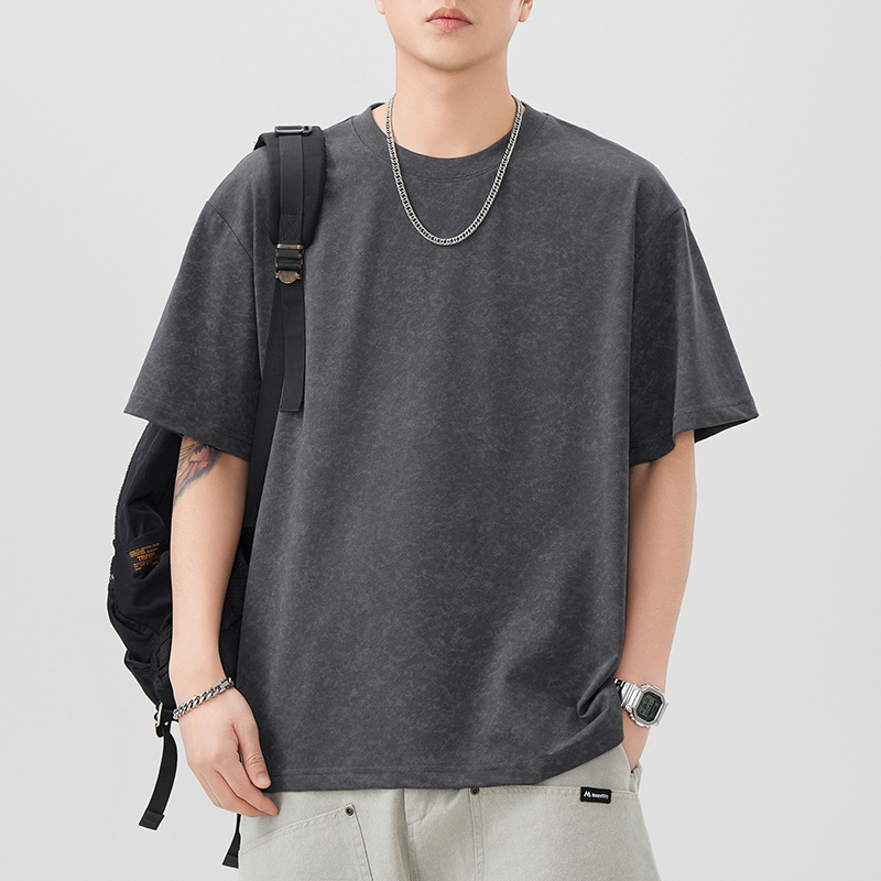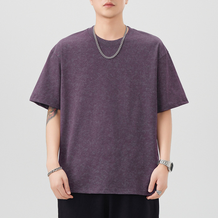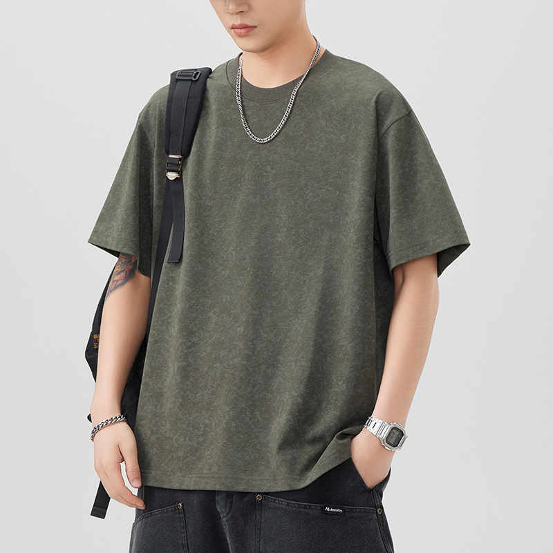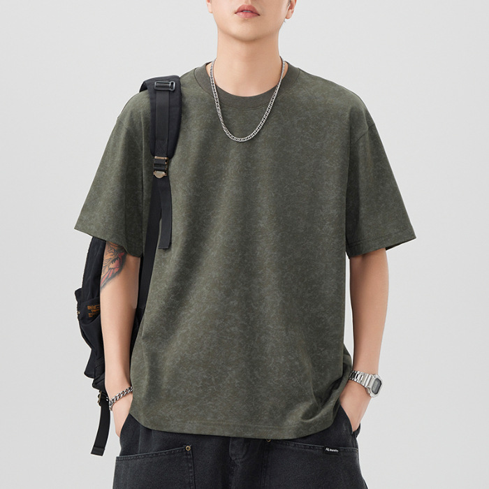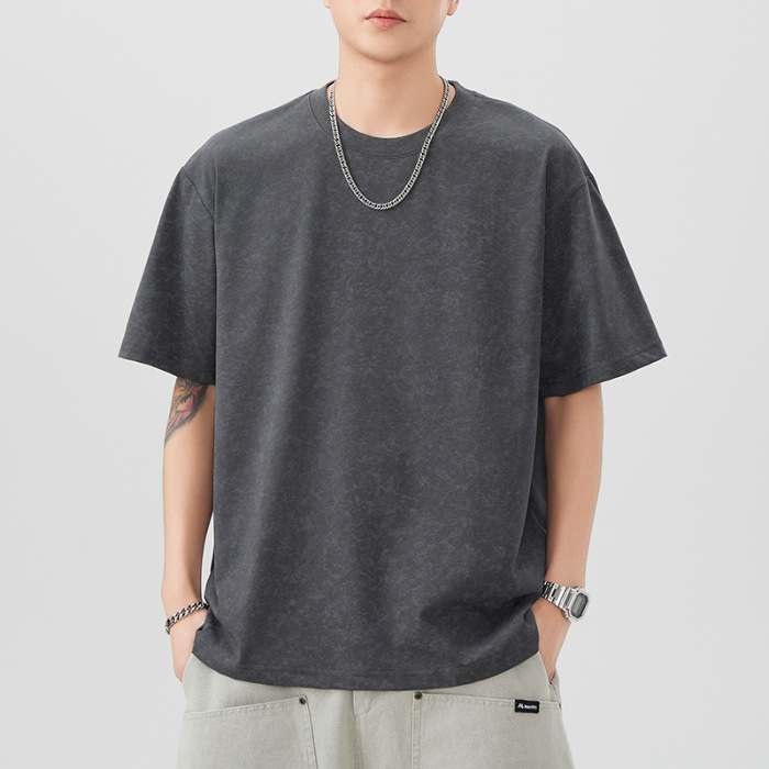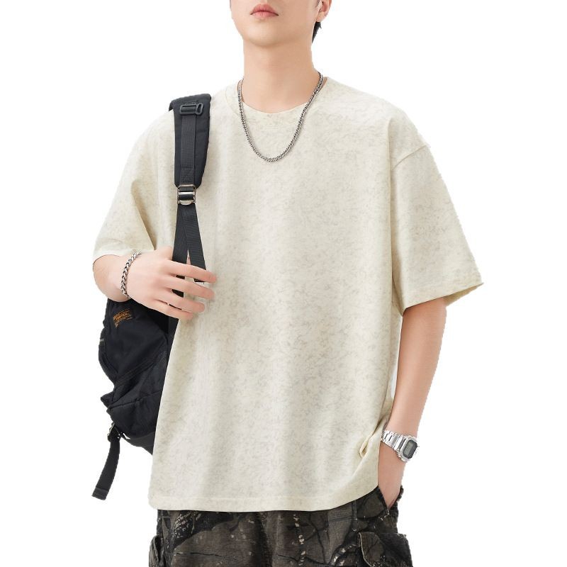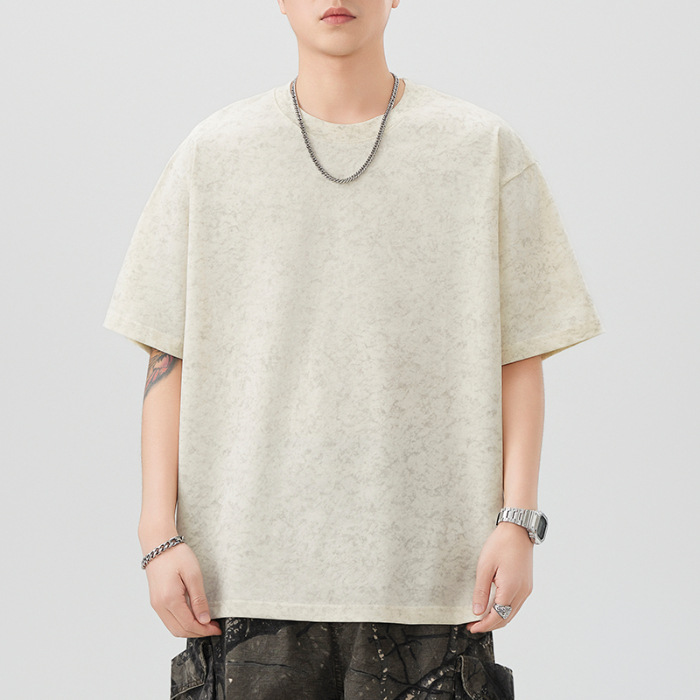 2025夏季新款短袖T恤男美式复古云染宽松五分体恤衫半袖上衣