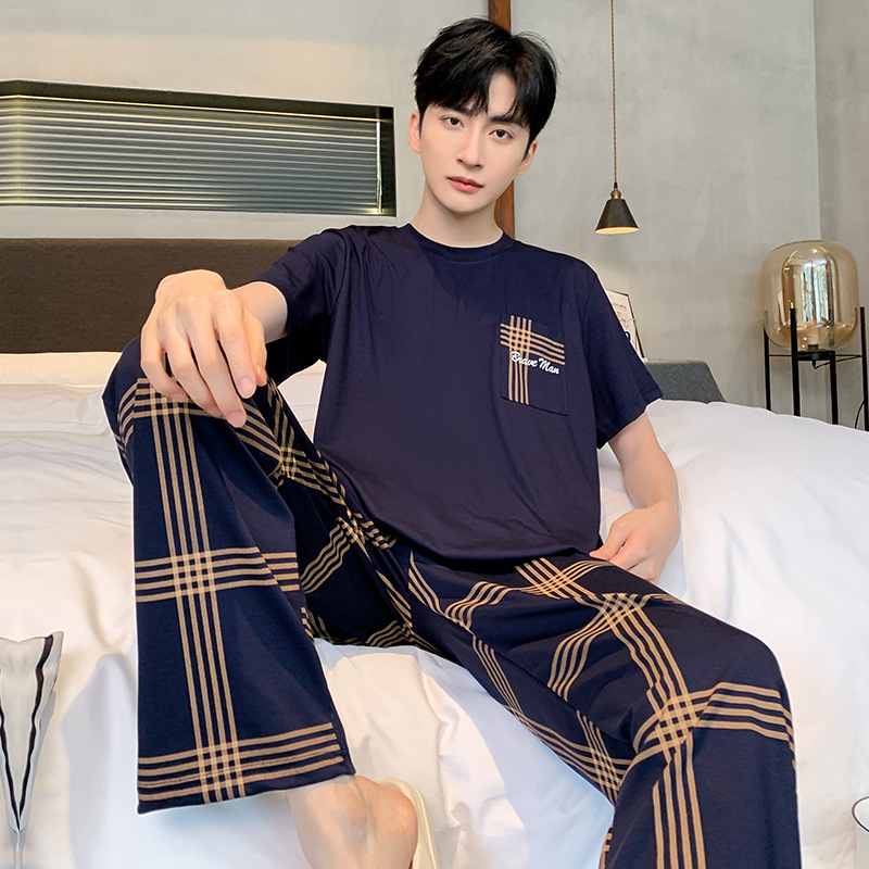 春夏季莫代尔男士睡衣短袖长裤薄款套头凉感厂家批发家居服套装夏